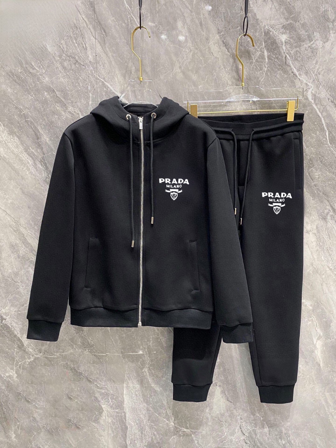 Prada 2025 new hoodie set. Premium Roman cotton, comfortable fit. Elegant design, metal hardware. Sizes M-5XL (up to 220斤).