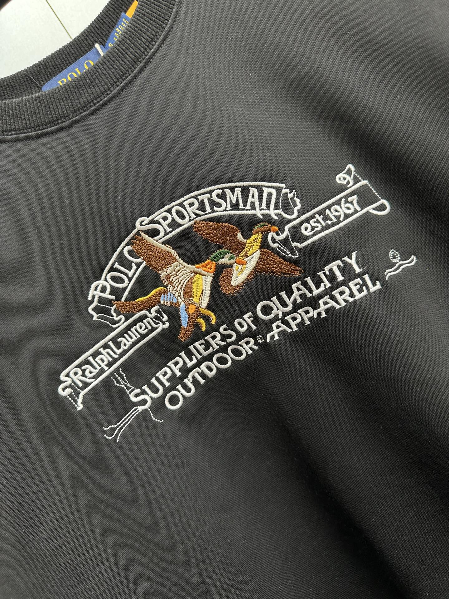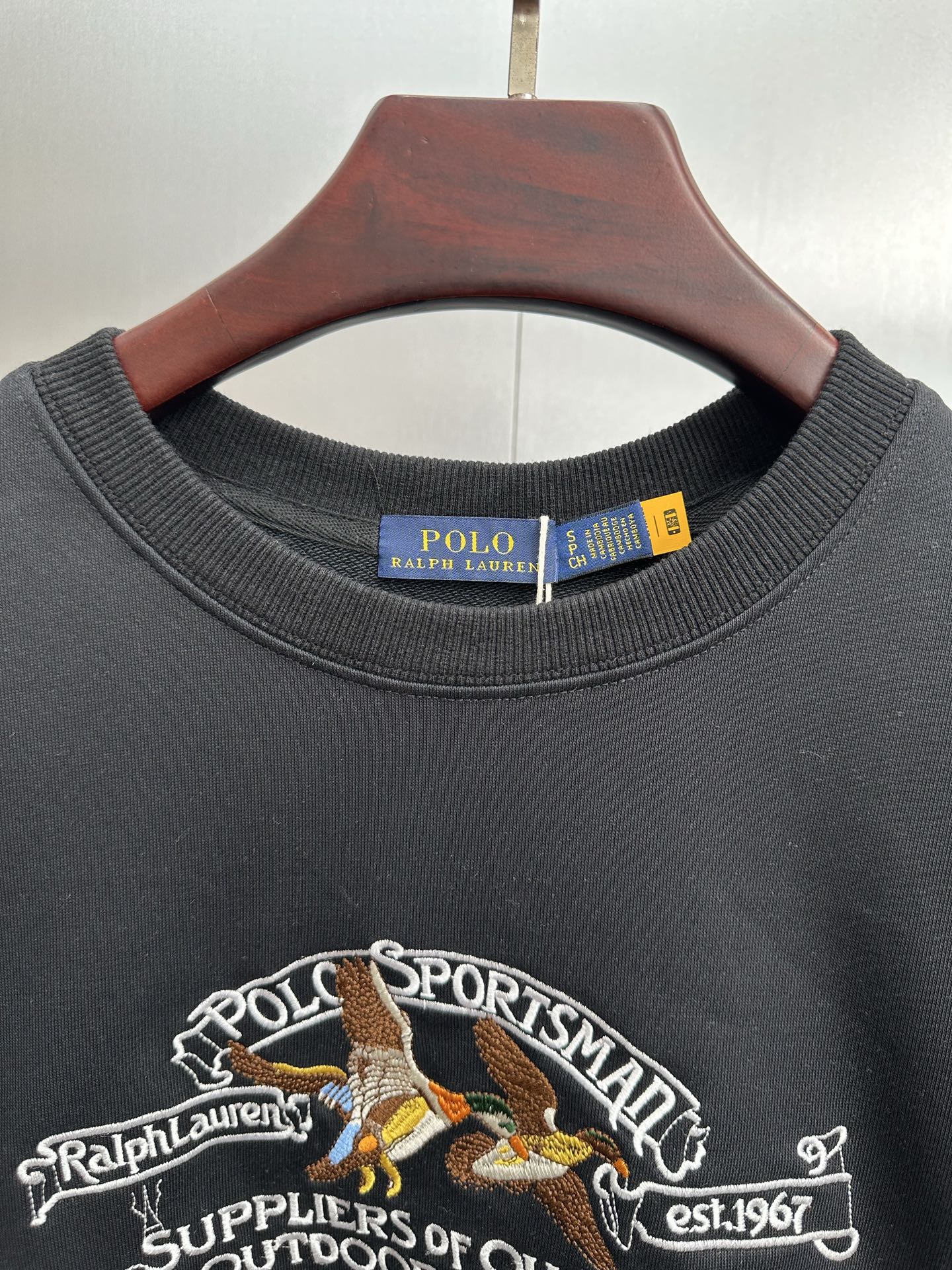 Ralph Lauren 2025秋冬新款毛圈卫衣,多色可选。60%棉40%涤,柔软透气耐用。胸前飞鸽刺绣Logo,立体生动。不挑年龄性别。颜色:黑色。尺码:S-XL。