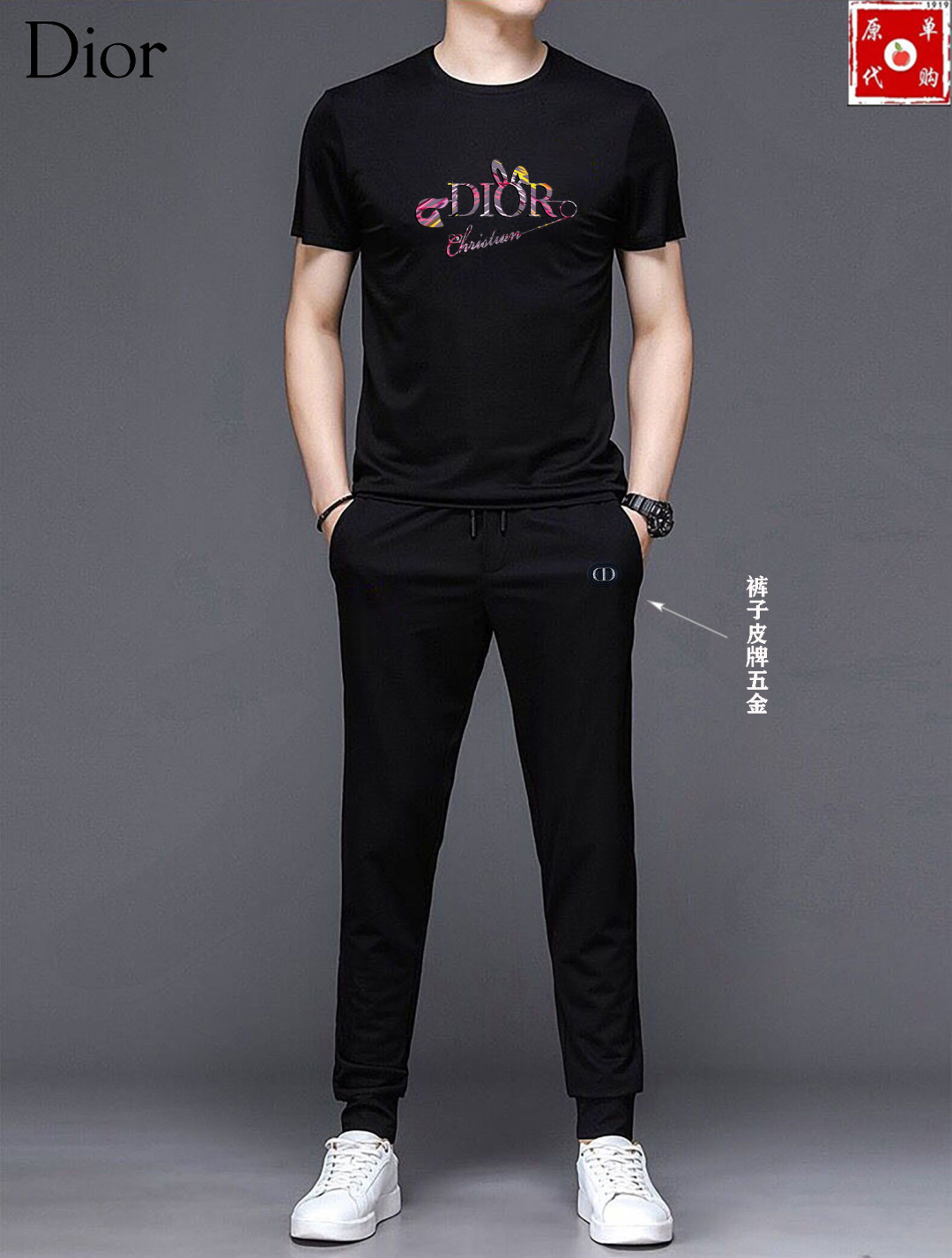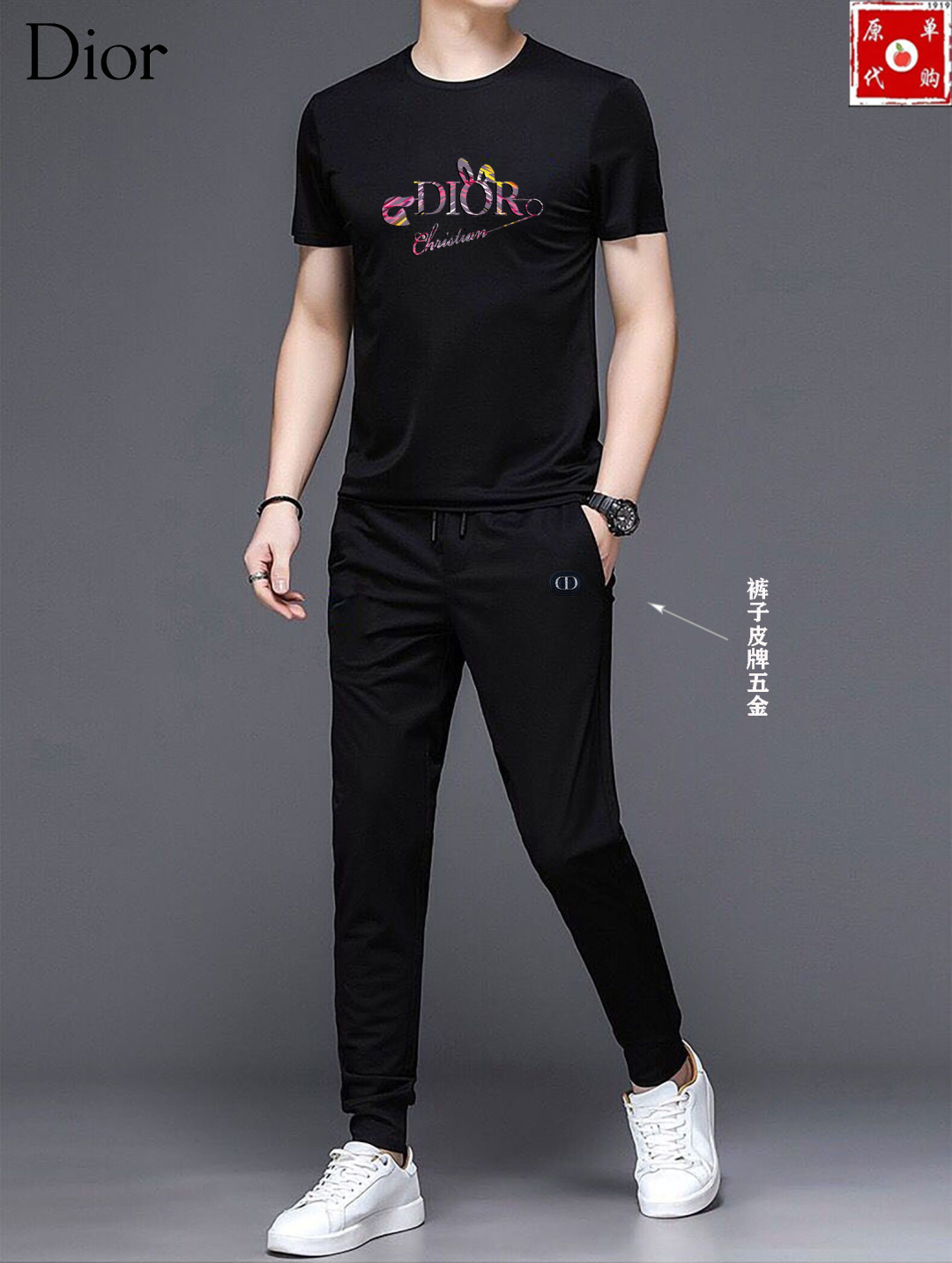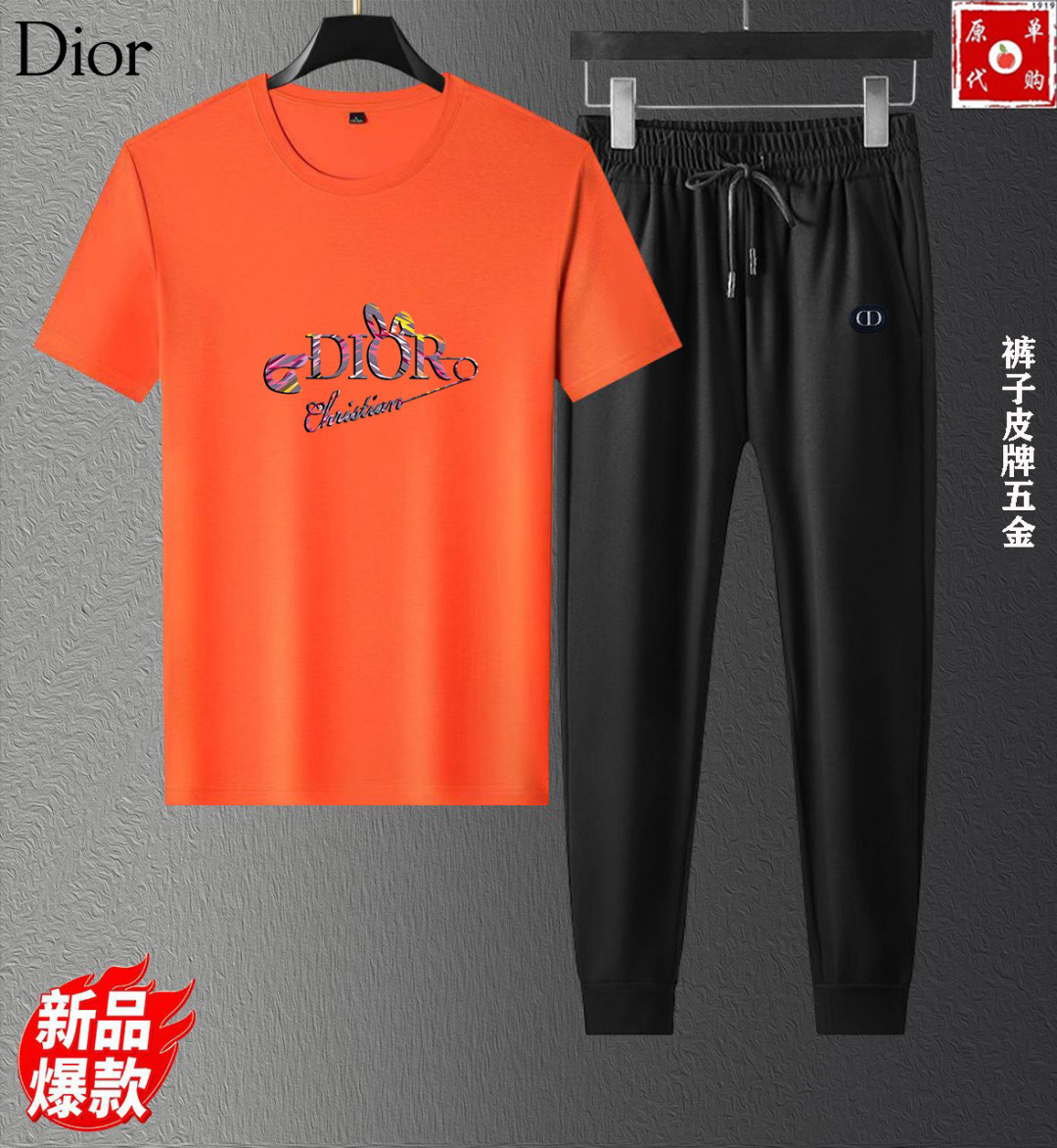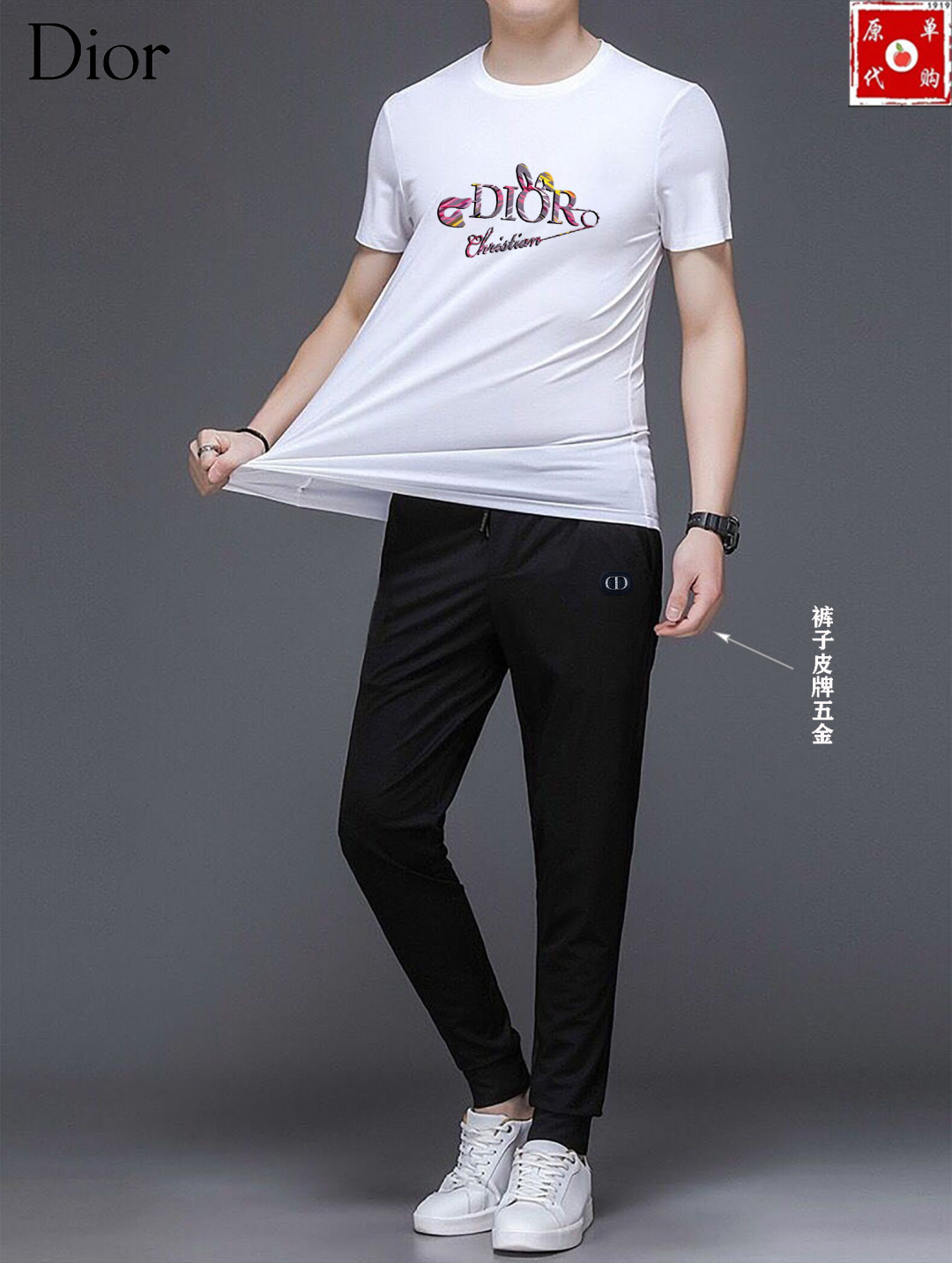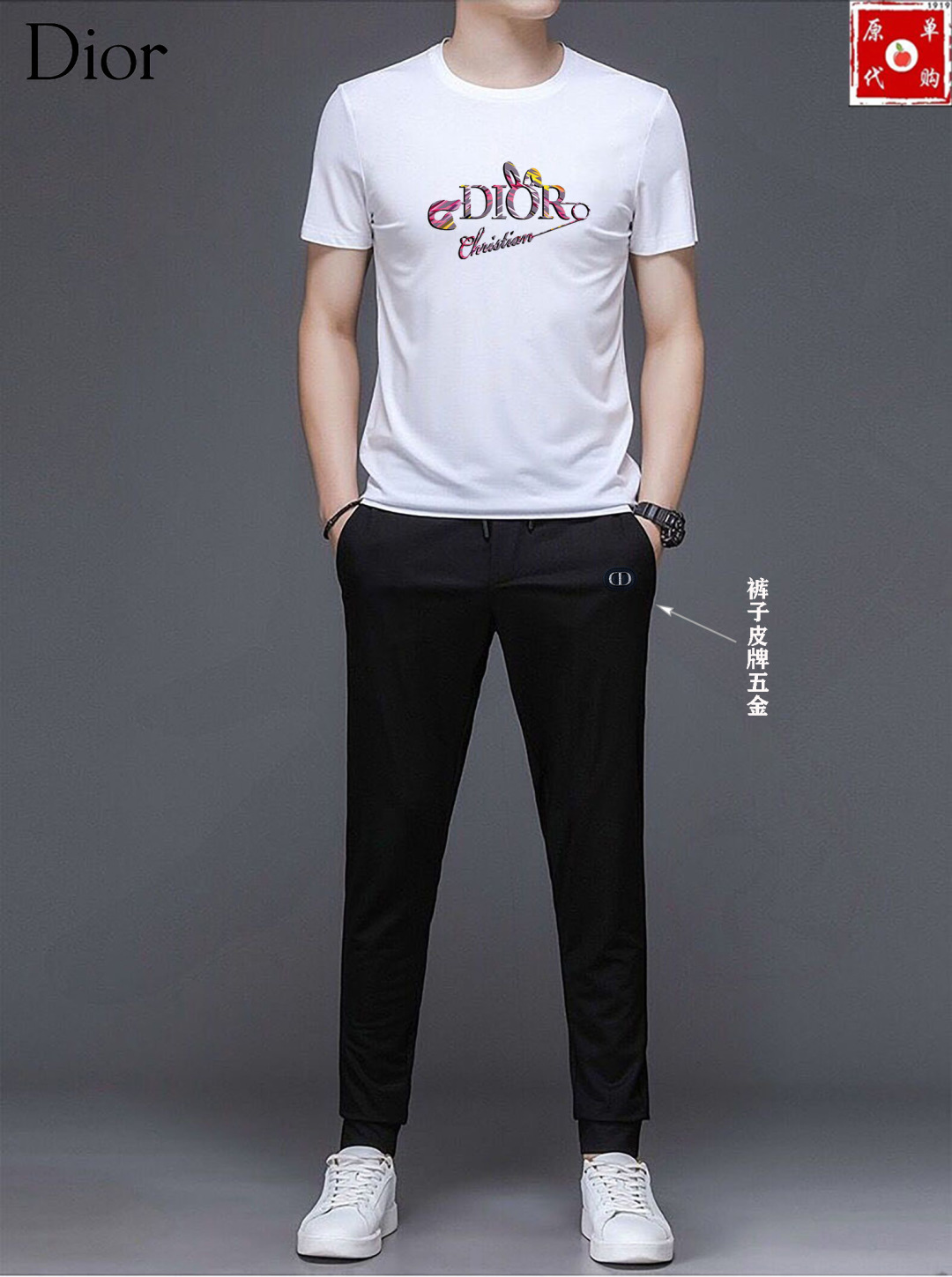 Dior summer set new release. High-end custom fabric, Milan fashion week 2025 SS. Real photos, premium quality. Sizes M-5XL (up to 200斤). Comfortable, breathable, luxurious Italian texture.