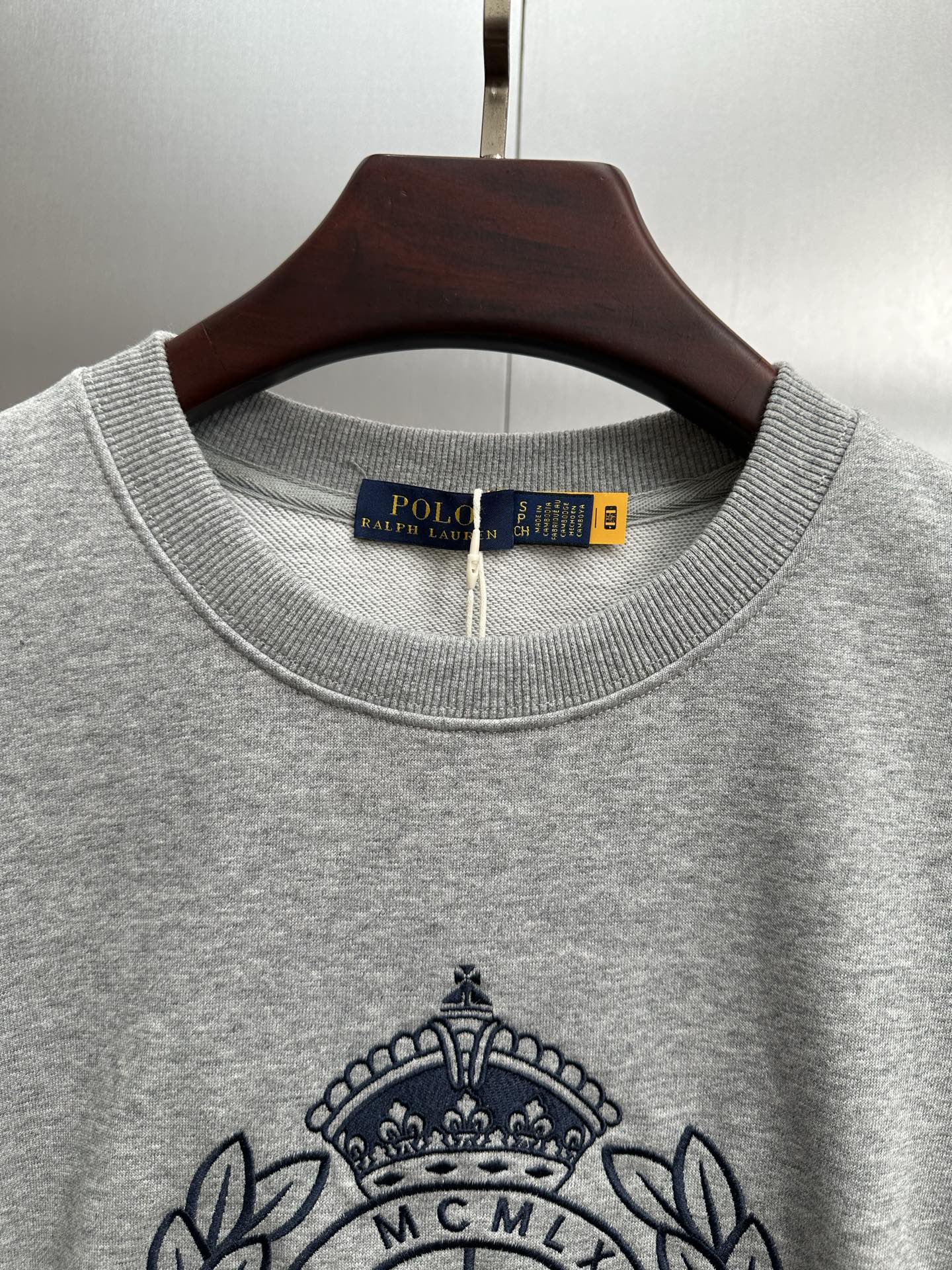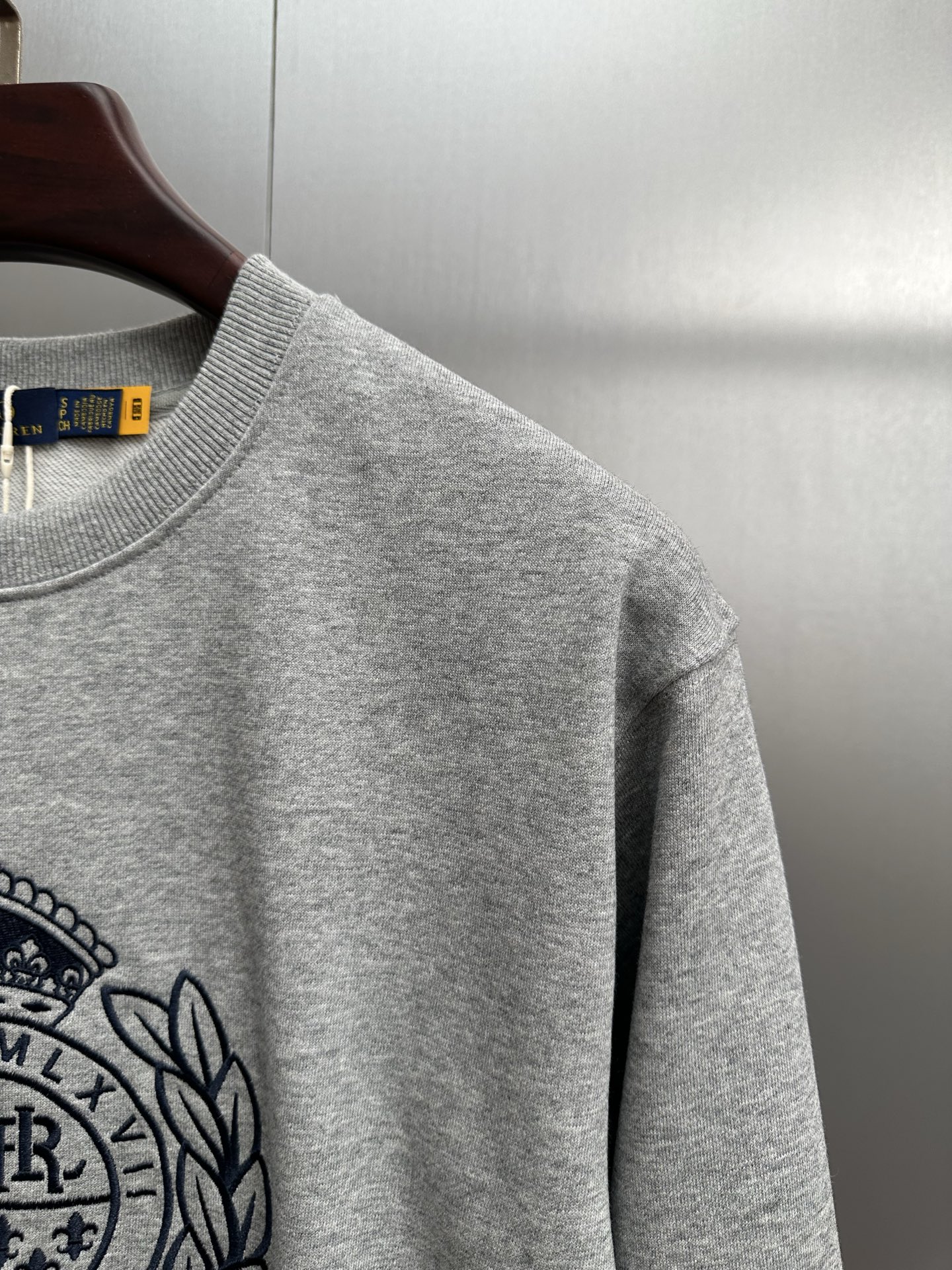 Home•Apparel•Ralph Lauren 2025 Fall/Winter Embroidered Logo Sweatshirt. 60% cotton, 40% polyester. Soft, breathable, wrinkle-resistant. Available in heather gray, sizes S-XL.