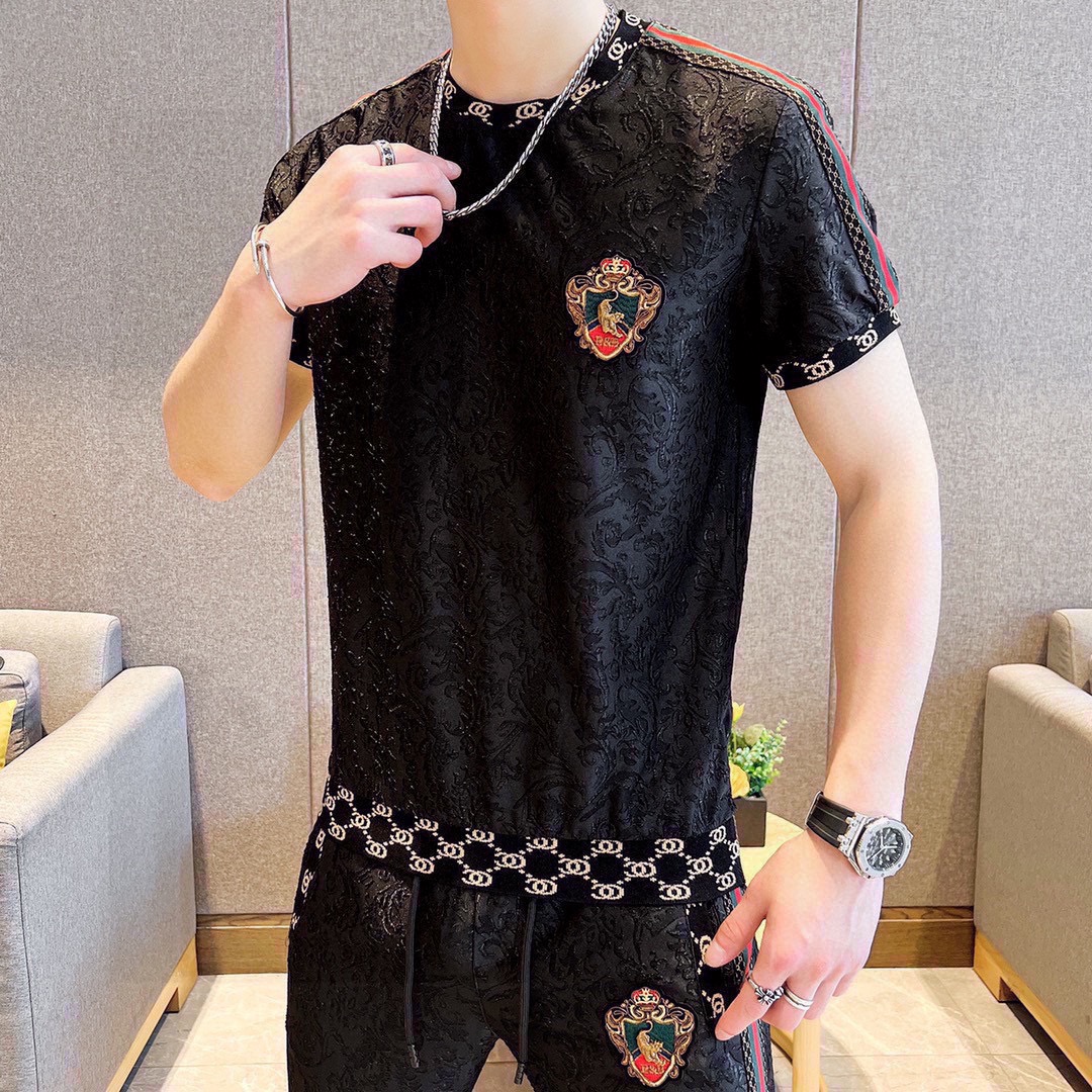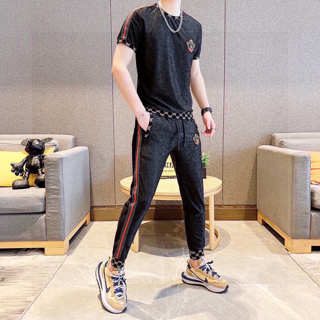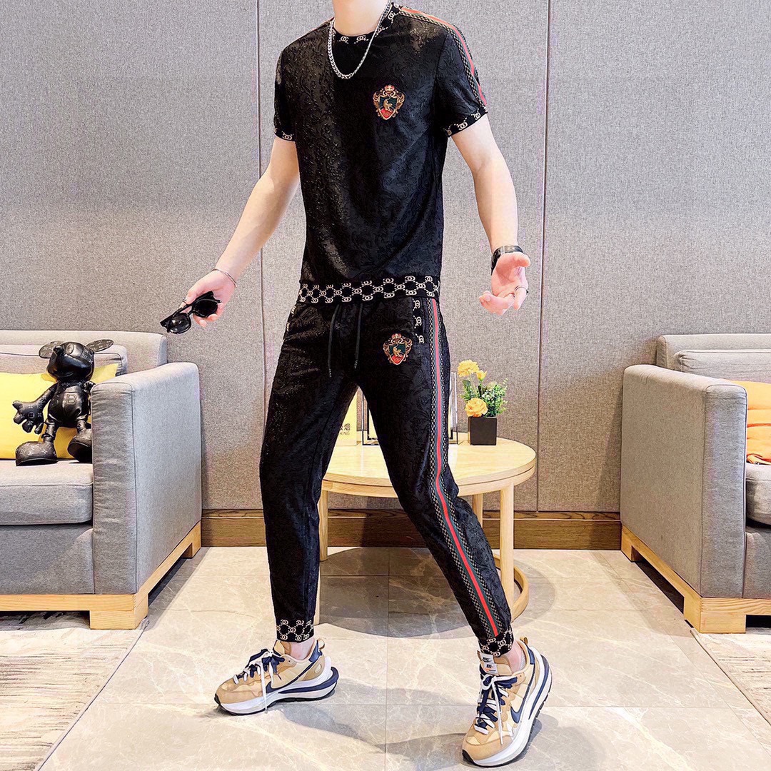 GUCCI men's summer short sleeve set. High quality imported fabric, fashionable season style. Sizes M-5XL.