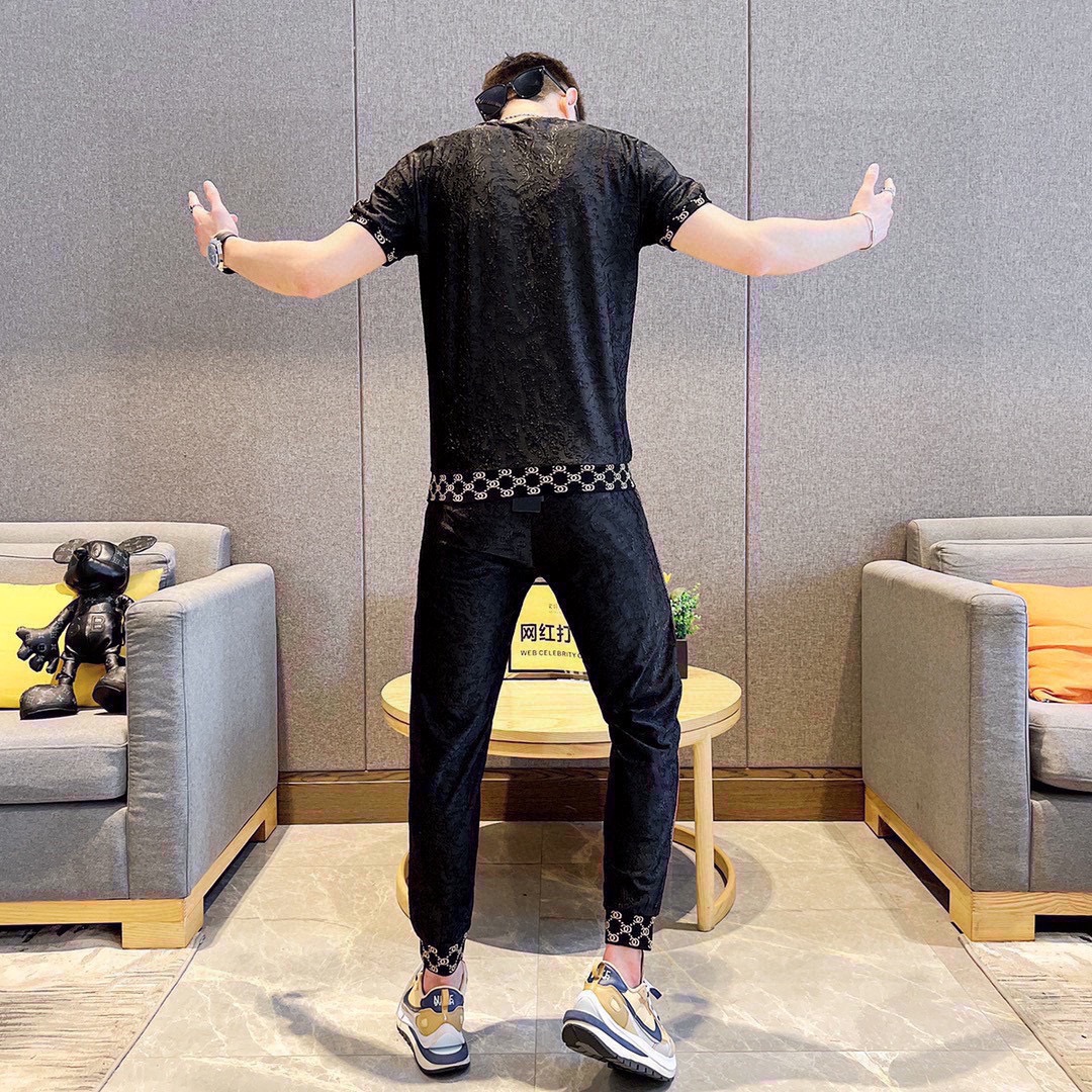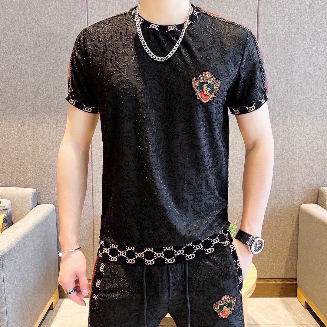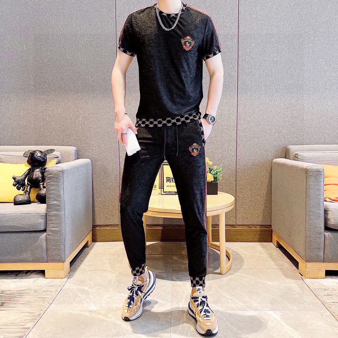 GUCCI men's summer short sleeve set. High quality imported fabric, fashionable season style. Sizes M-5XL.