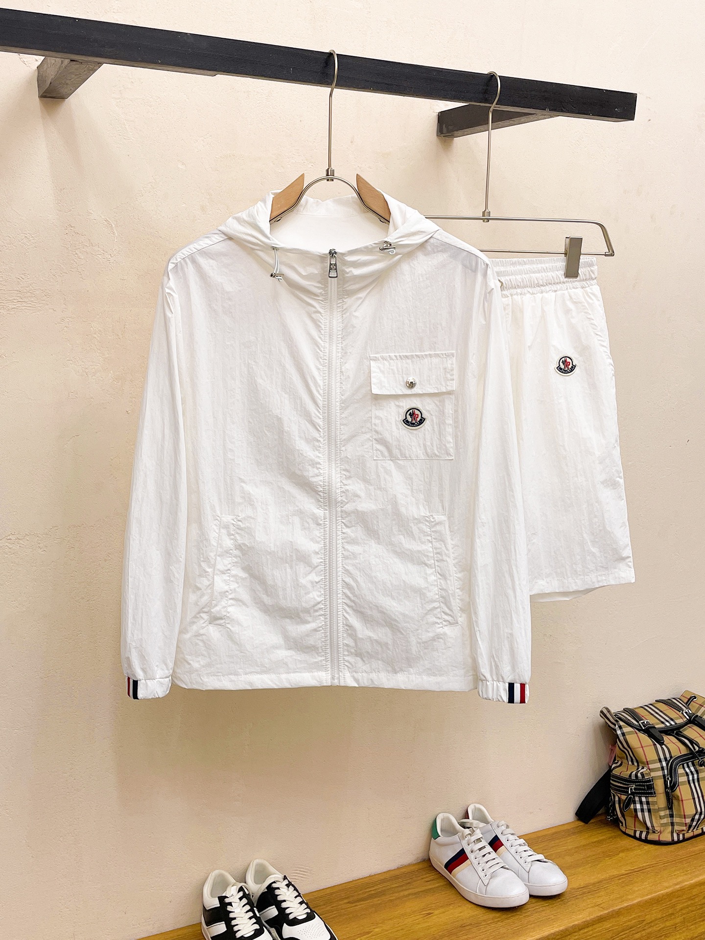 Moncler 2025 summer sun protection shorts set. Overseas edition, luxury custom fit. Imported fiber fabric, soft, comfortable, sweat-absorbing. High-density custom fabric, retains shape after washing. Street fashion, home essential. Sizes: M-XXXL.