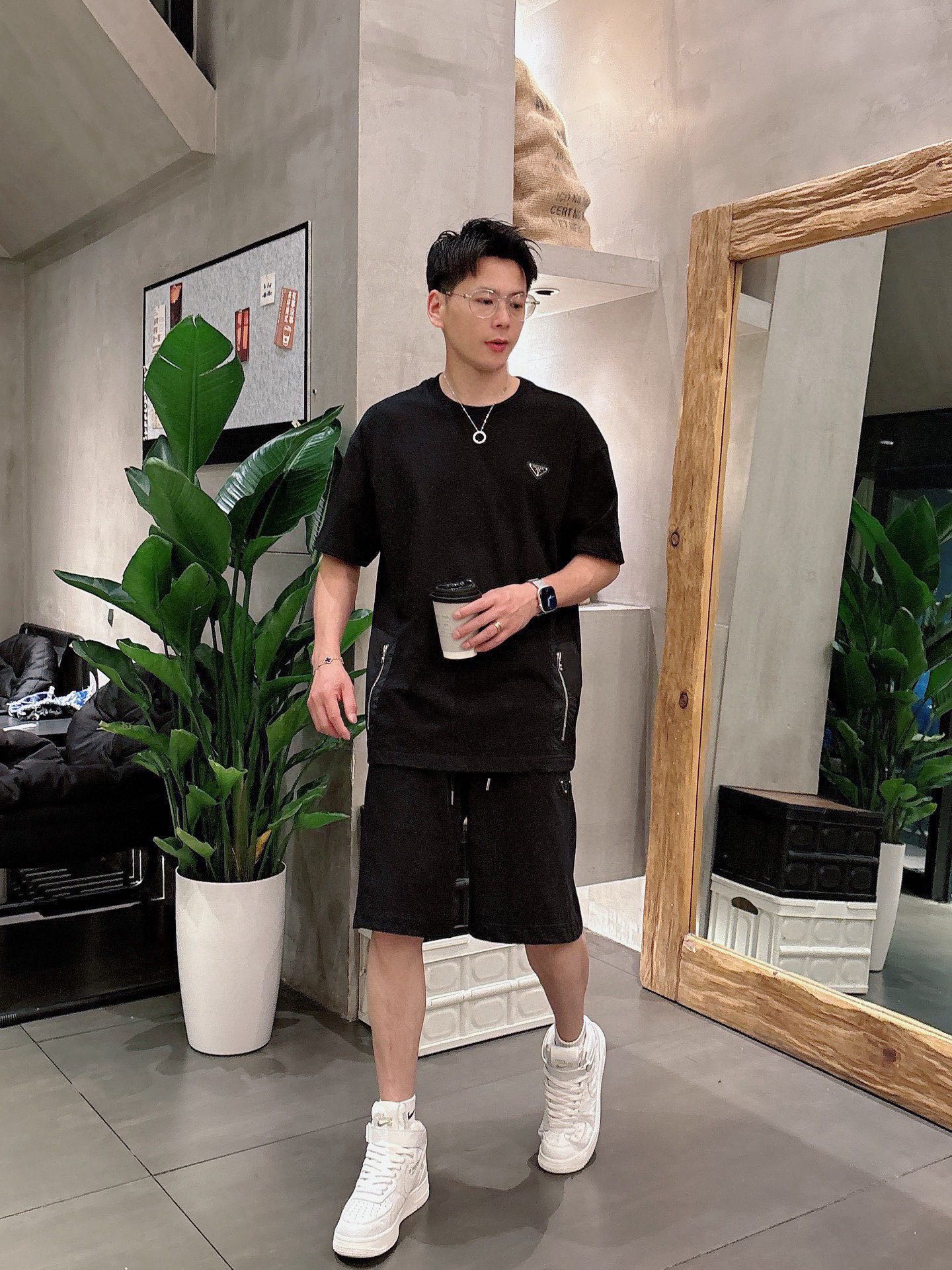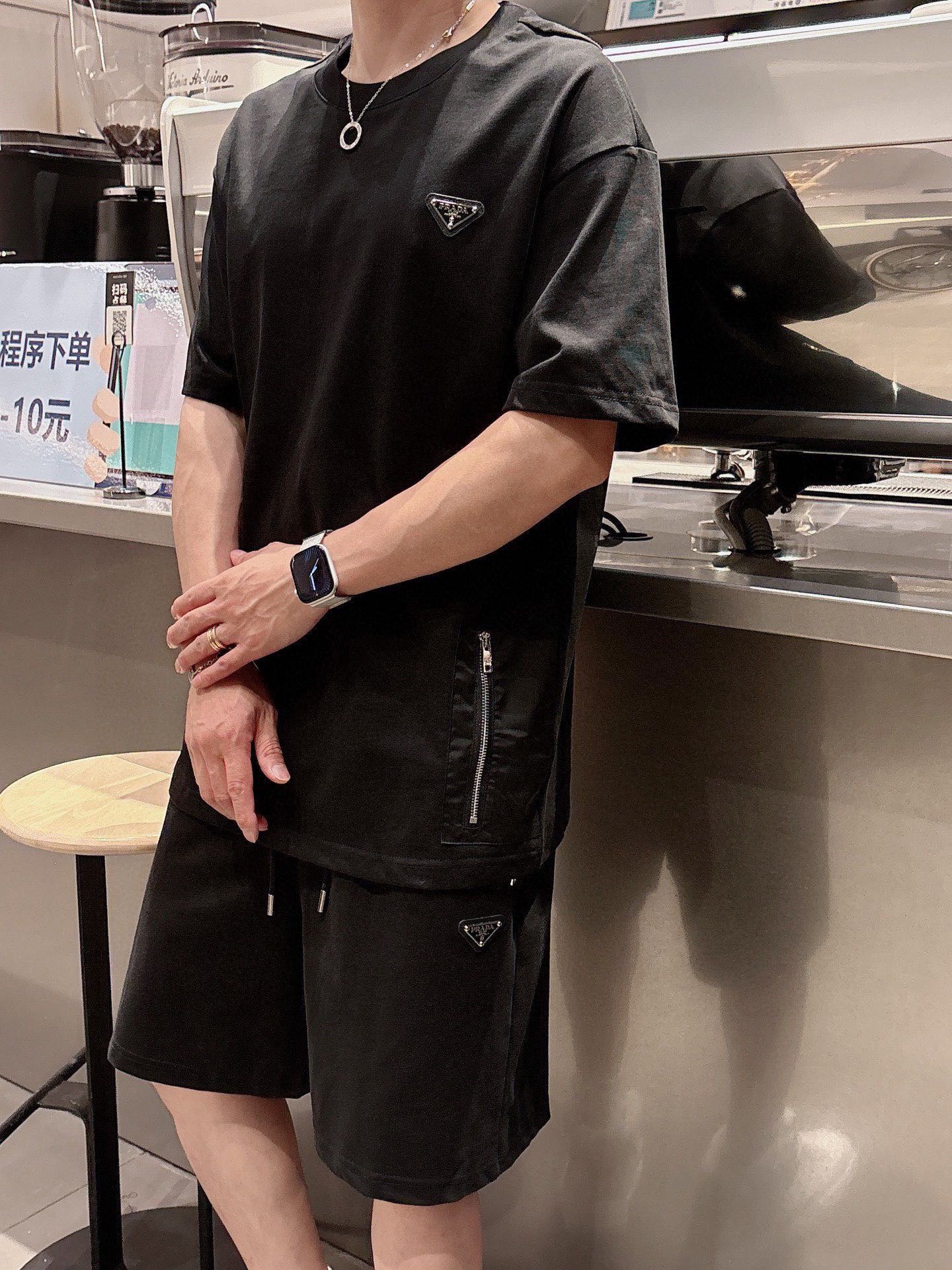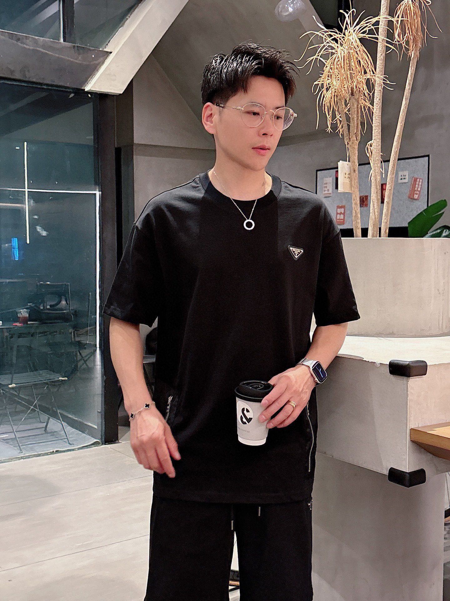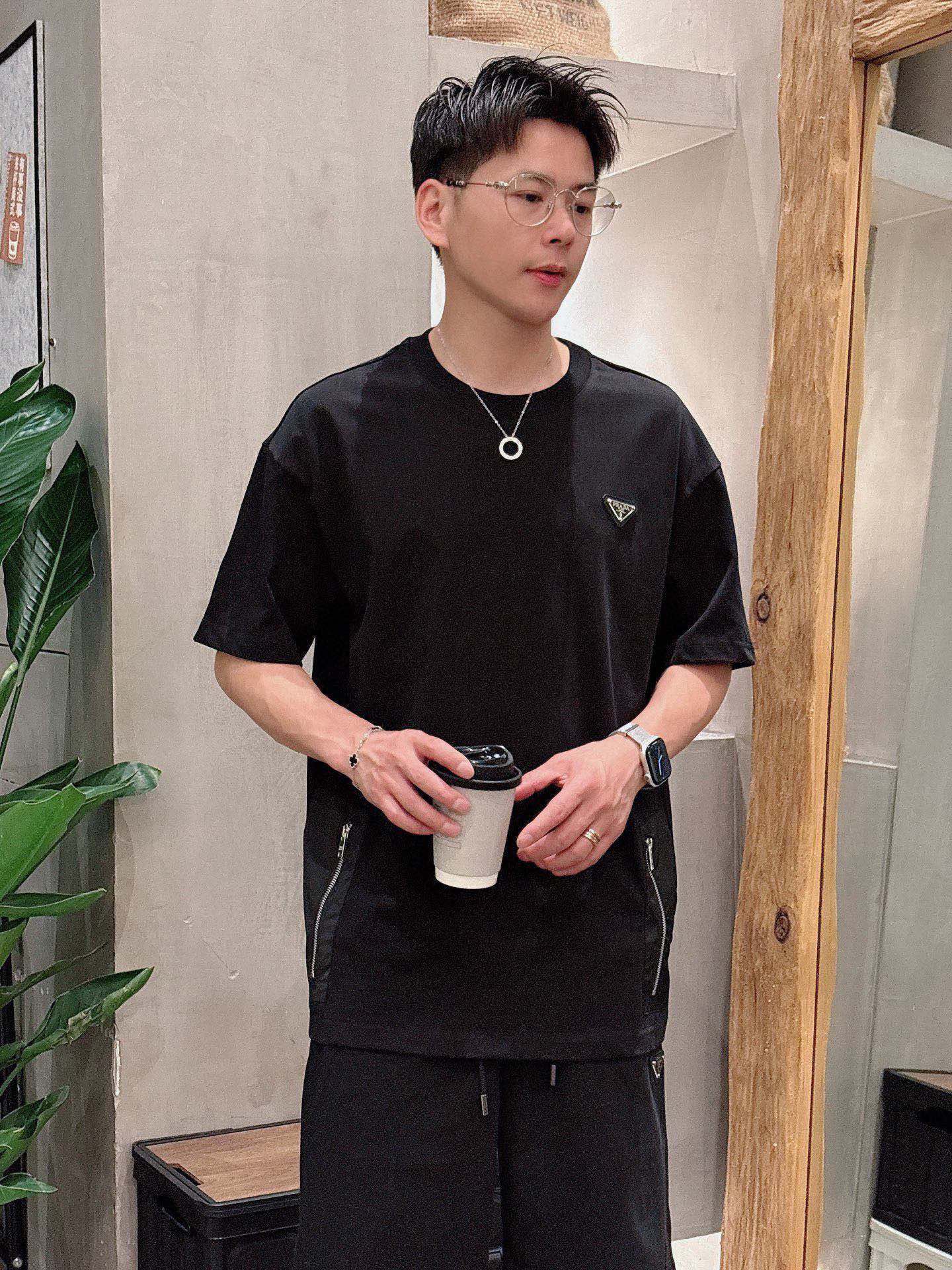 PRADA 2025 cotton short-sleeve set. Breathable, smooth, classic logo. Sizes M-3XL.