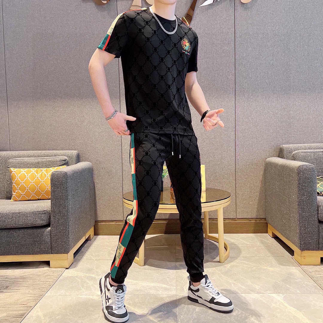 GUCCI men's summer short sleeve set. High quality imported fabric, trendy style. Sizes M-5XL.