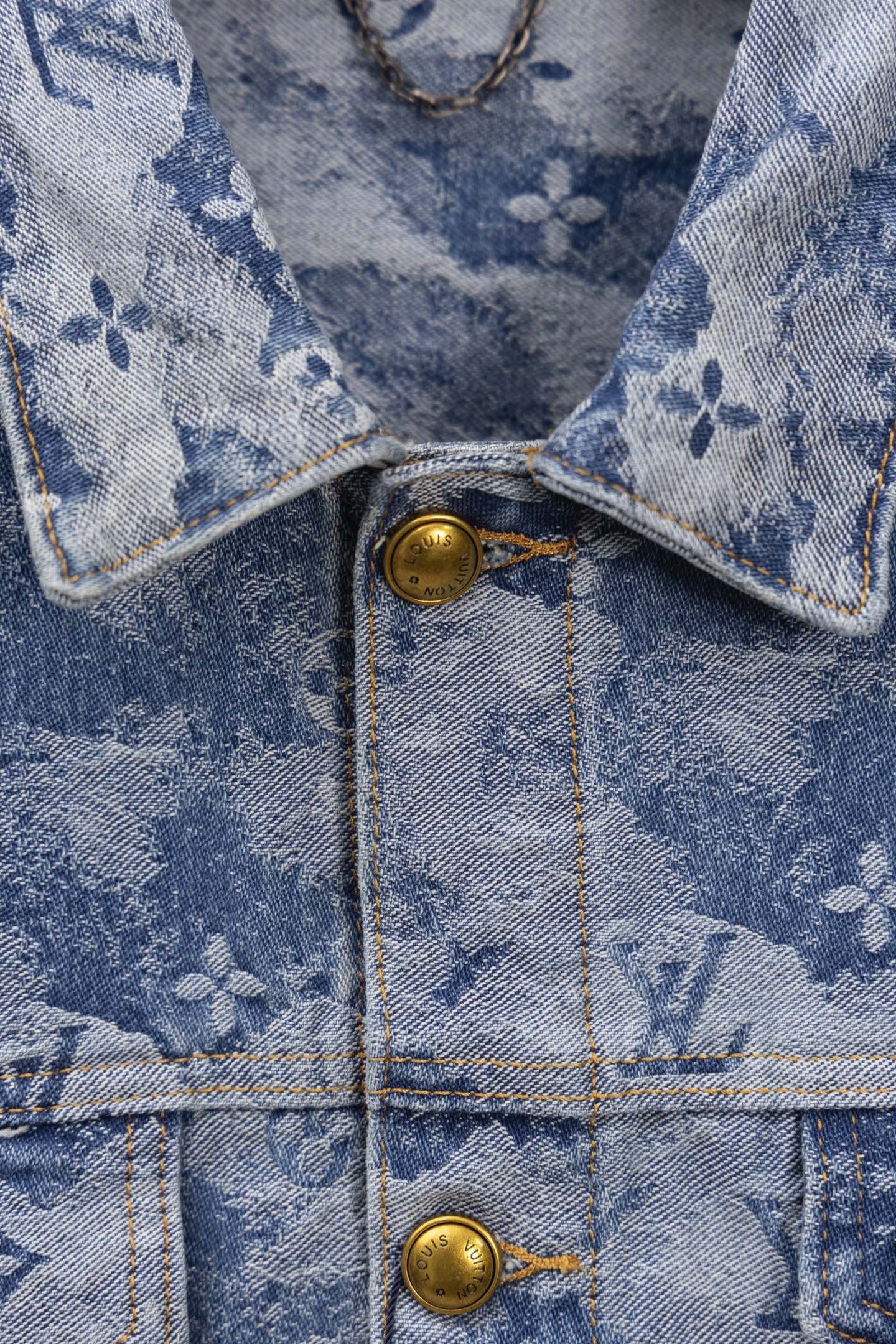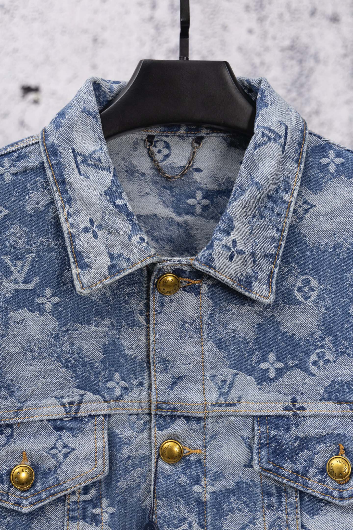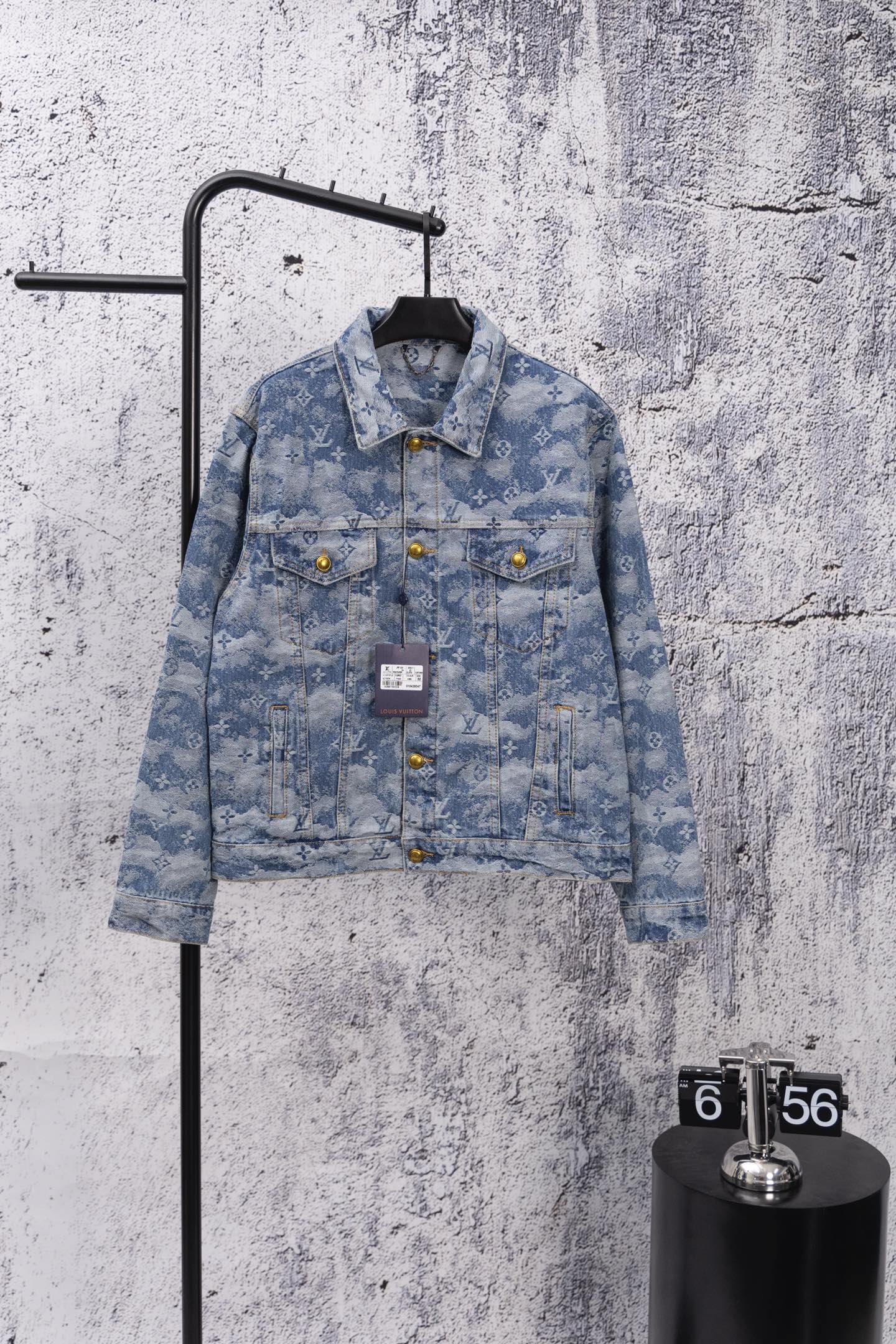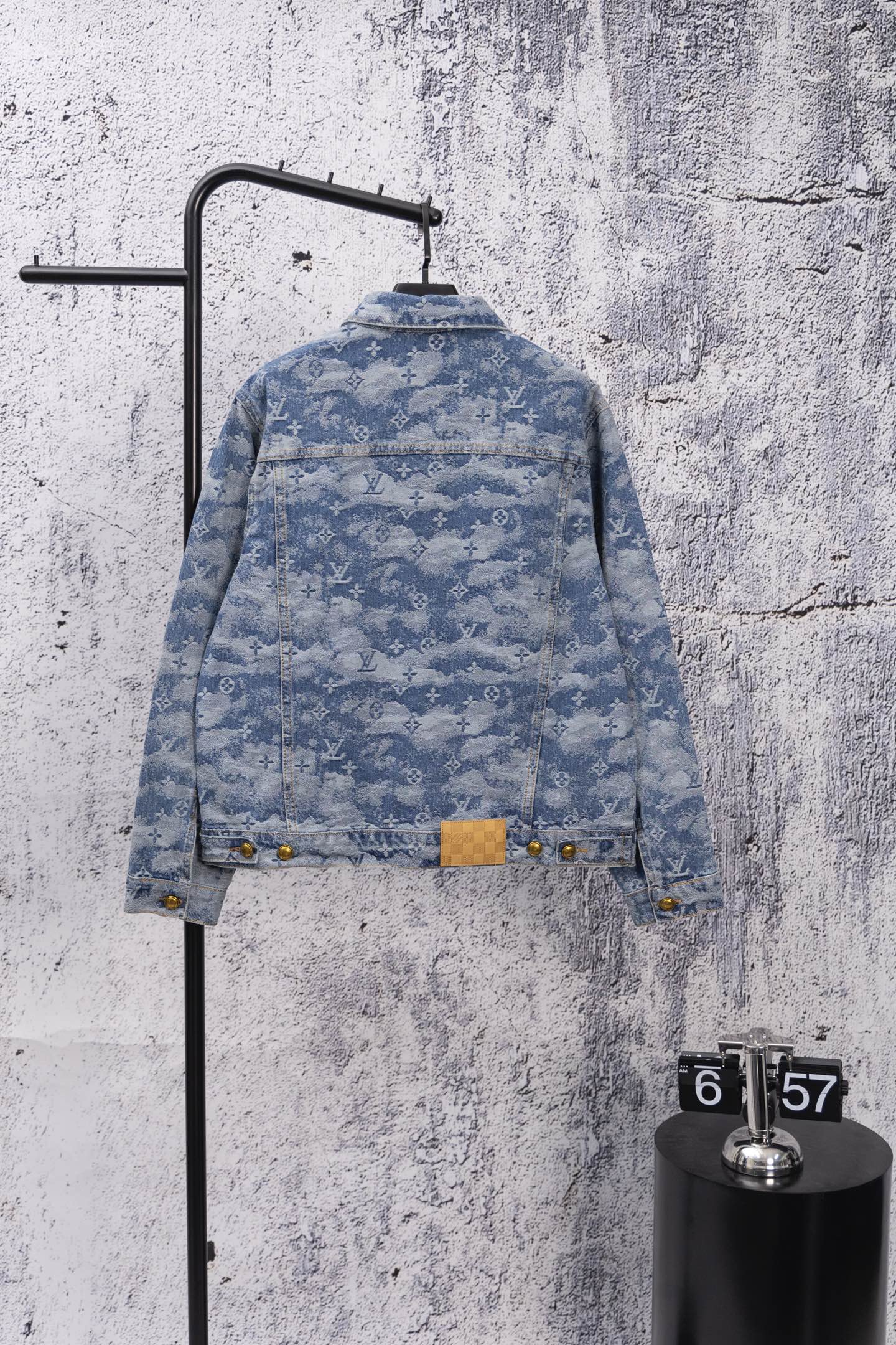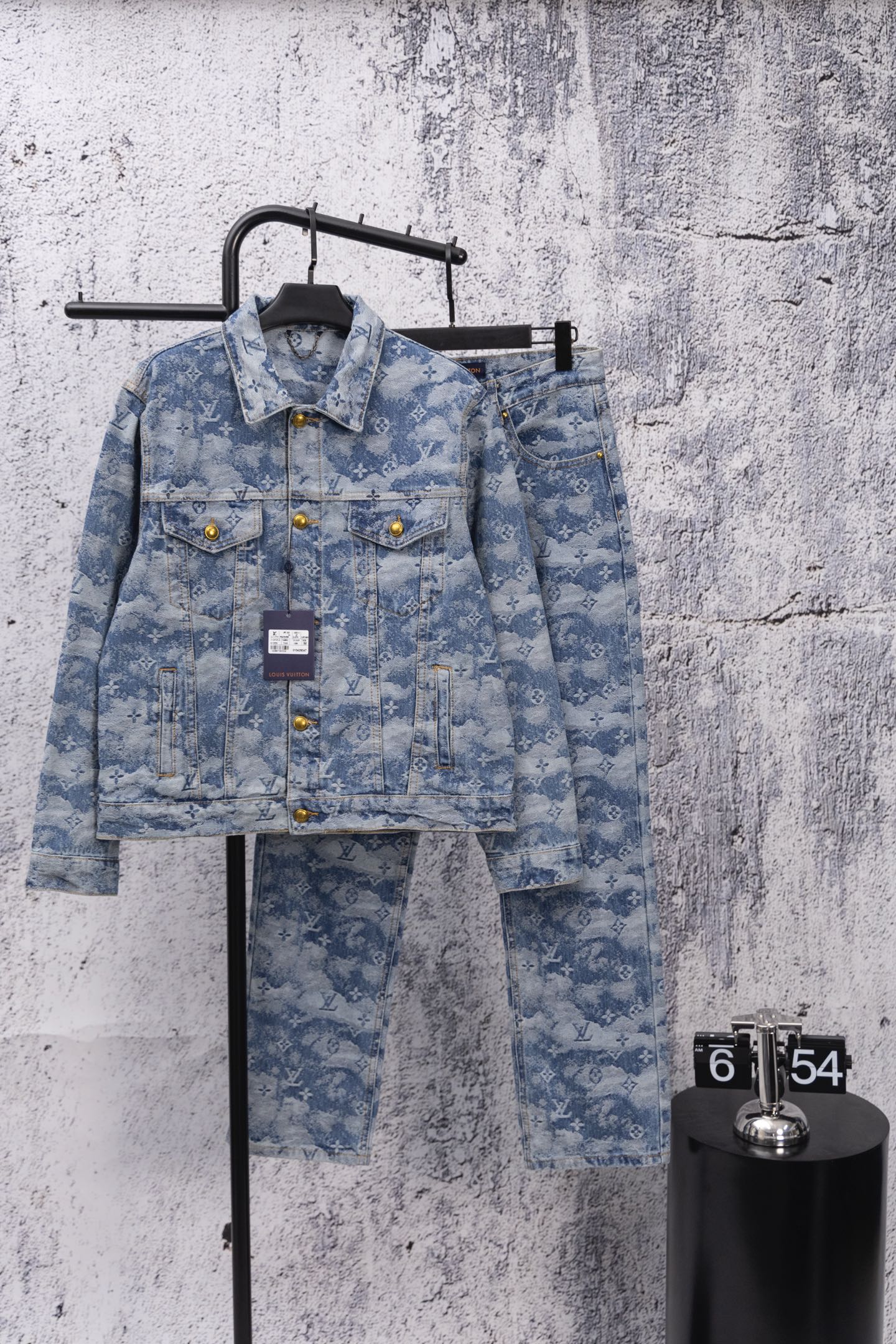 Louis Vuitton 25FW denim set, limited cloud pattern, classic monogram, washed blue. Retro, slim-fit, low-key check design. Soft imported denim, textured jacquard, custom metal buttons. Relaxed fit, shirt collar. Must-have stylish item.