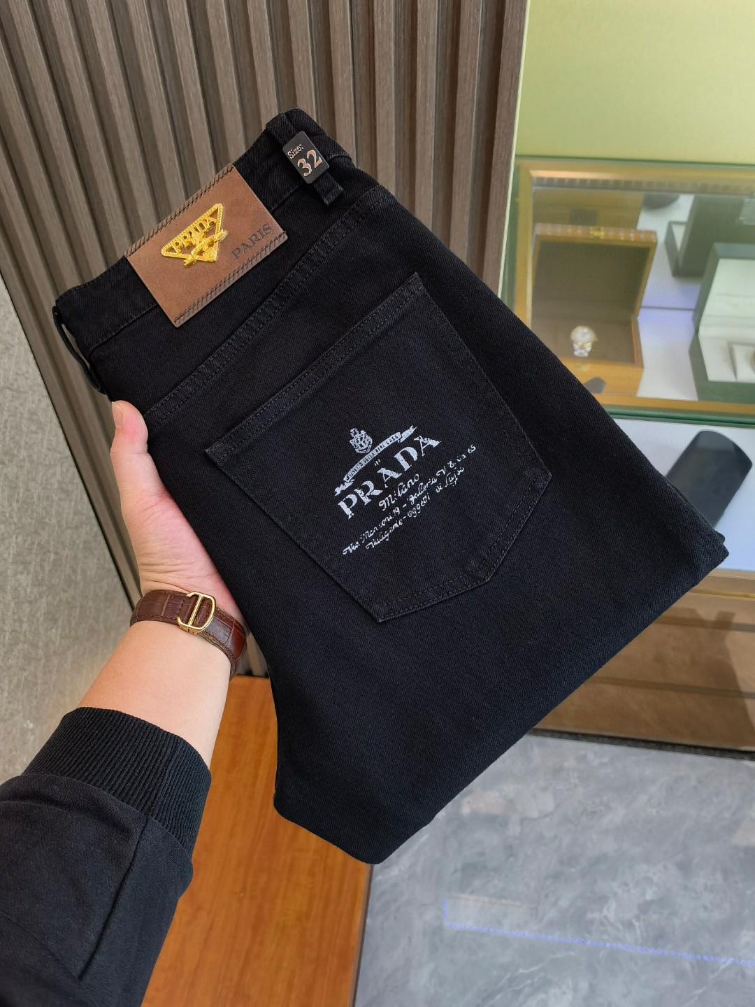 Prada new winter 2085 jeans. European imported fabric, comfortable and stylish. Sizes 29-42. Essential for any occasion.