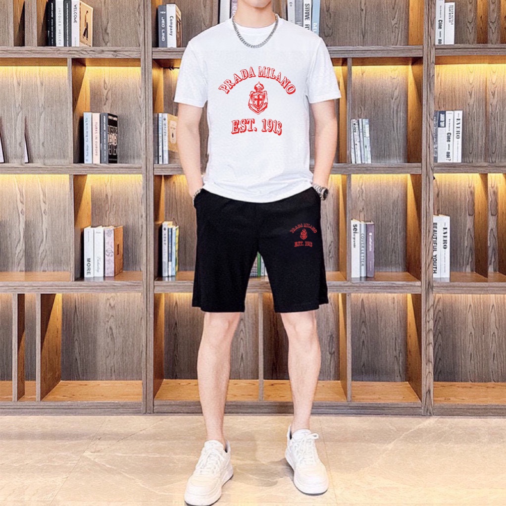PRADA Men's 2025 Short Sleeve & Shorts Set. High-end version, soft fabric, comfortable fit. Sizes: M-5XL.
