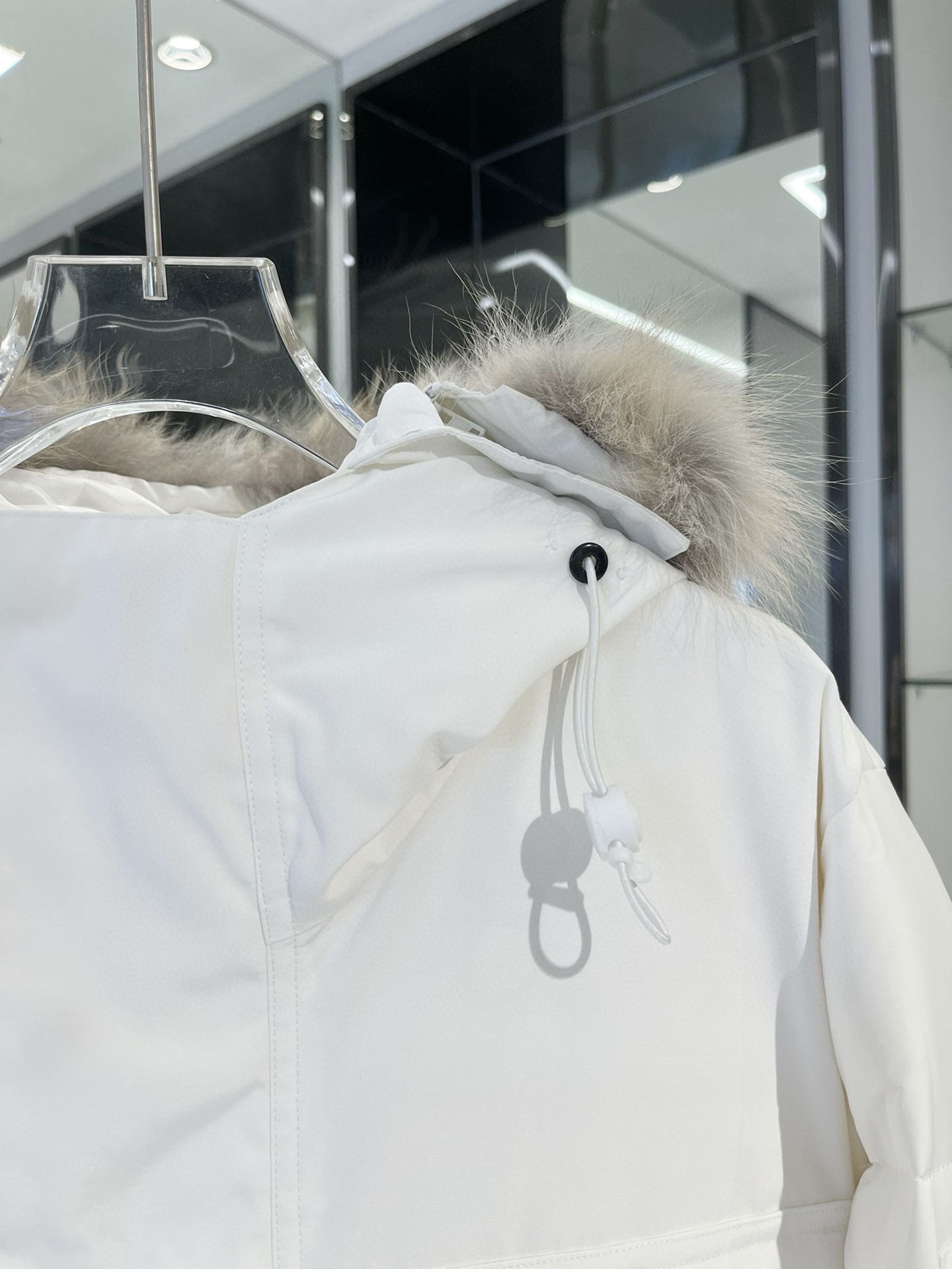 Compared to the classic version, this one is much lighter, weighing 302g, so it won't feel heavy when worn, but the cold resistance level remains unchanged! It comes with matching embroidery, toning down the chest logo. Fur trim is optional.