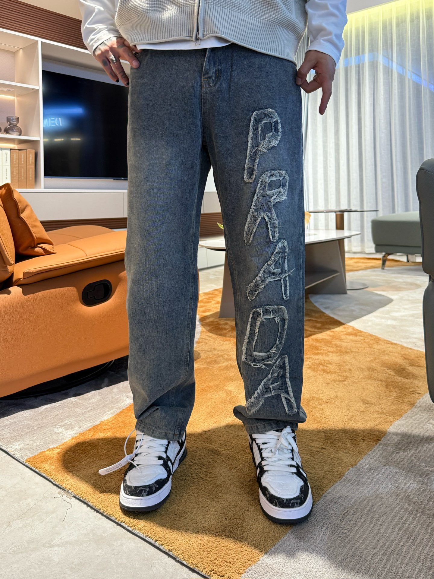 Prada 2025 Fall/Winter new jeans. Classic logo, complete labels. Original hardware. Custom denim, true to boutique. Sizes 30-36.