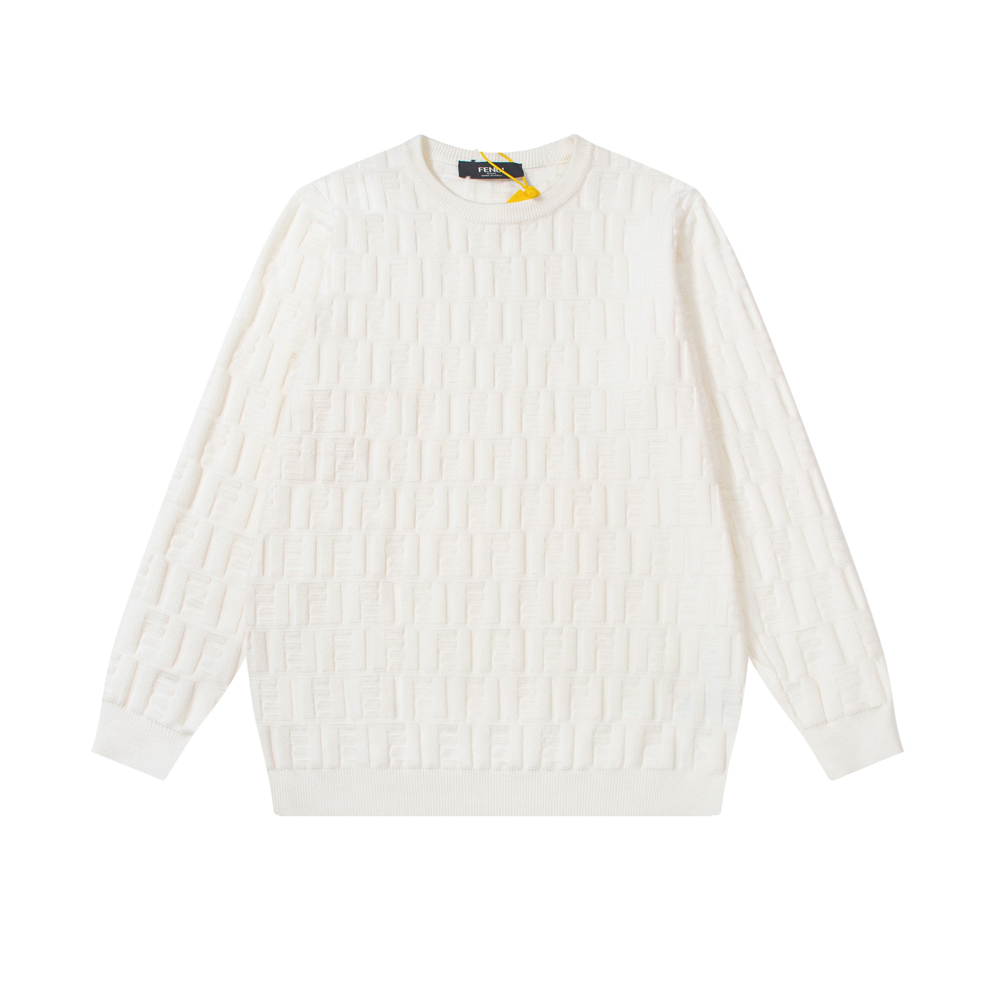 New explosive style FENDI, exclusive new knitted sweater, unique double F jacquard Logo with distinct凹凸 relief. Really特别棒.随便搭什么都时尚感倍佳. Workmanship and details are 1:1 synchronized with the official website. Absolutely does not pill, not itchy to the body, feels super comfortable to the touch. The cut is特别舒适, appearance is super high, color matching is extremely beautiful, workmanship is超细致, strongly recommended. Can compare quality in the market, not afraid to compare with other sellers.