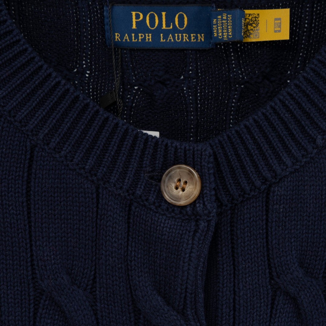 Ralph Lauren embroidered knit cardigan. Colors as shown. Sizes S-XL. 100% cotton. Custom trim. Unisex.