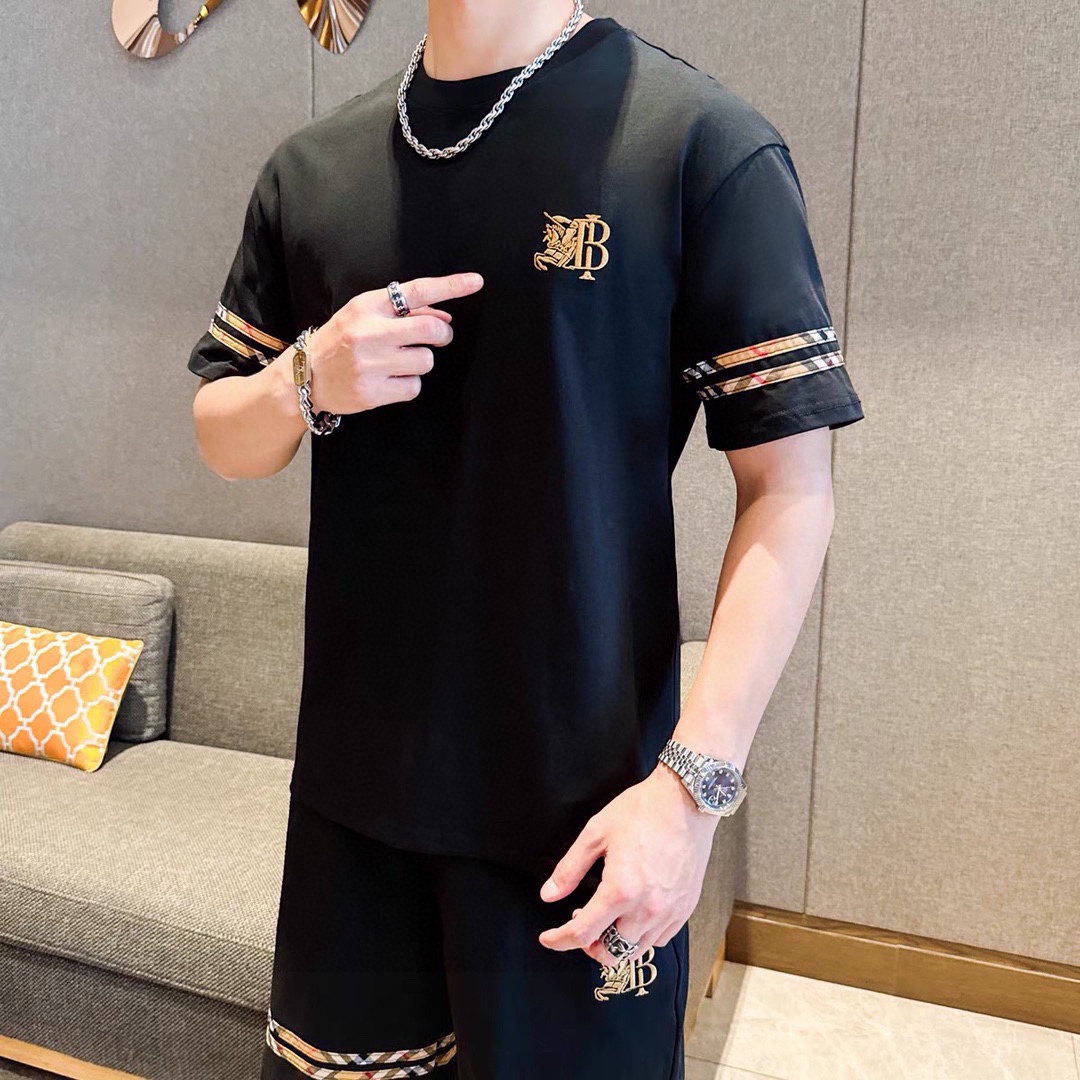 BURBERRY men's summer short sleeve and shorts set. High quality, imported fabric, fashionable design. Sizes M-4XL.