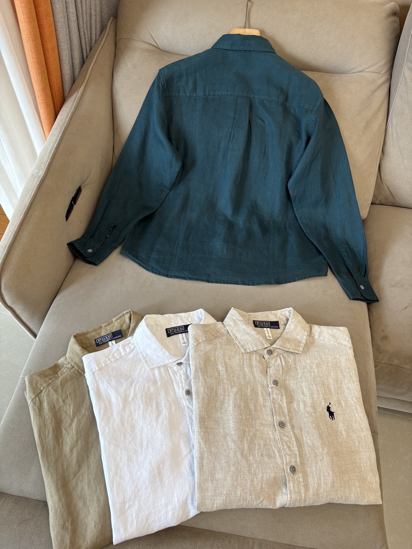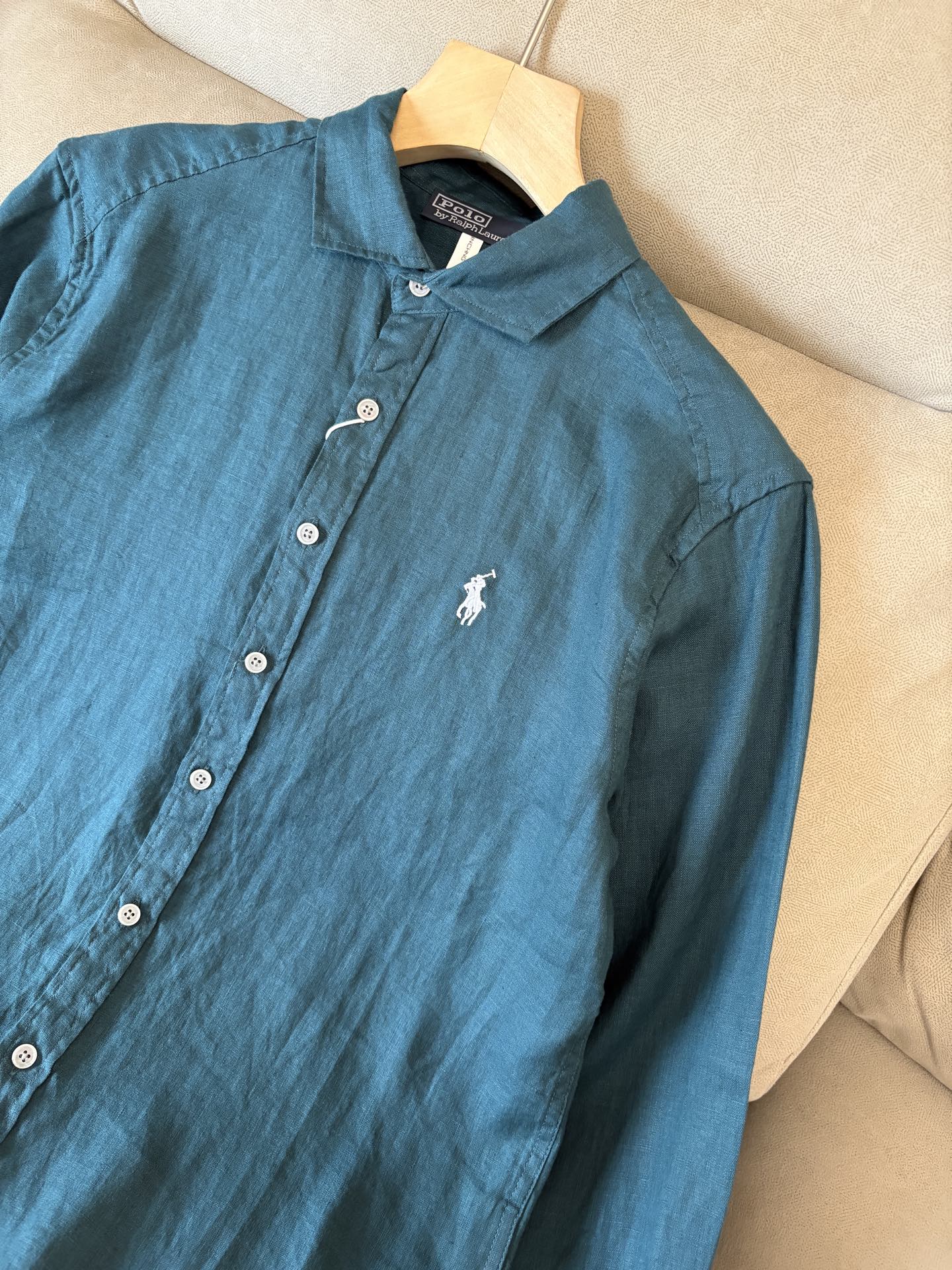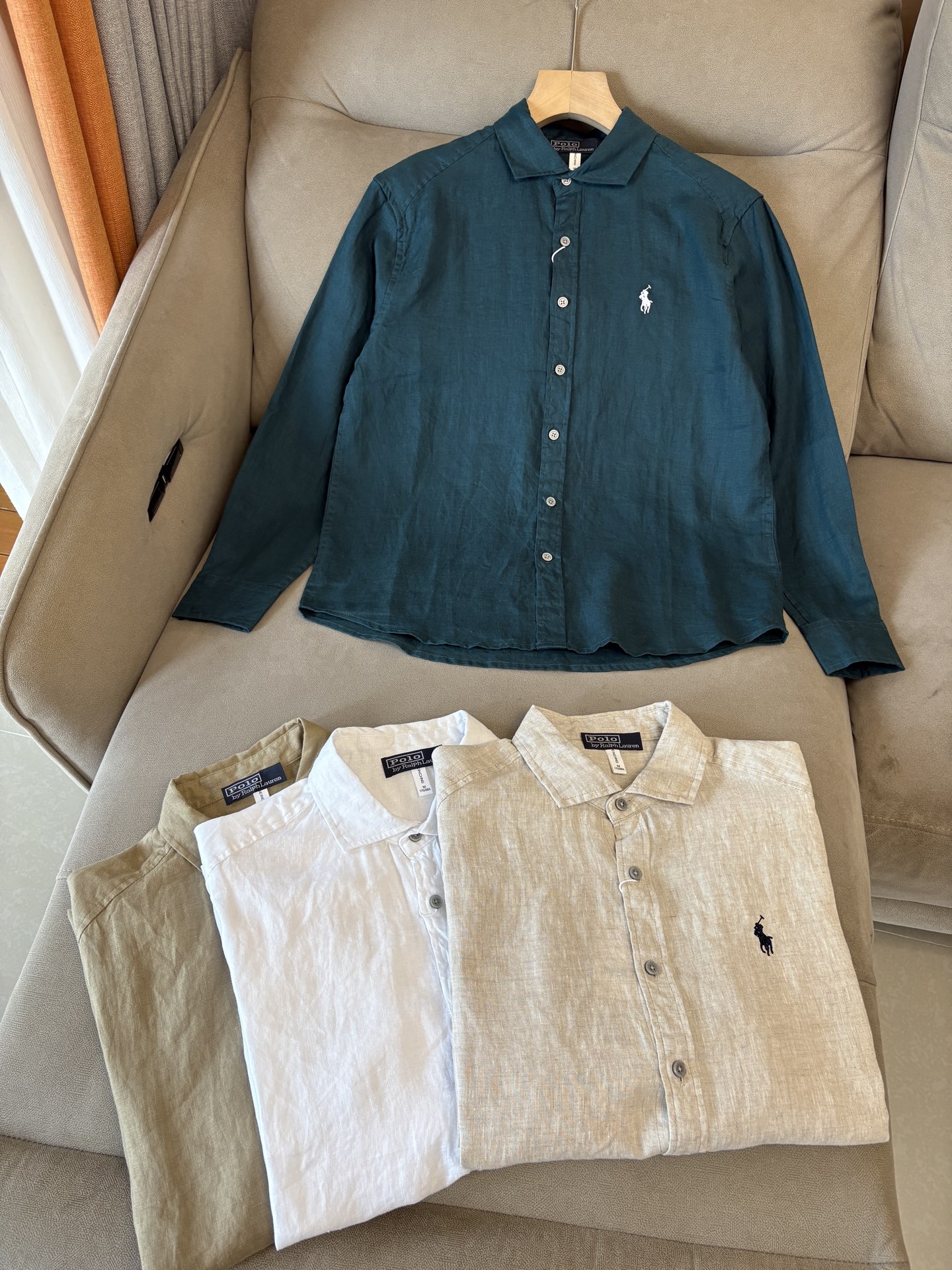 Ralph Lauren P270 2025 summer linen shirt. Colors: white, natural, khaki, green, blue. Sizes: M-3XL.