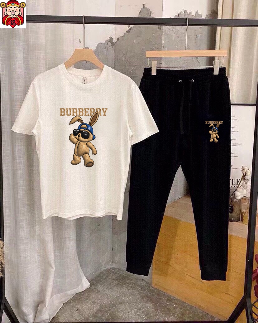 BURBERRY men's summer dual-gloss luxury set. Imported fabric, trendy, versatile. Sizes M-5XL (up to 220 lbs).
