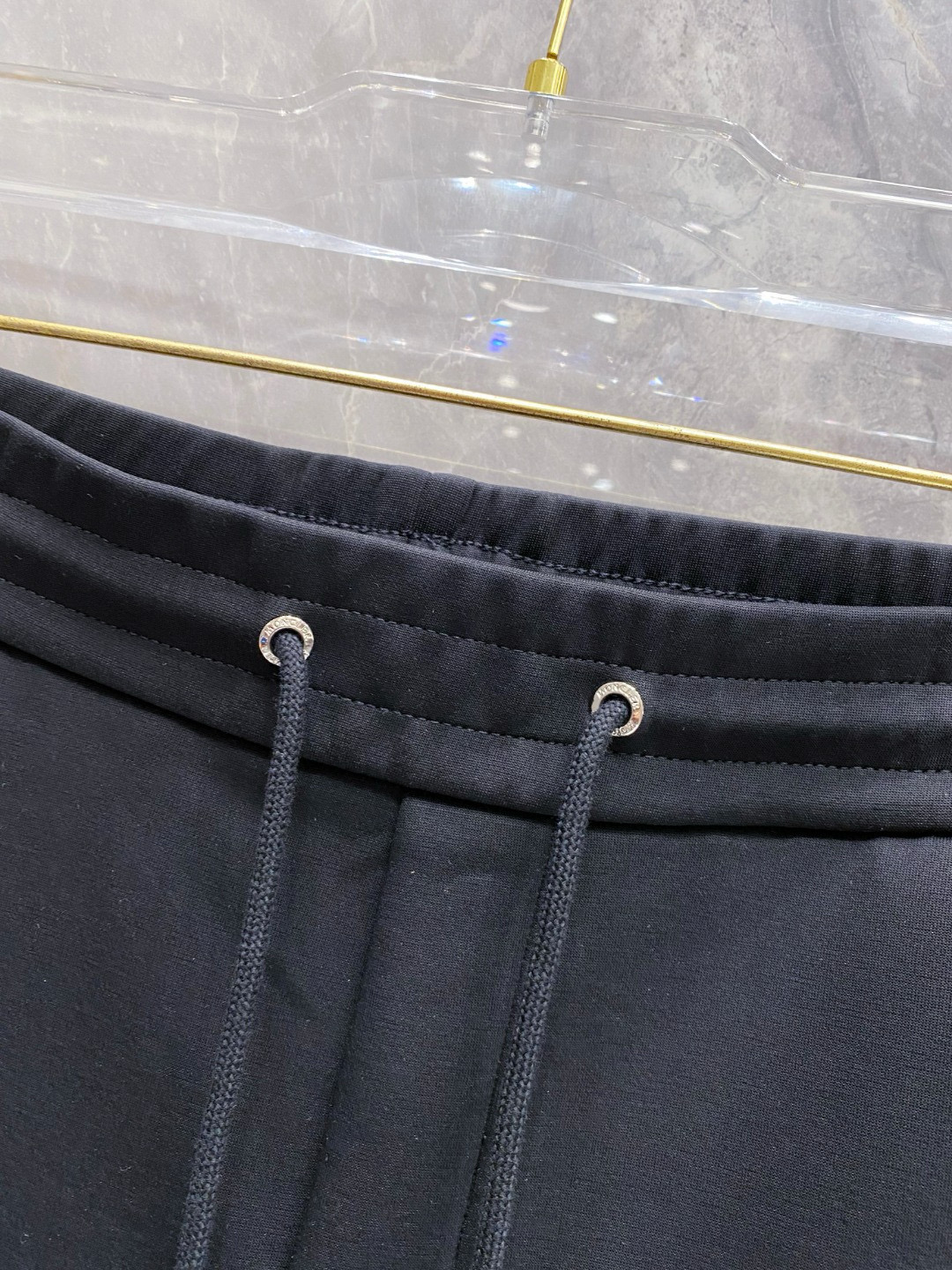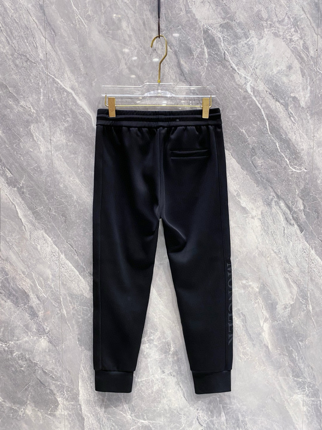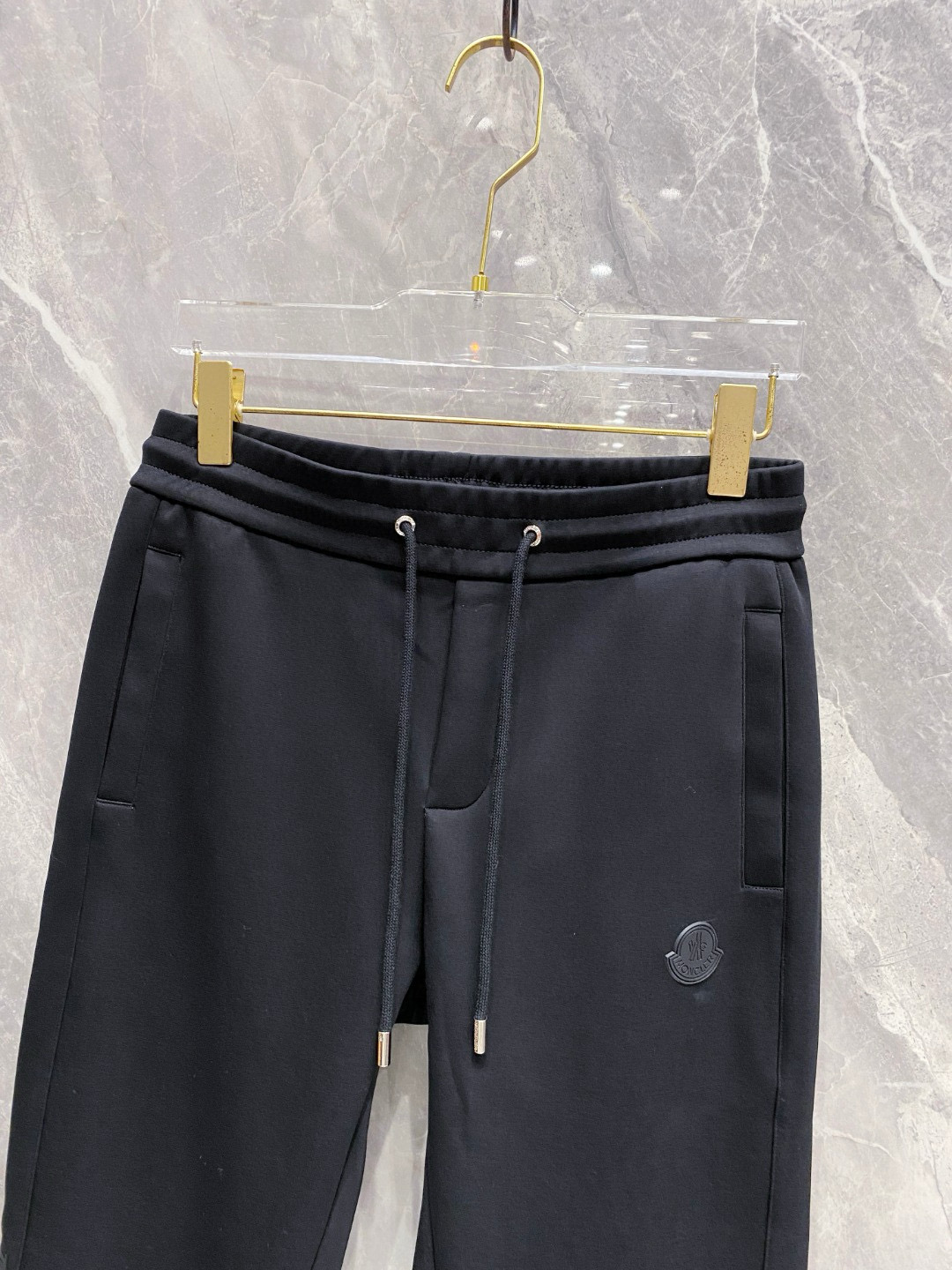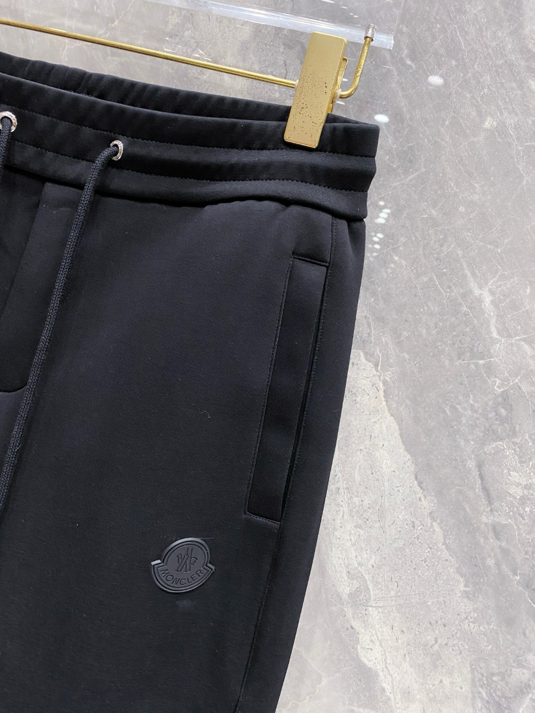Moncler 2025 early autumn casual set. New design with拼接fabric, classic logo. Tailored urban style, soft fabric, structured fit. Colors: Black. Sizes: M to XXXL.