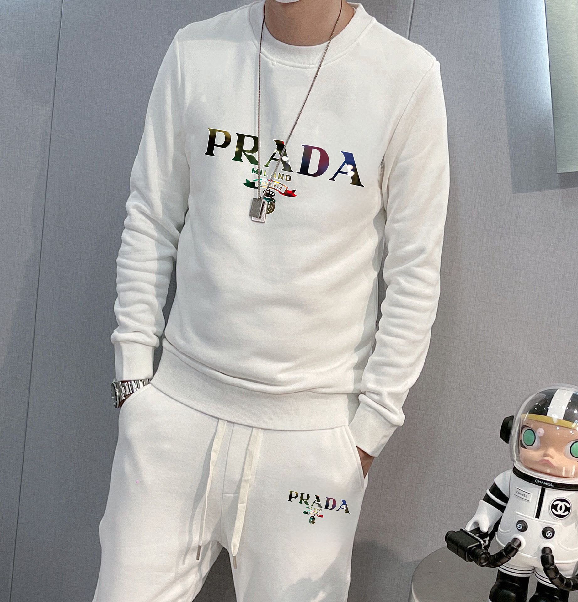Prada 2025 new hoodie set. Premium Roman cotton, comfortable fit. Elegant design, metal hardware. Sizes M-5XL (up to 220斤).