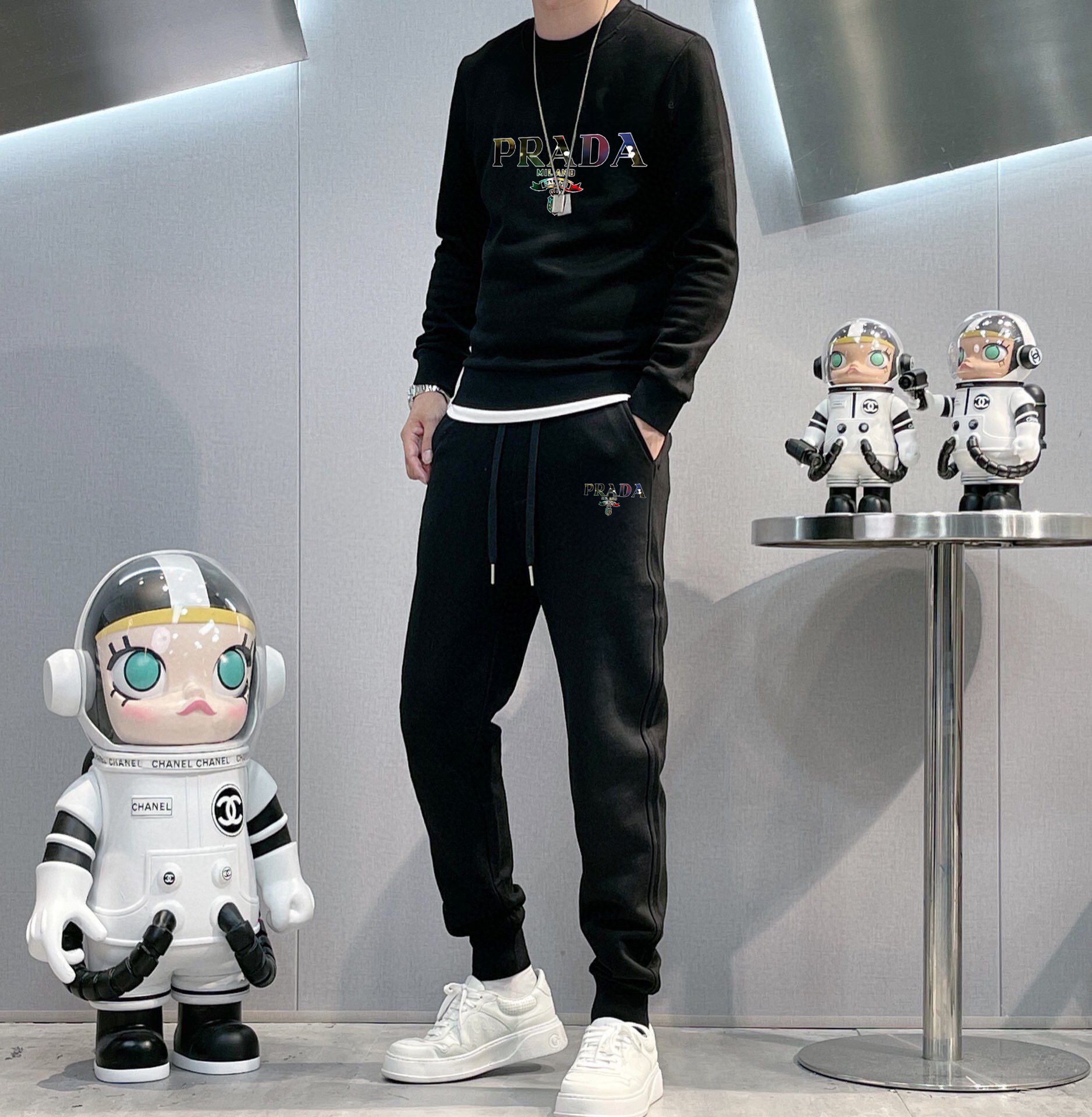 Home • Apparel • Suit • PRADA 2025 new hoodie set, high-quality Roman cotton, comfortable fit, elegant design. Sizes M-5XL, up to 220斤.