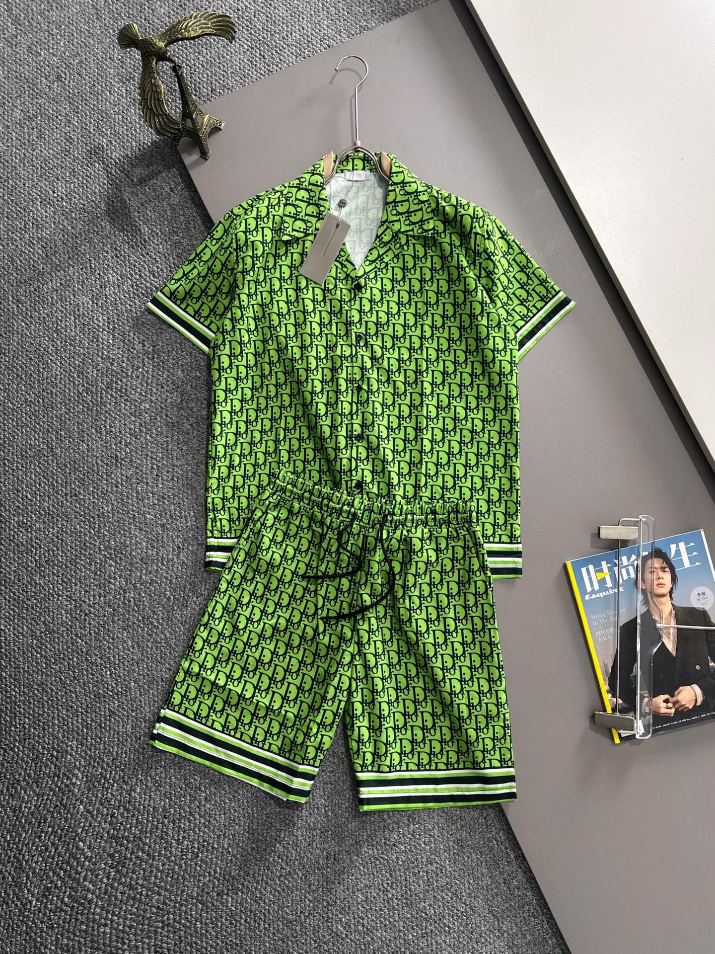 Dior 2025 summer classic logo print set. Lightweight cotton, digital print, polyester fabric. Breathable mesh lining in pants. Standard cut, versatile for casual wear. Unisex sizes M-3XL.