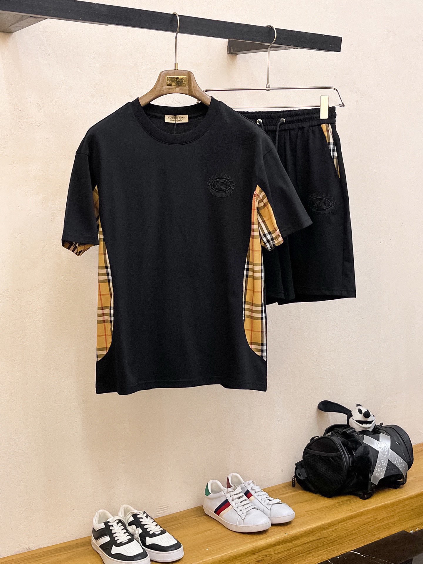 BURBERRY 2025 round-neck short sleeve and shorts set. Pure cotton, breathable and comfortable with textured fabric and classic logo. Sizes: M-3XL (up to 190kg).