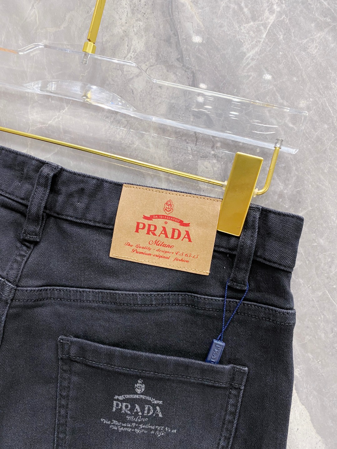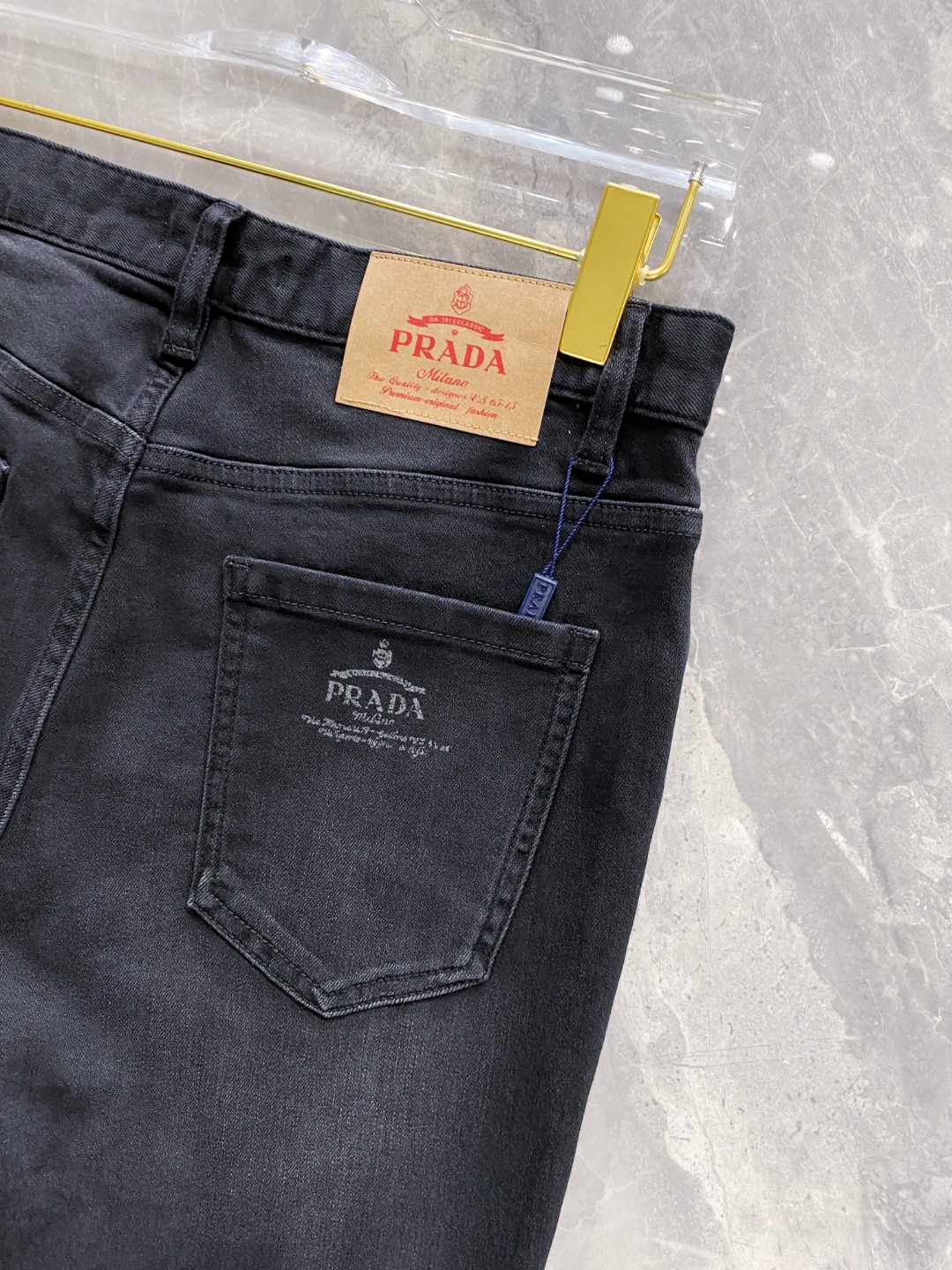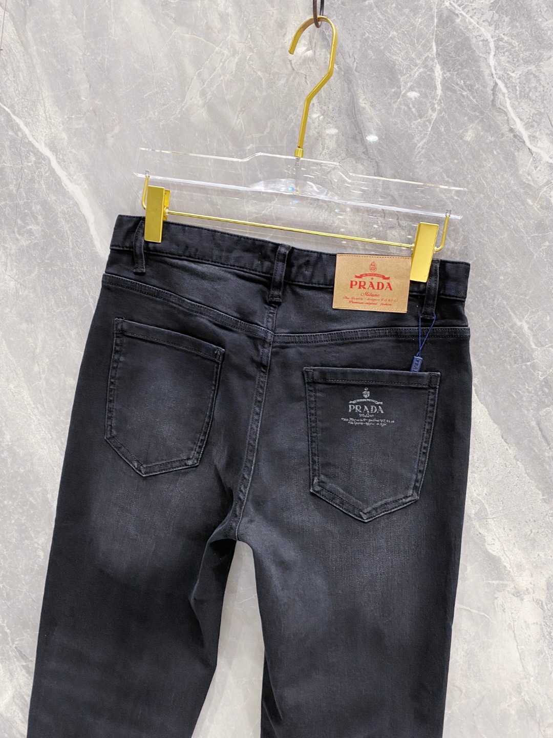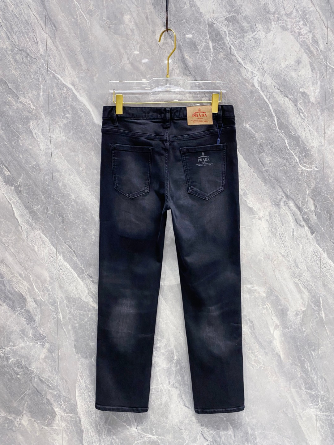 Prada 2025 Fall/Winter men's jeans. Heavy wash denim, custom soft fabric, excellent elasticity. Top craftsmanship, custom logo hardware. Low-key design. Sizes 29-38.