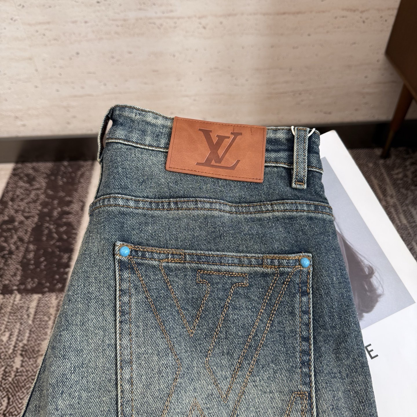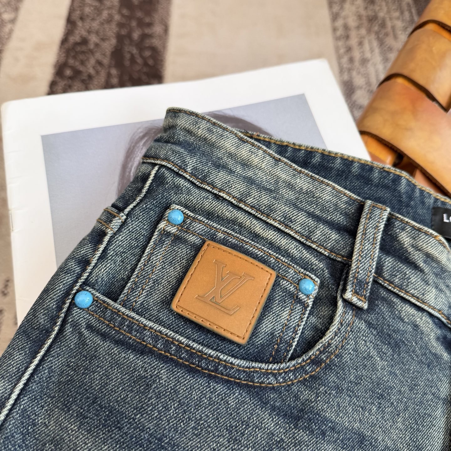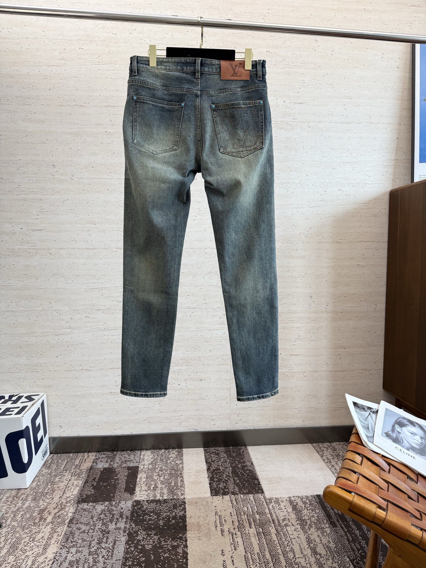 LV25S Men's Straight Leg Jeans for Autumn/Winter. Made of soft, resilient cotton denim with classic embossed logo. Sizes 29-38.