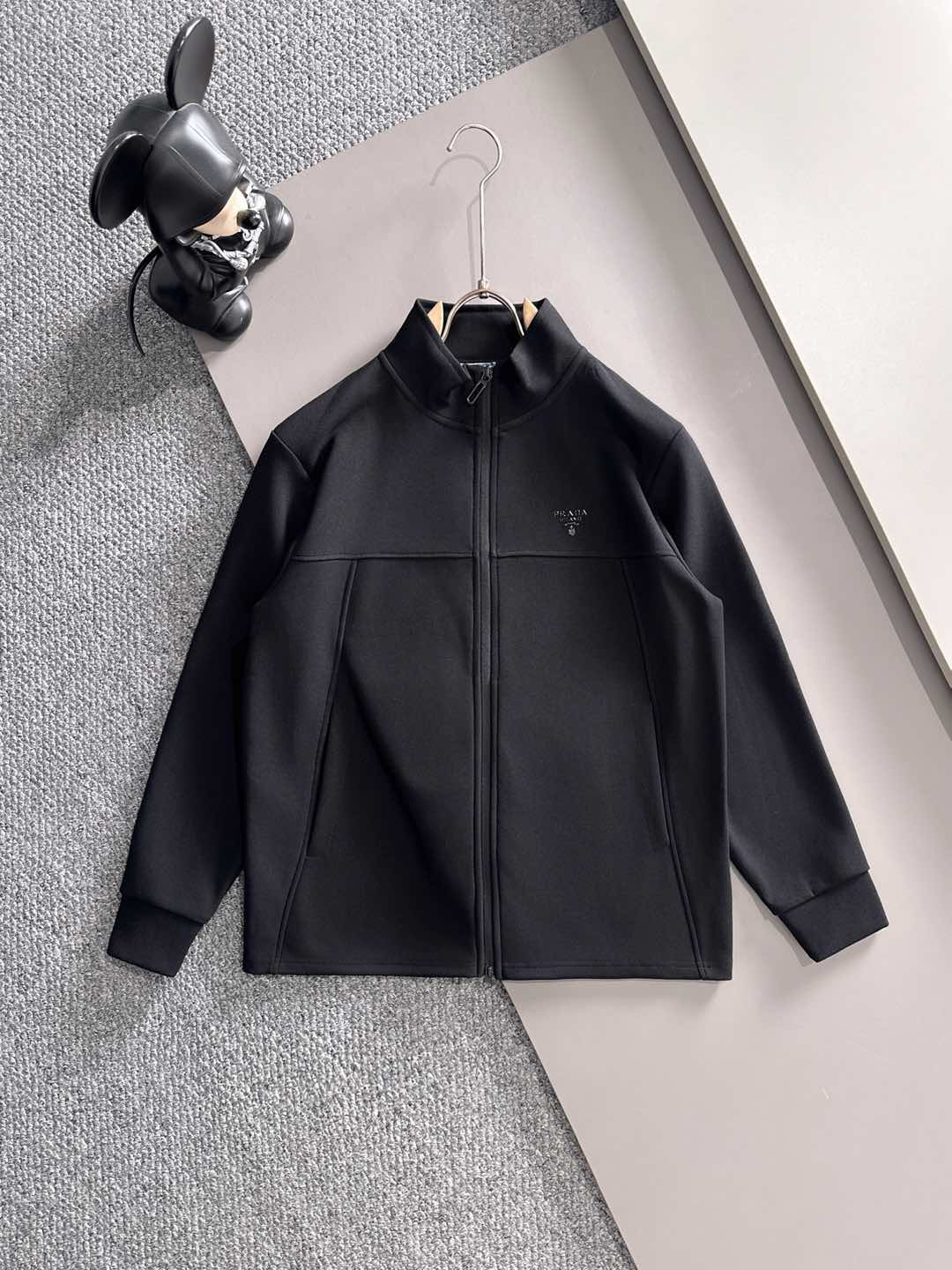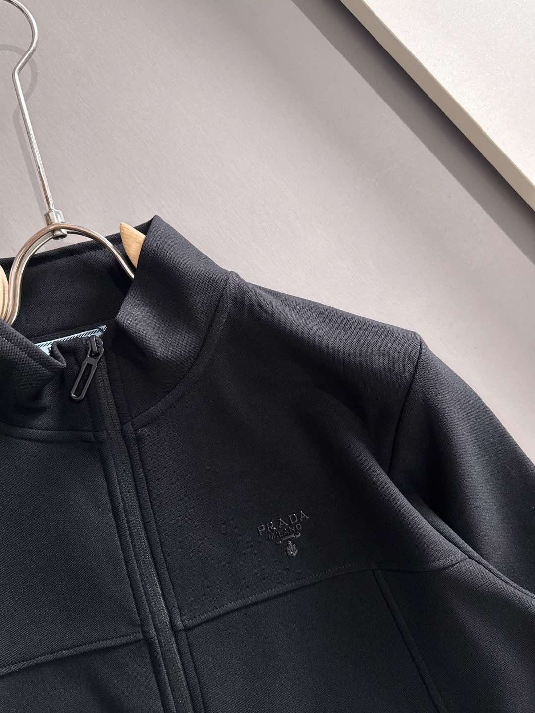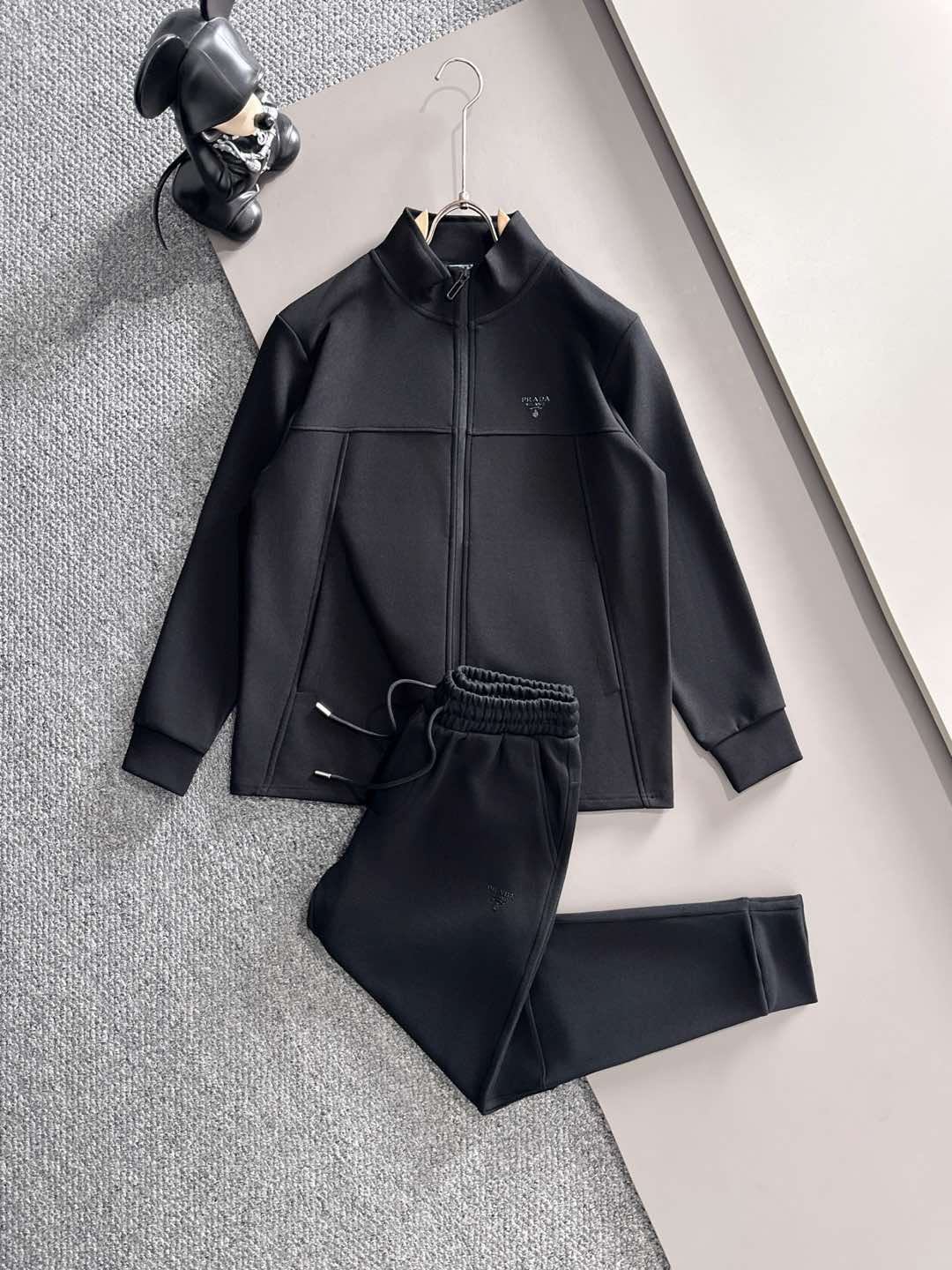 Home•Apparel•Suit•Prada P320 set, top拼接suit with woven tape, zipper pants, logo embroidery, classic black and white, versatile store version, custom fabric, fine craftsmanship, complete with three labels, trendy men's fashion, superior comfort. Sizes: M-3XL.