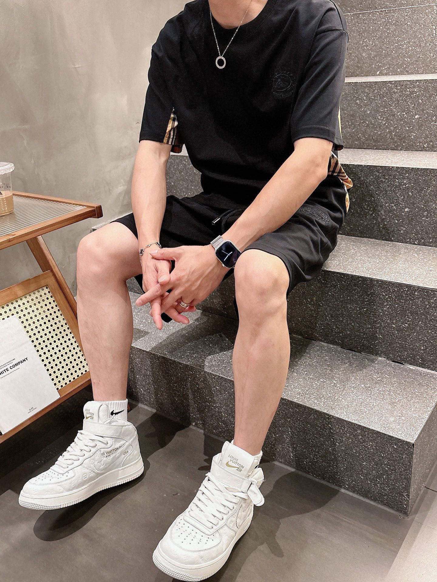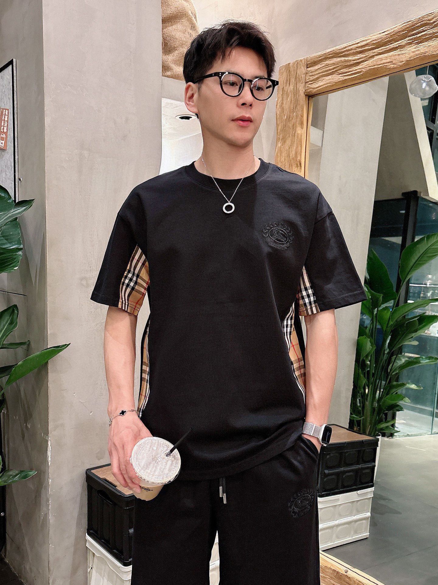 BURBERRY 2025 short sleeve and shorts set. Round neck, pure cotton, breathable and comfortable. Classic logo. Sizes: M-3XL (up to 190斤).