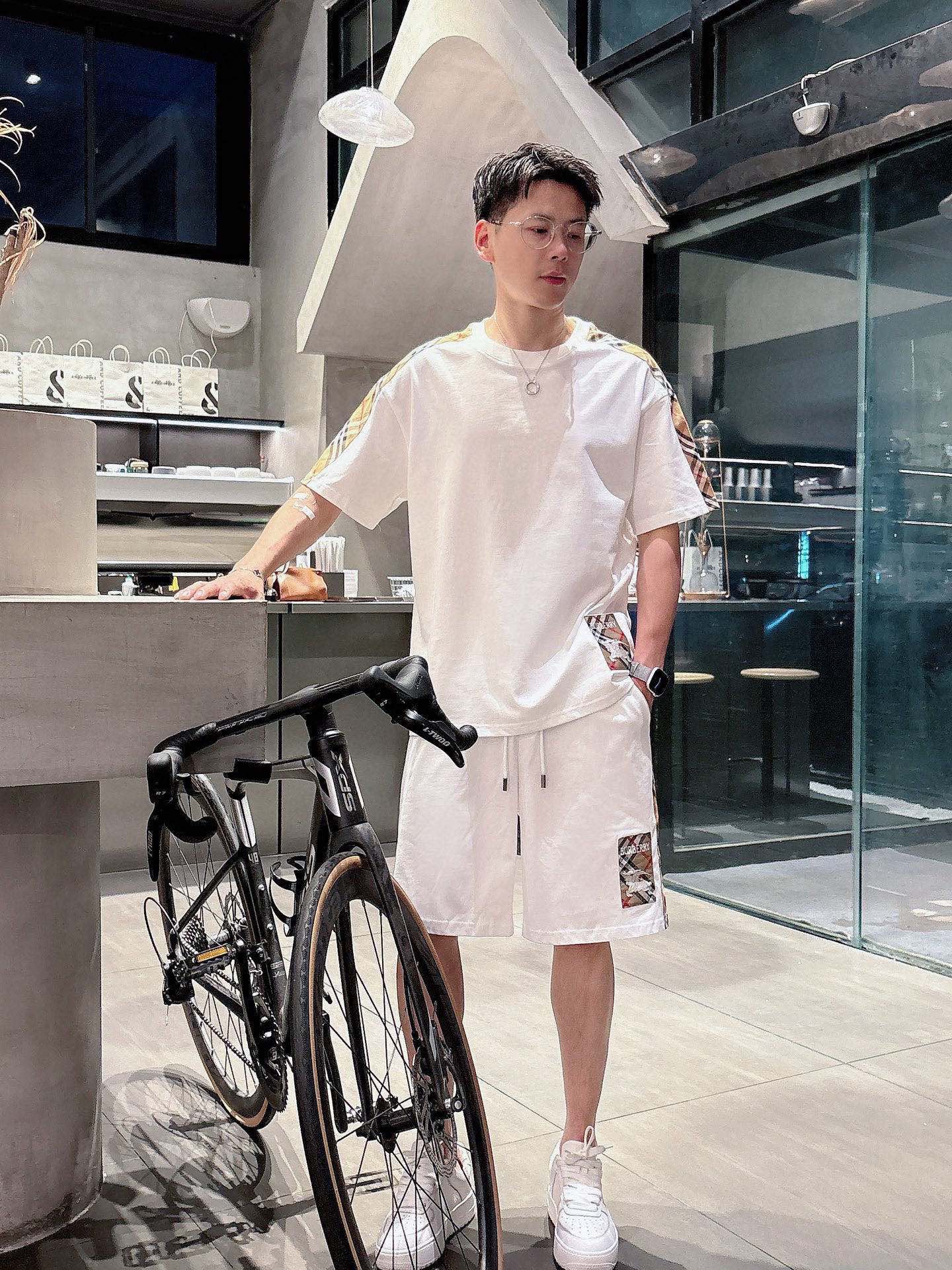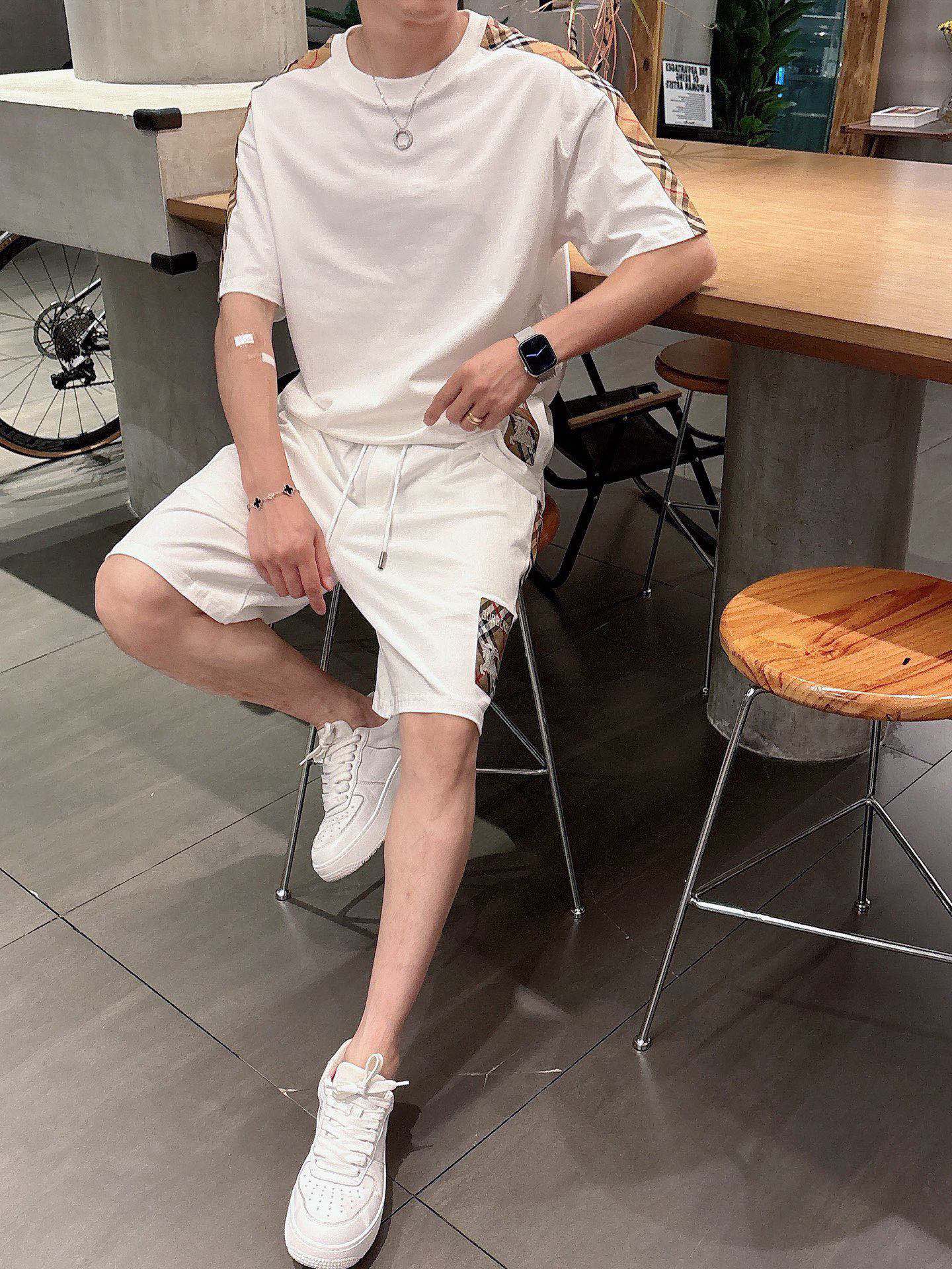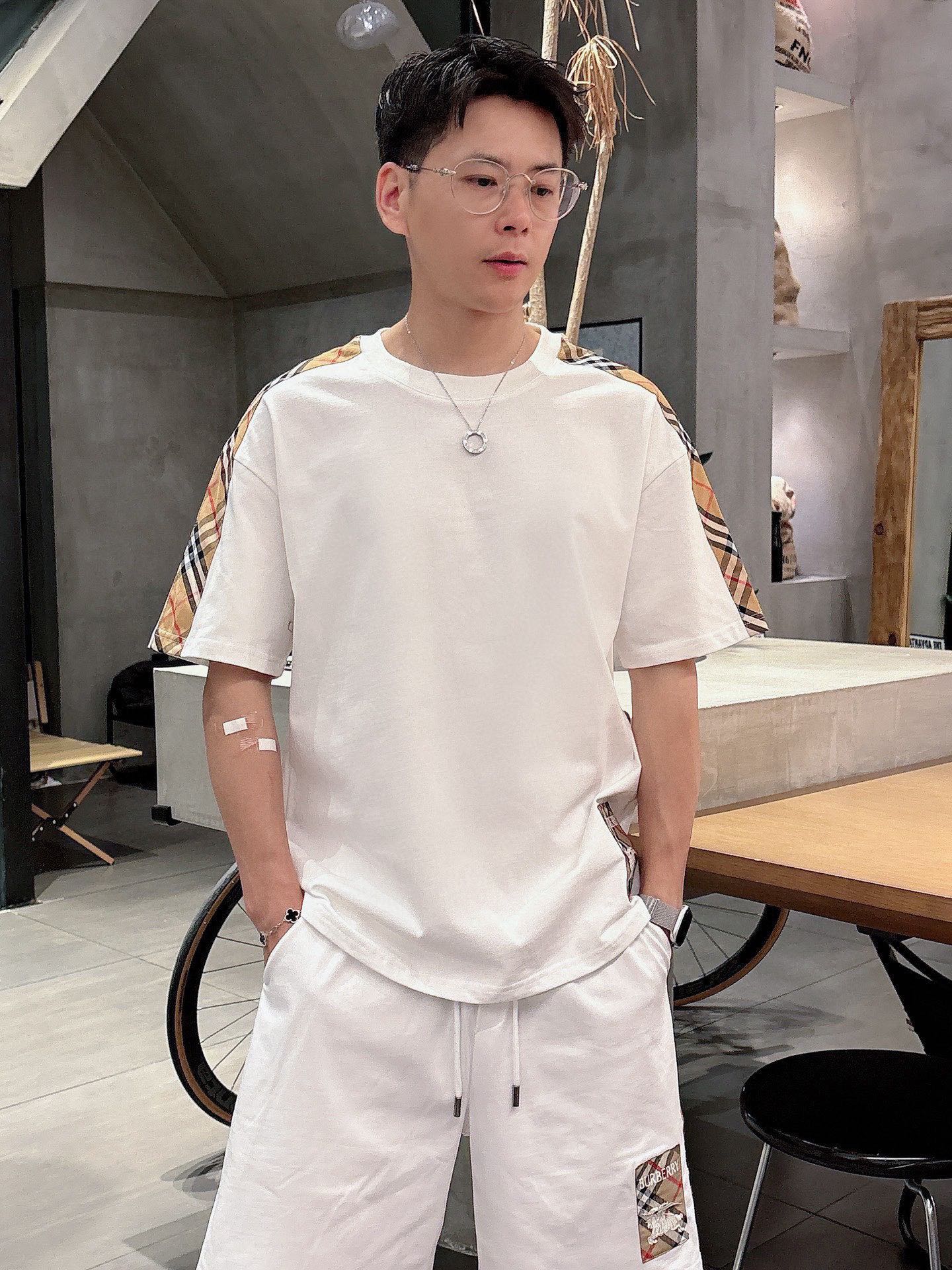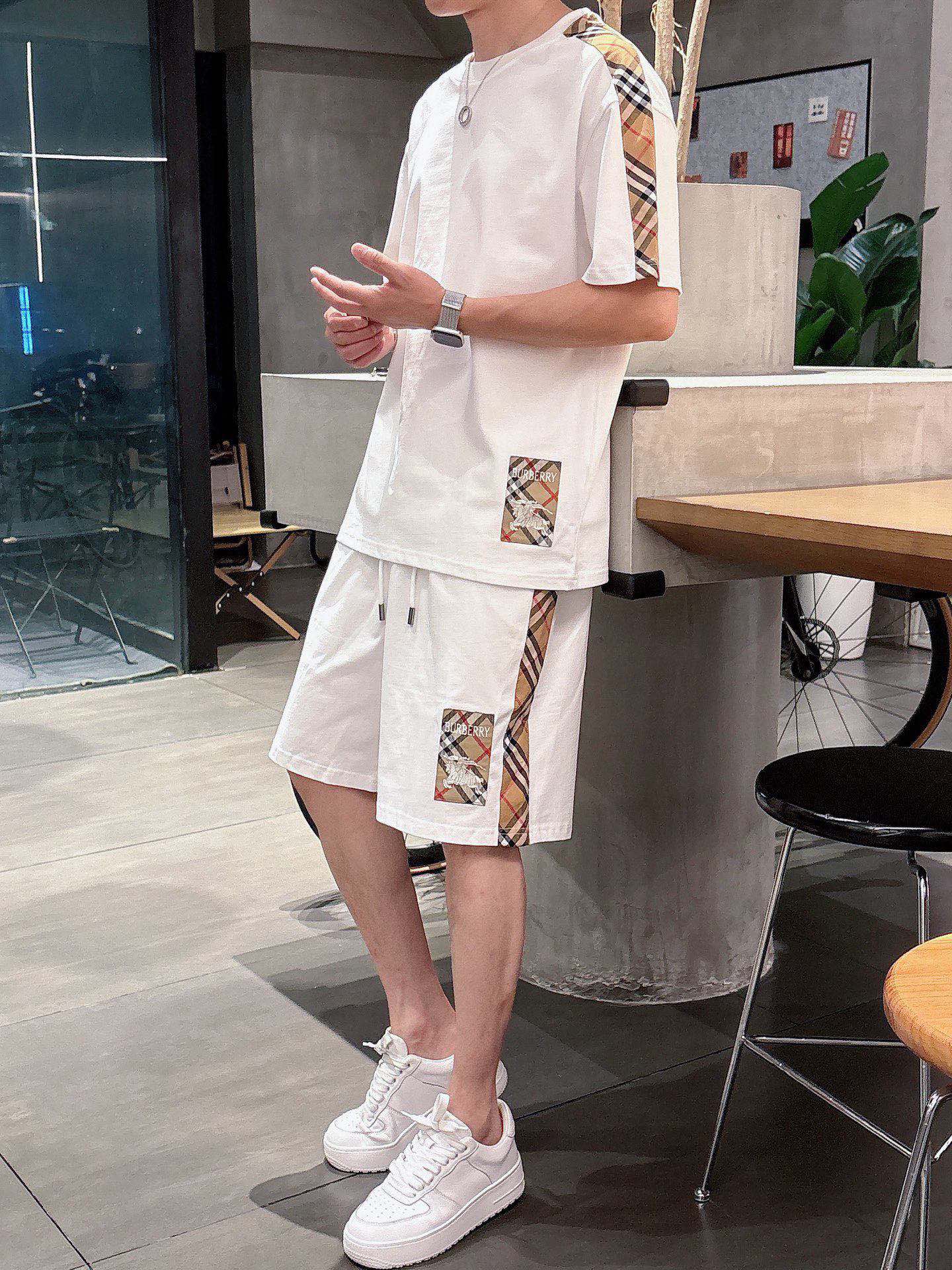 BURBERRY 2025 short sleeve round neck shorts set. Cotton fabric, breathable and comfortable. Classic logo, stylish design. Sizes: M-3XL.