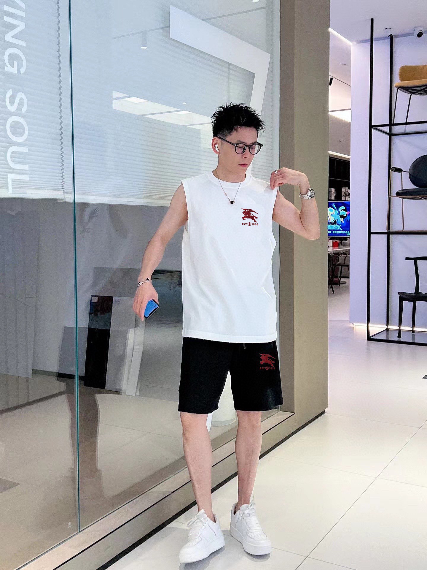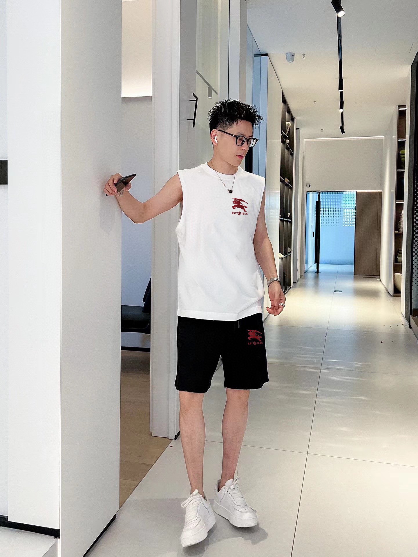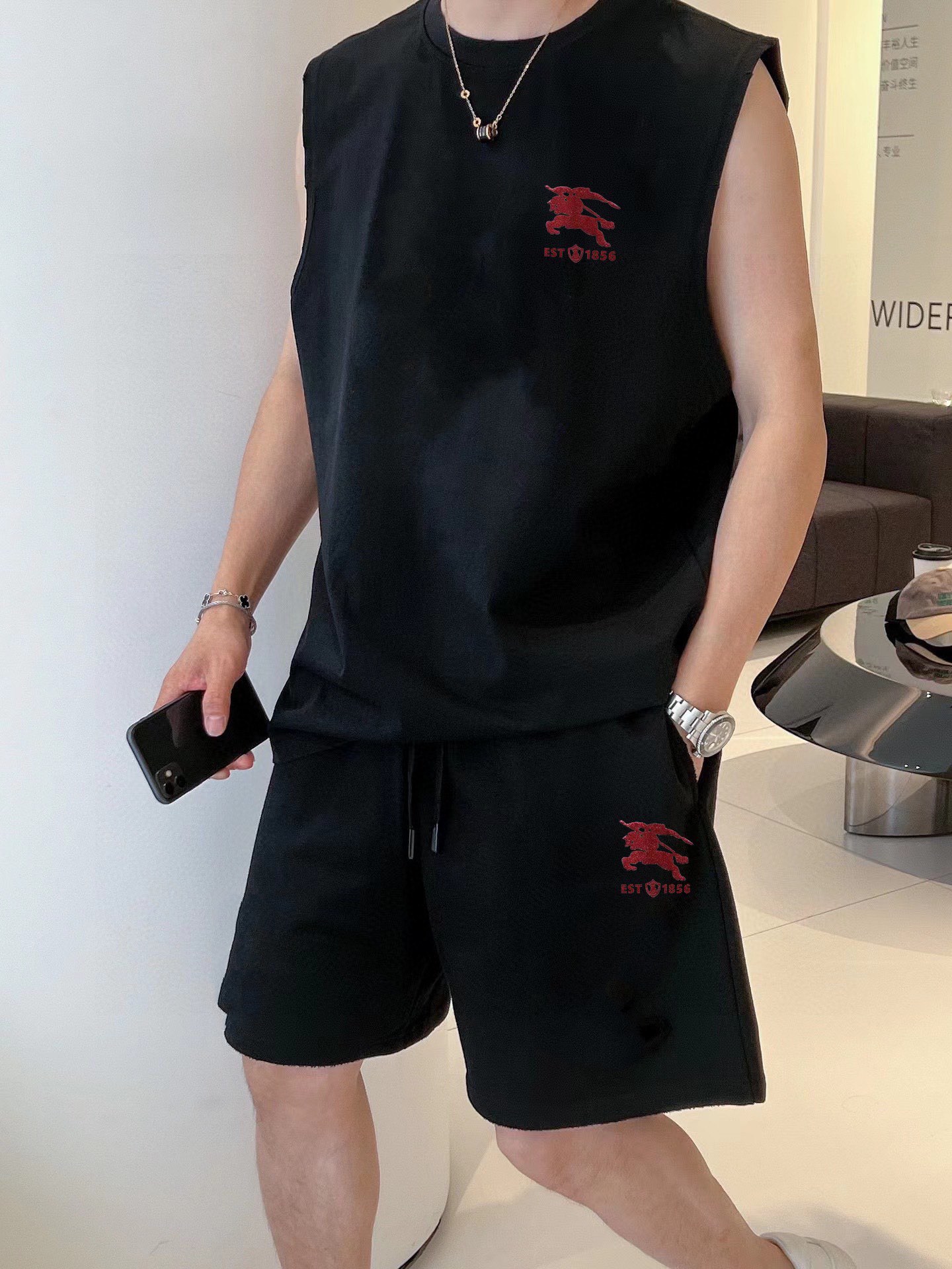 BURBERRY 2025 spring/summer vest set. Classic minimalist design, customizable mercerized cotton fabric, breathable and comfortable. Features iconic logo, luxury craftsmanship. Sizes M-3XL.