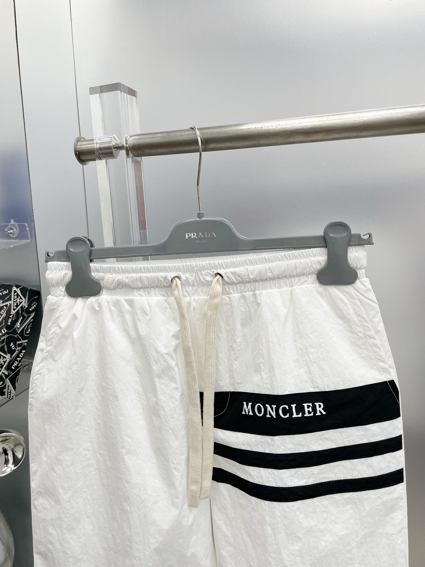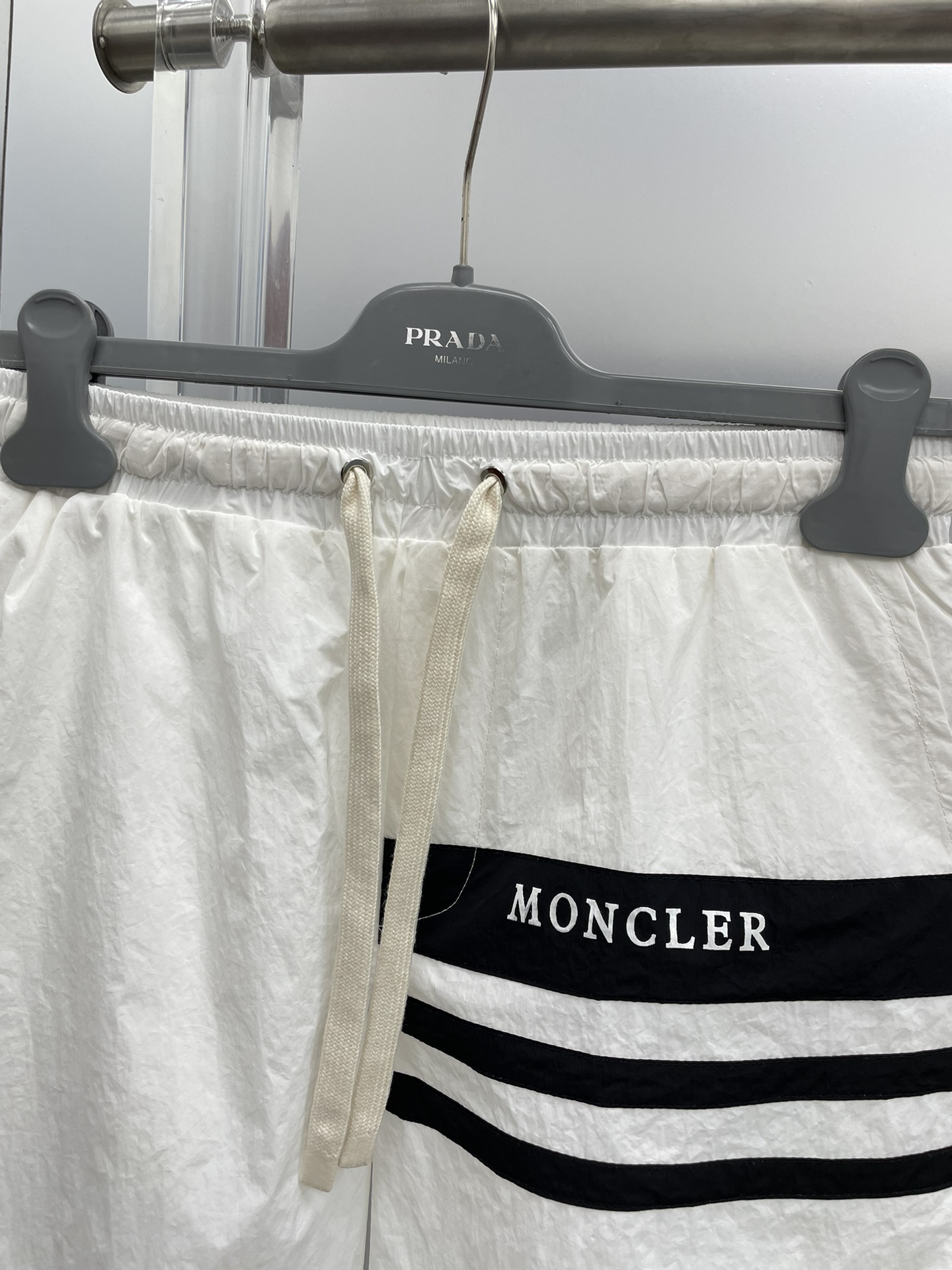 Moncler 2025 summer black and white logo print sunscreen set. Imported lightweight nylon, 3D print, comfortable. Sizes M-XXXL. Stylish and versatile for all seasons.