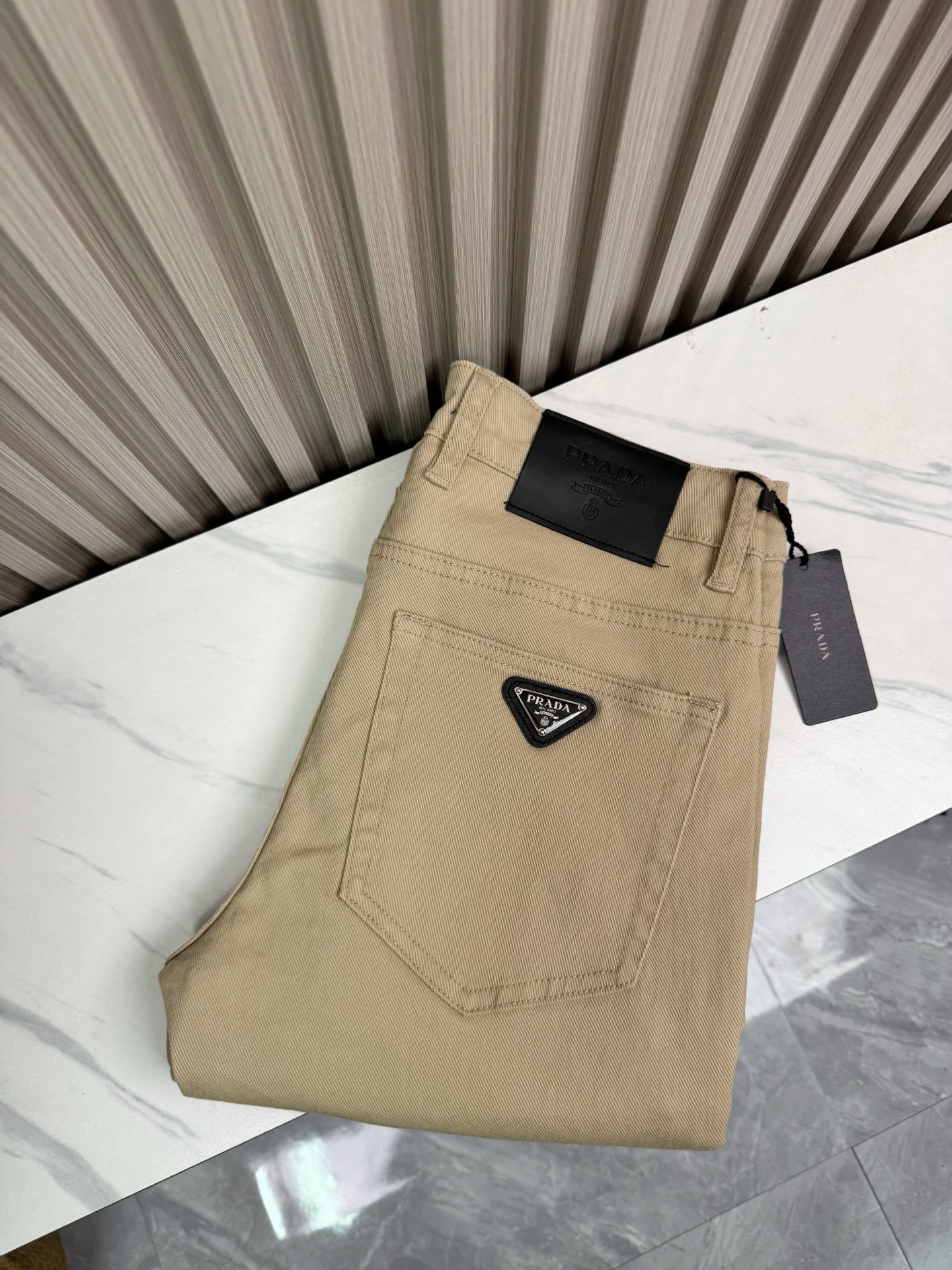Classic Prada jeans, loose straight-leg stretch pants. Heavy wash process, comfortable and breathable soft fabric. Fashionable must-have item. Sizes 29-40 available.