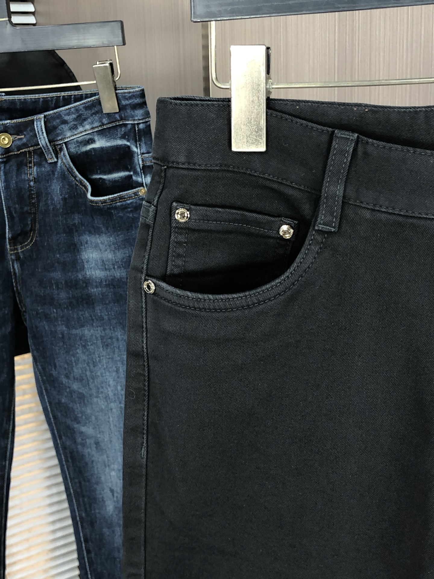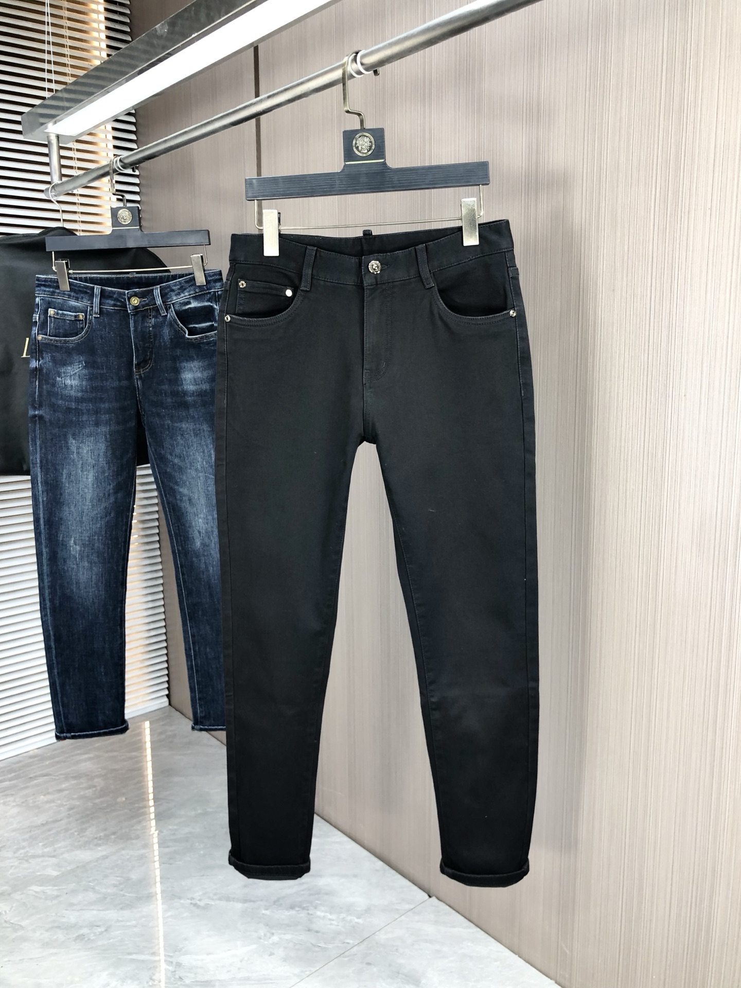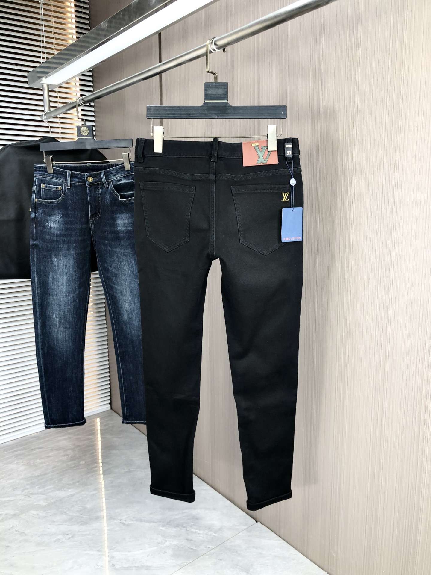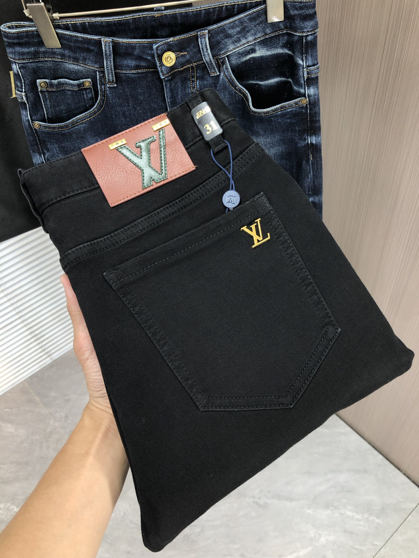 LV Thin Denim Jeans. 2025 latest style. 98% cotton, 2% spandex. Solid, slightly stretchy, comfortable. Simple design, hidden zipper, embossed pockets. Excellent fit.