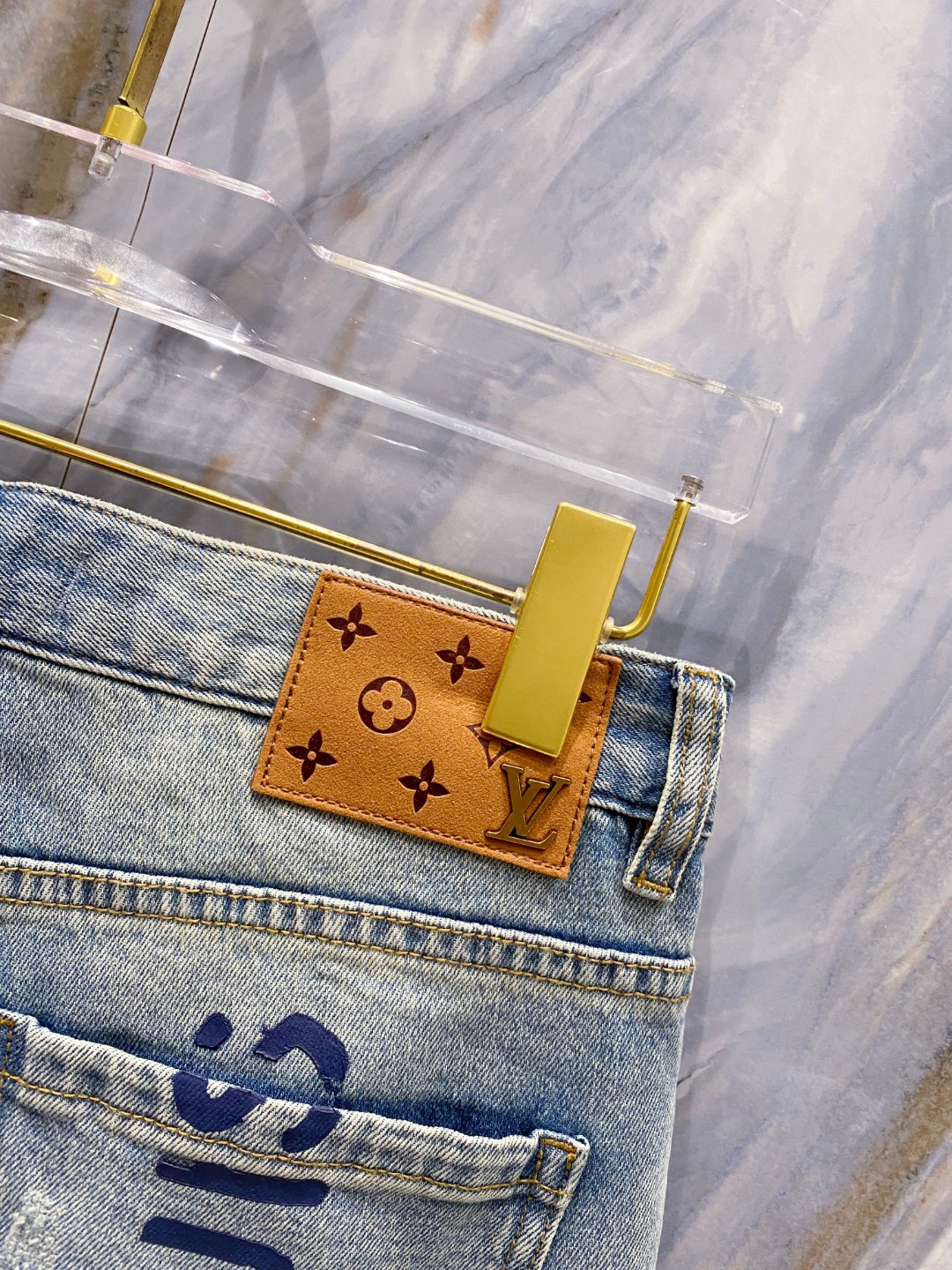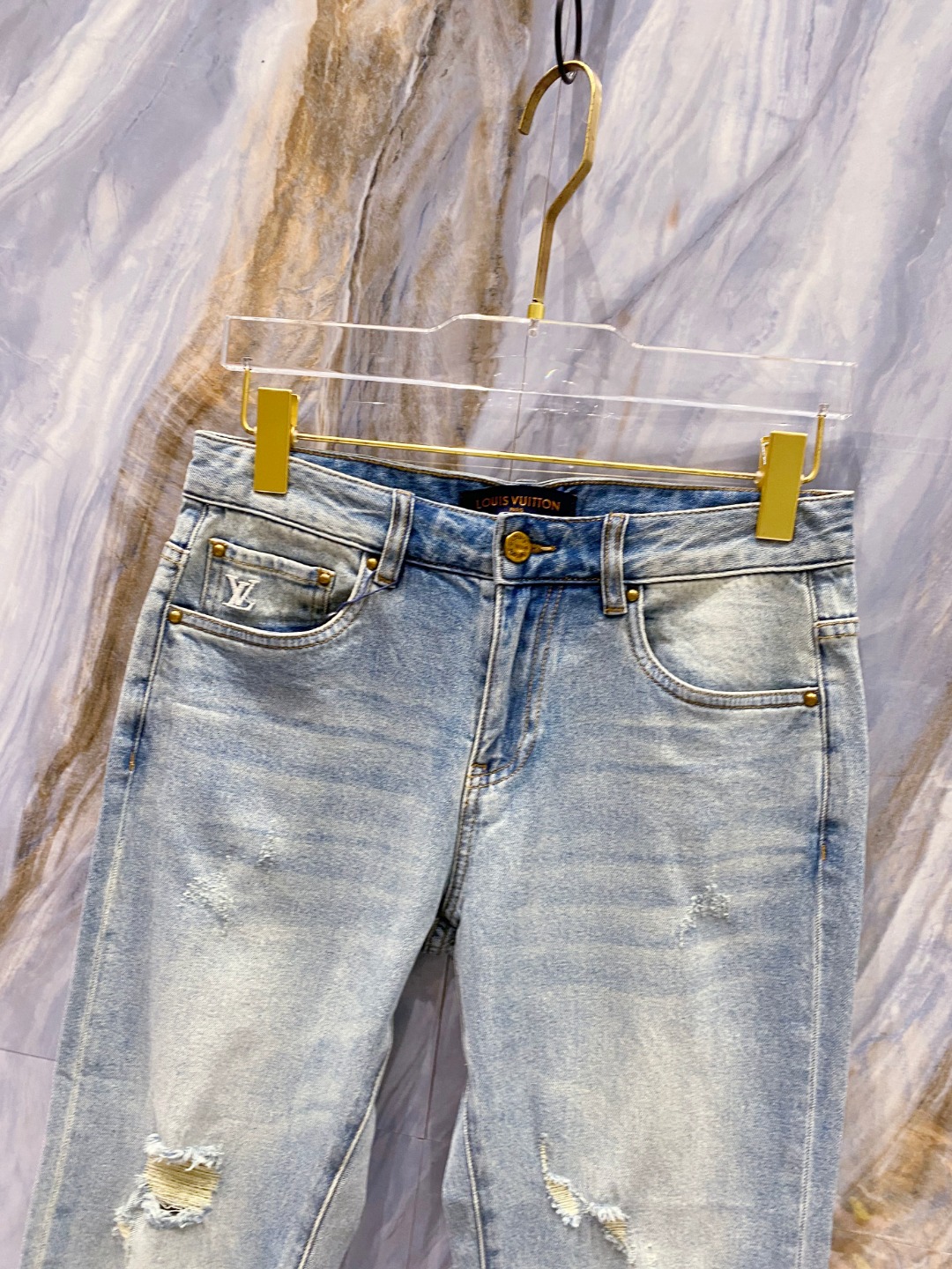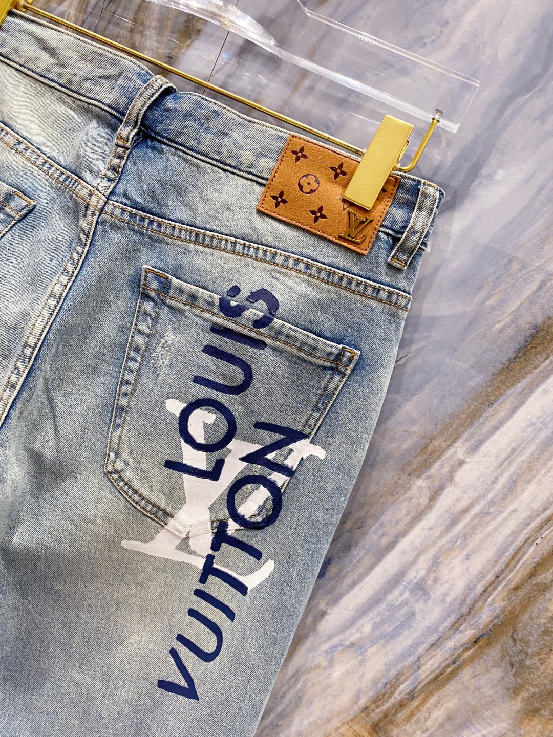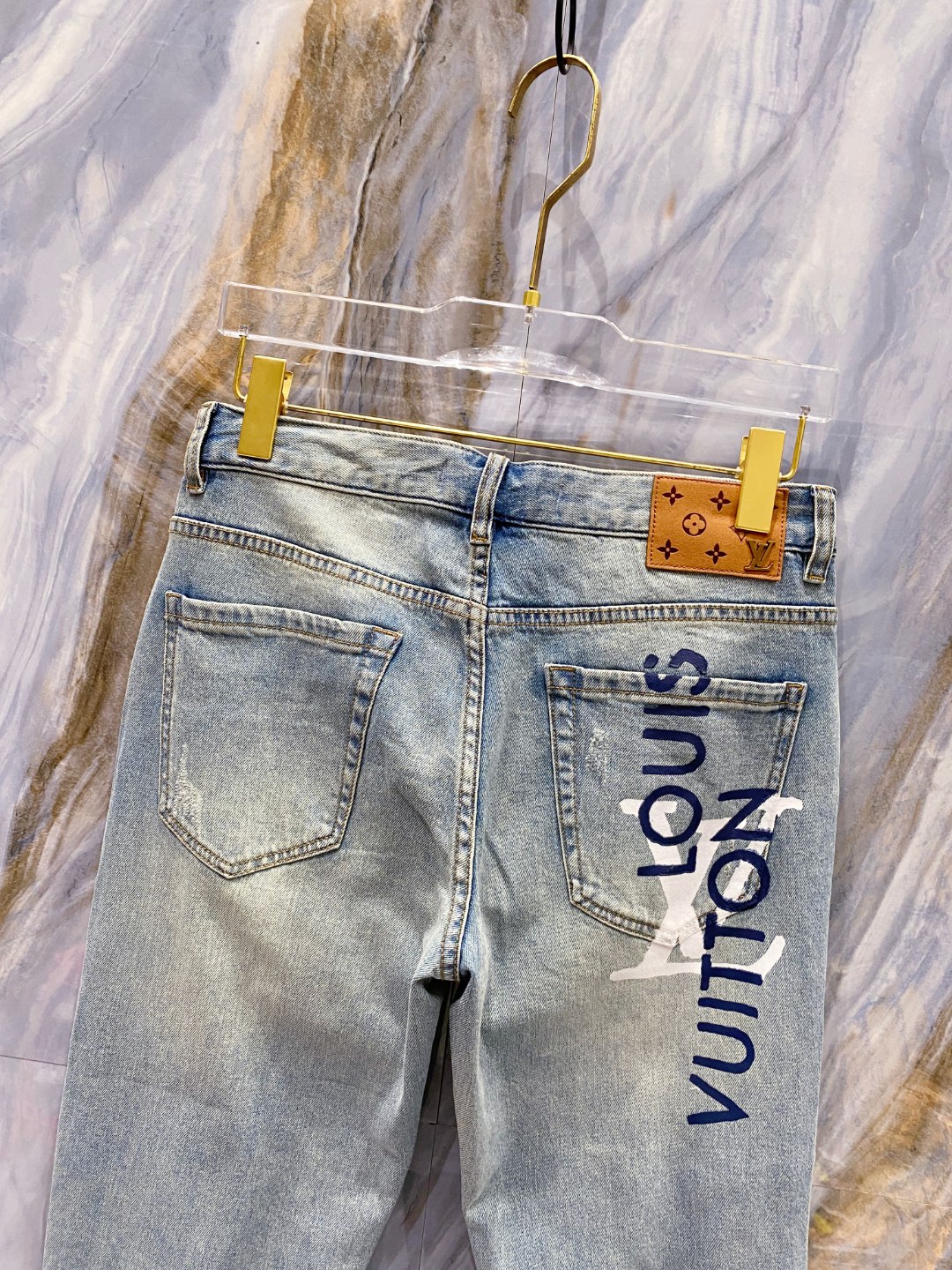 LV 2025 Fall/Winter new men's jeans. Heavy wash denim, custom fabric, soft & comfortable. Top-notch craftsmanship, breathable, premium hardware. Sizes 29-38.