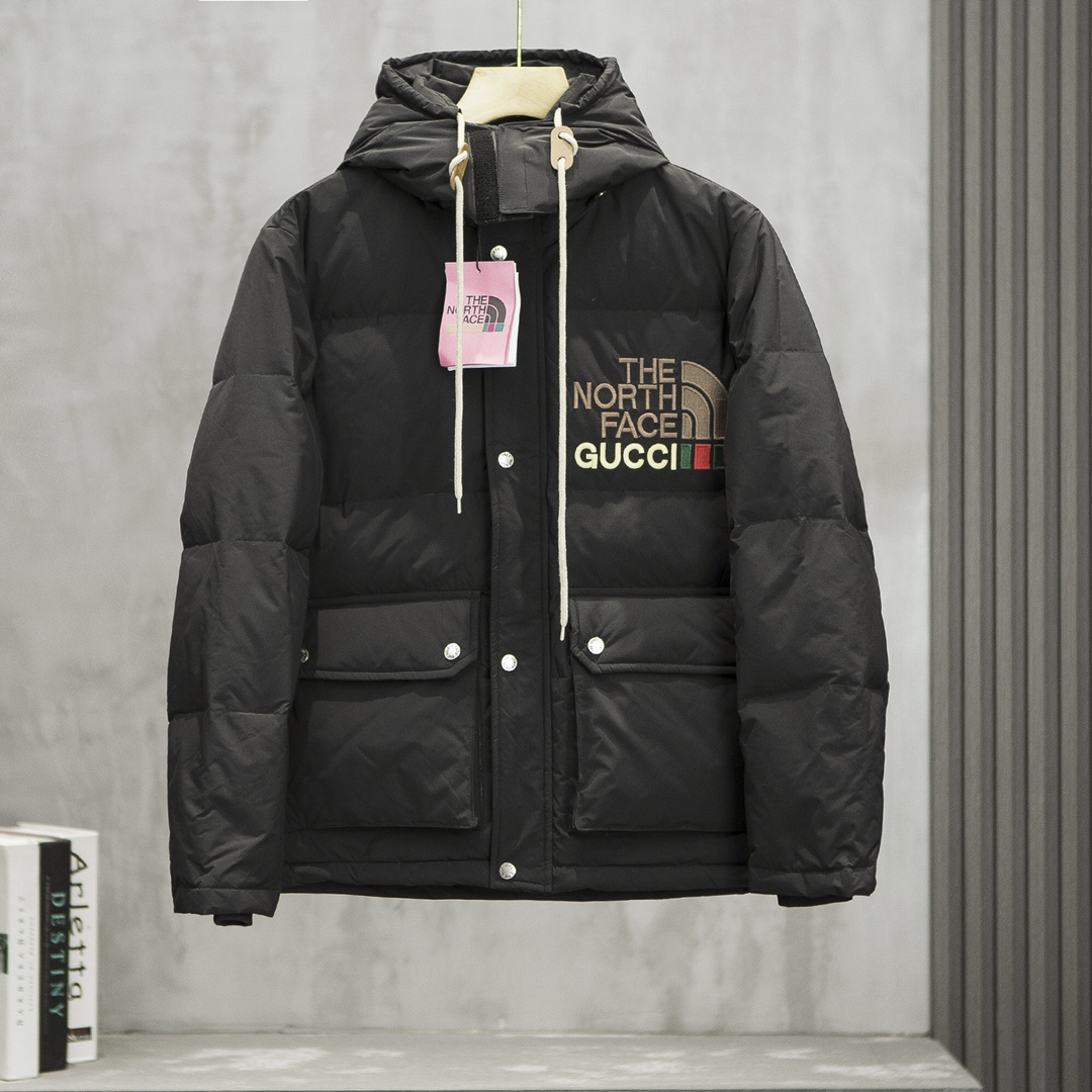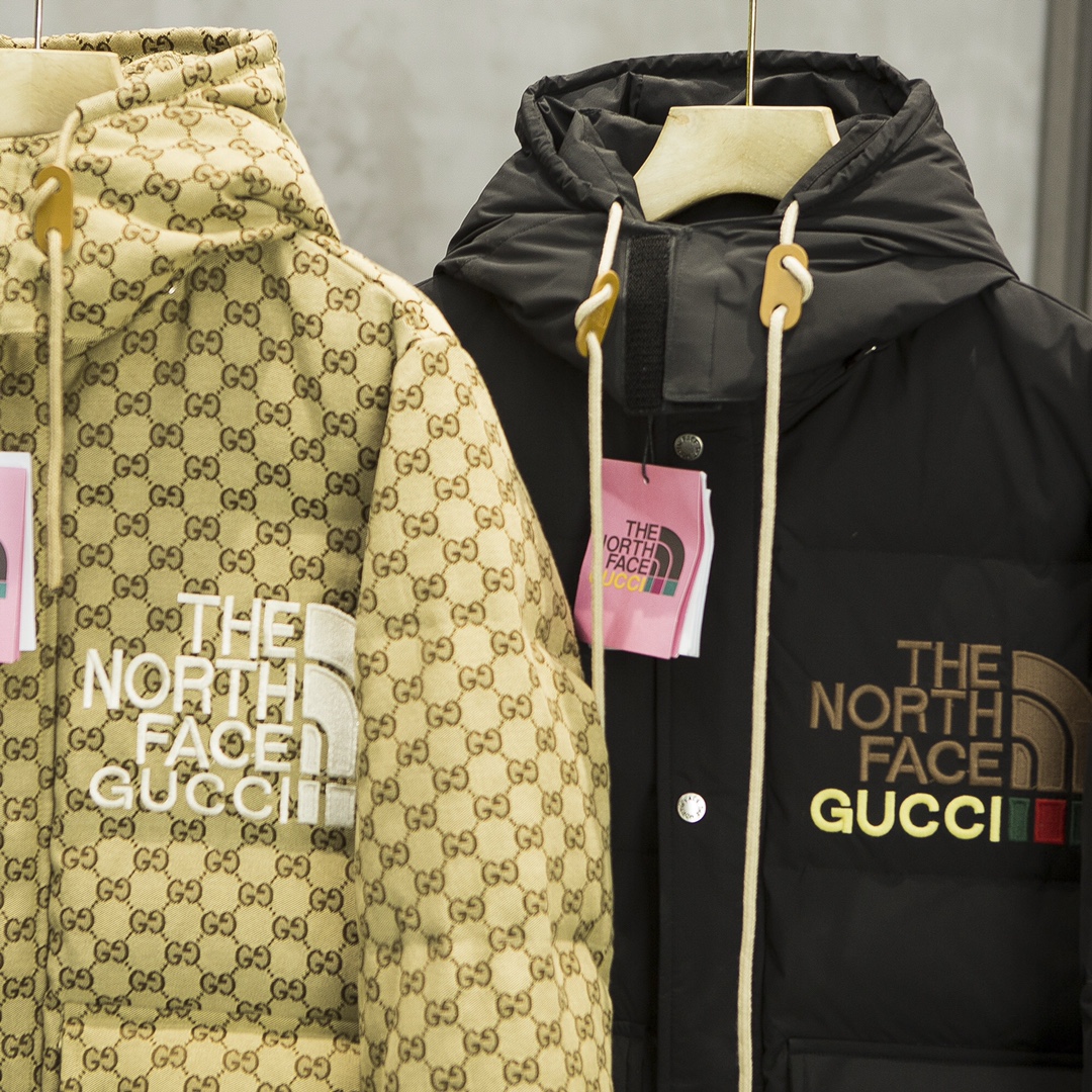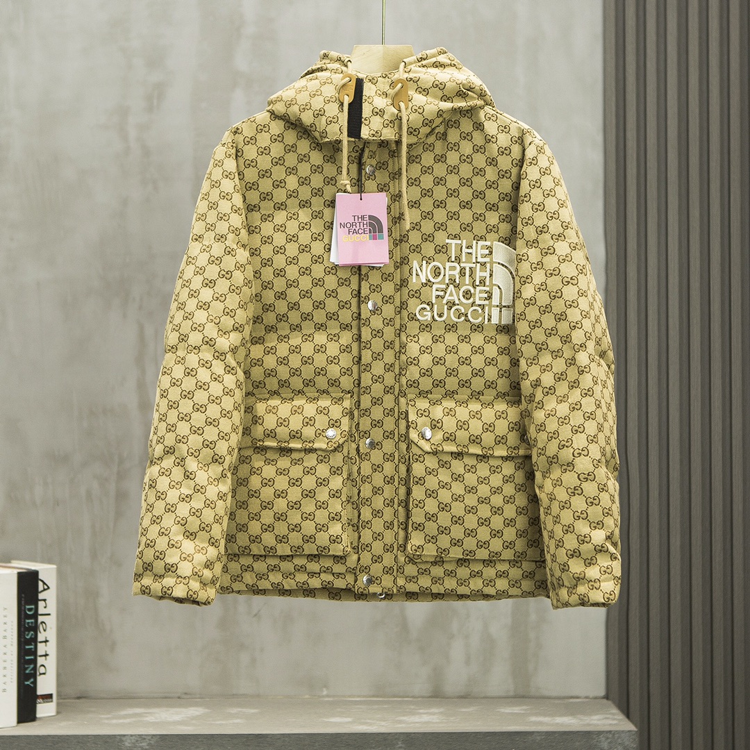 Thickened Version TNF/The North Face x Gucci Collaboration Store Hot Selling Winter Men's and Women's Couple Down Jacket! This style is extremely popular, with store supplies unable to meet demand! Unisex couple style! Fully printed fashionable design! A collaboration style between The North Face and GUCCI, a co-branded edition! Globally limited edition! Requires queuing for reservations in stores, it's that hot! Trendy and fashionable design and color scheme ~ a style that turns heads everywhere. THE NORTH FACE x GUCCI co-branded couple down jacket ~ can be worn by both men and women ~ highly recommended! This down jacket uses 90% down, with a fill power of 800+. The outer fabric is durable nylon, soft and comfortable to the touch, providing high-efficiency warmth. Additionally, this down jacket adopts a less common three-layer down-proof construction, which further enhances the thermal insulation! The fabric is treated with water repellency for moisture resistance. The North Face logo on the chest uses engraved printing, a truly rare craftsmanship! Reinforced processing is applied to high-friction and easily damaged areas, exuding a full sense of luxury, making you love it! Lightweight and durable fabric with water-repellent treatment can block wind and snow in harsh winters, achieving better warmth retention.