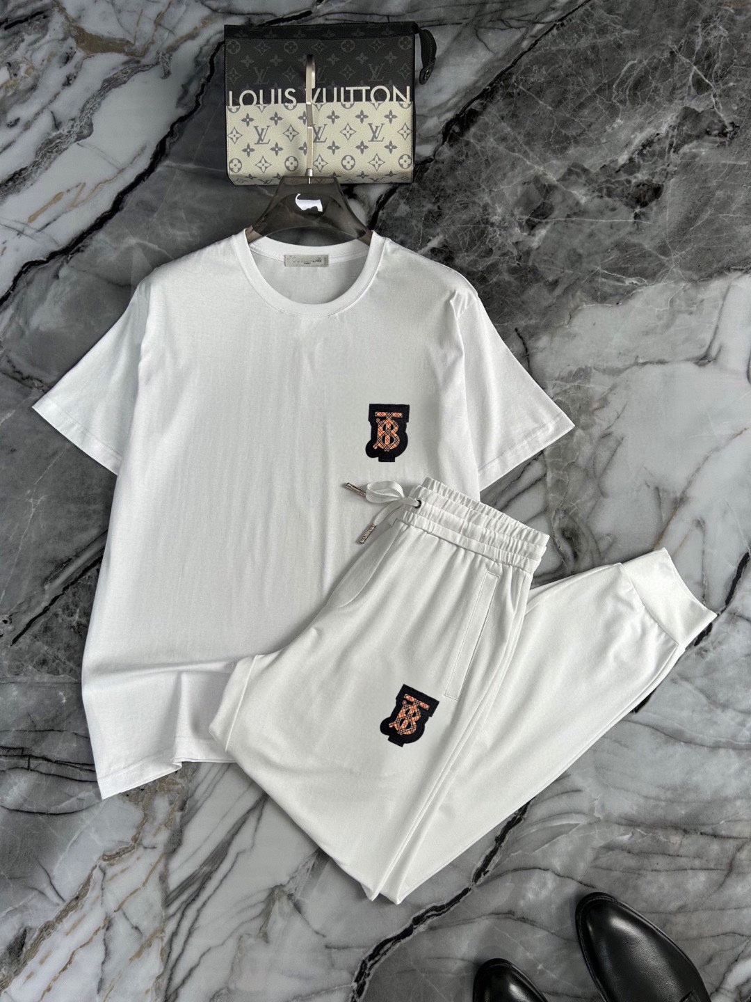 BURBERRY men's summer silk high-quality set. Imported fabric, trendy, versatile. Sizes M-5XL (up to 220斤).