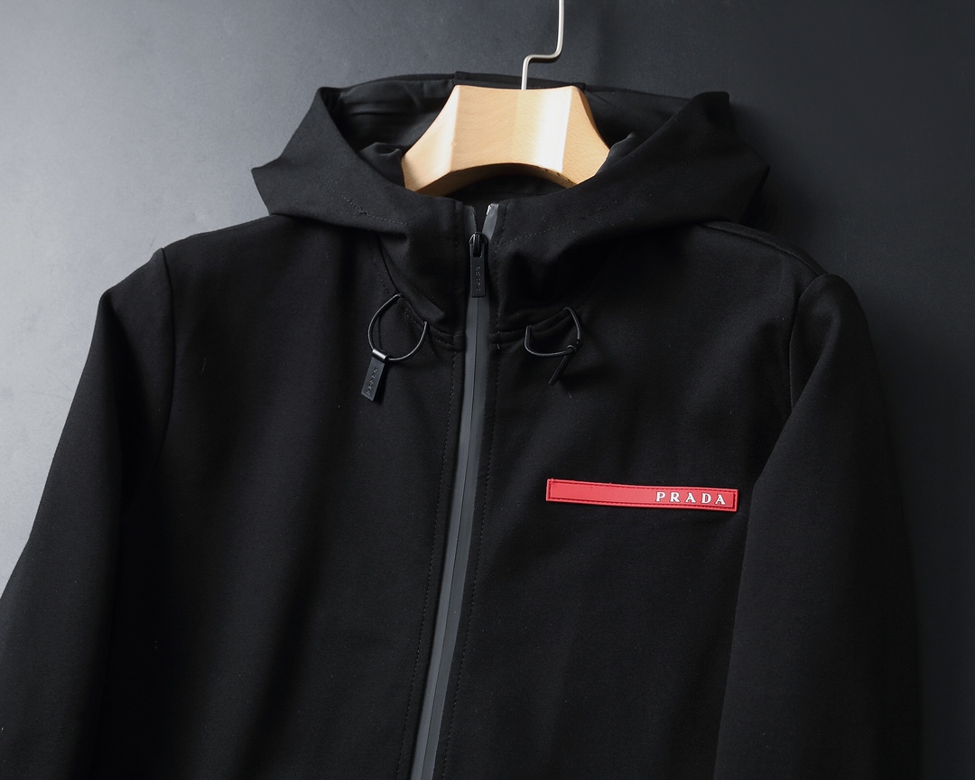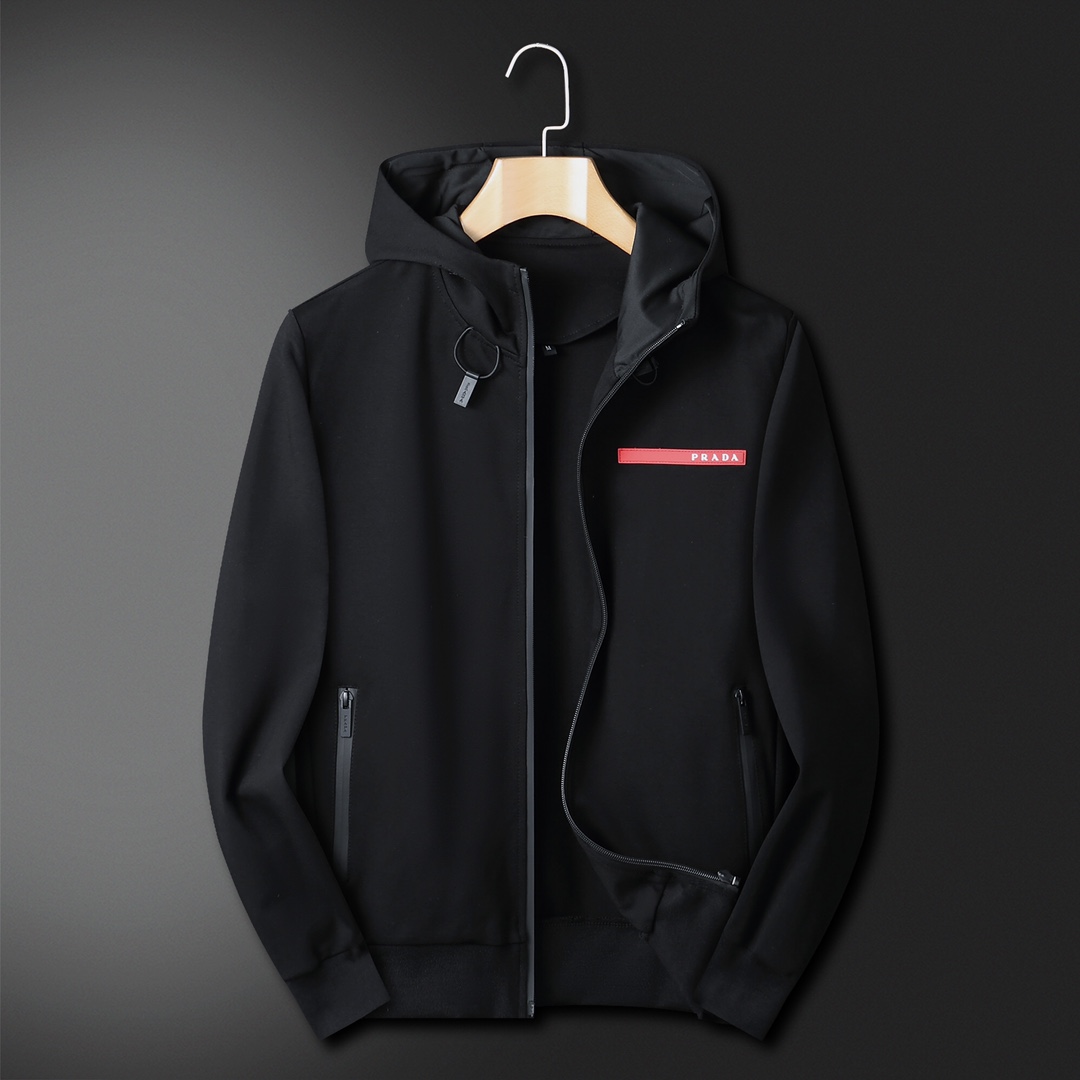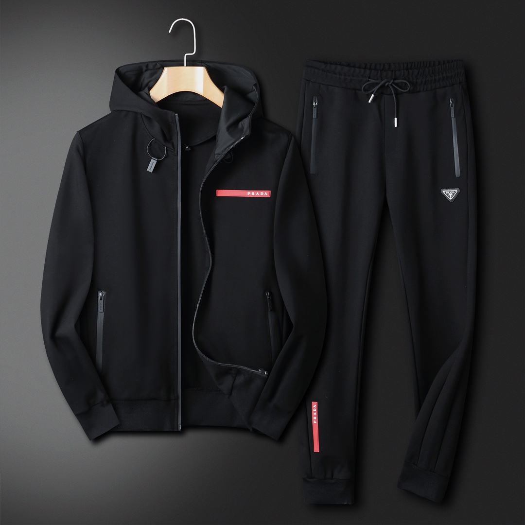 Prada hoodie set in sizes M-4XL. Made from premium cotton with anti-static and anti-pilling features. Excellent craftsmanship, sleek design, and comfortable fit.