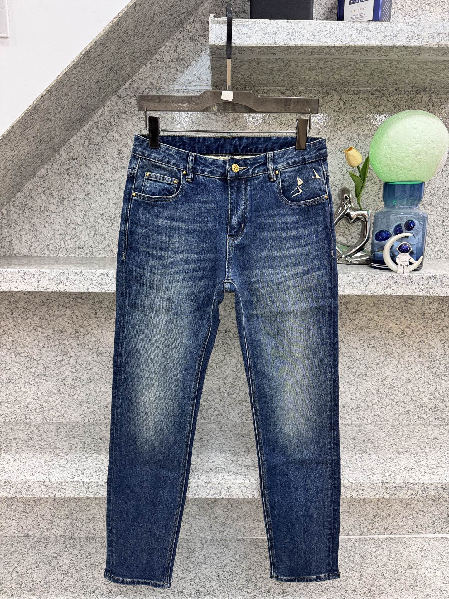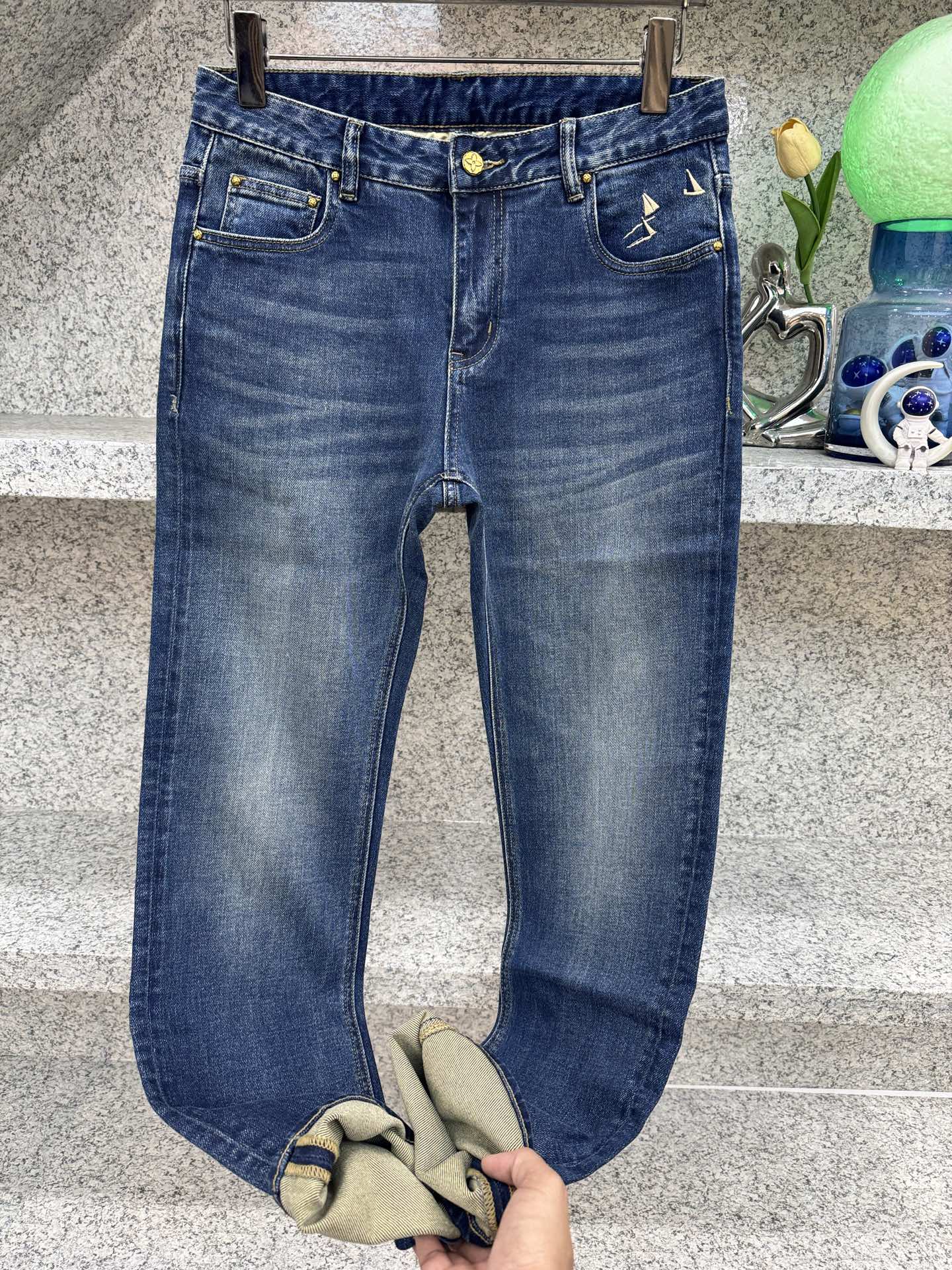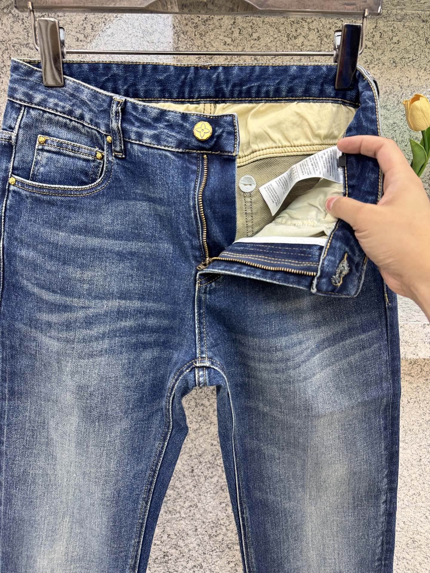 Home • Apparel • Jeans • LV brand new autumn-winter design jeans. Soft, skin-friendly fabric with top grain leather waist tag. Classic blue wash, limited edition. Stretchy slim straight cut, sizes 29-38.
