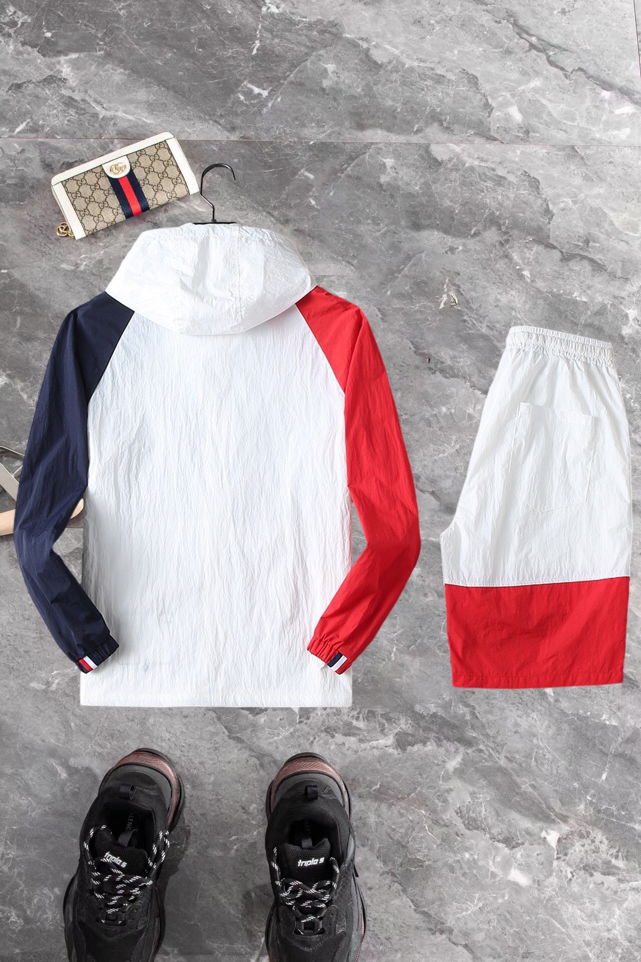 Moncler 2025 SS windbreaker & shorts set. Original labels, custom hardware. High-quality fabric, celebrity style. Comfortable, versatile. Colors: as shown. Sizes: M-3XL.