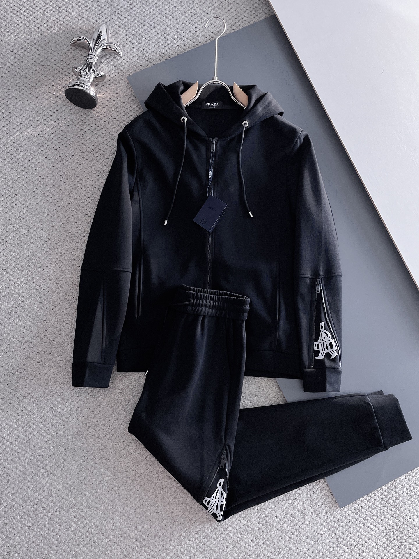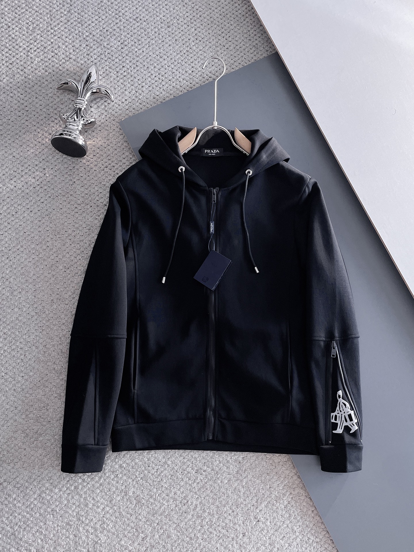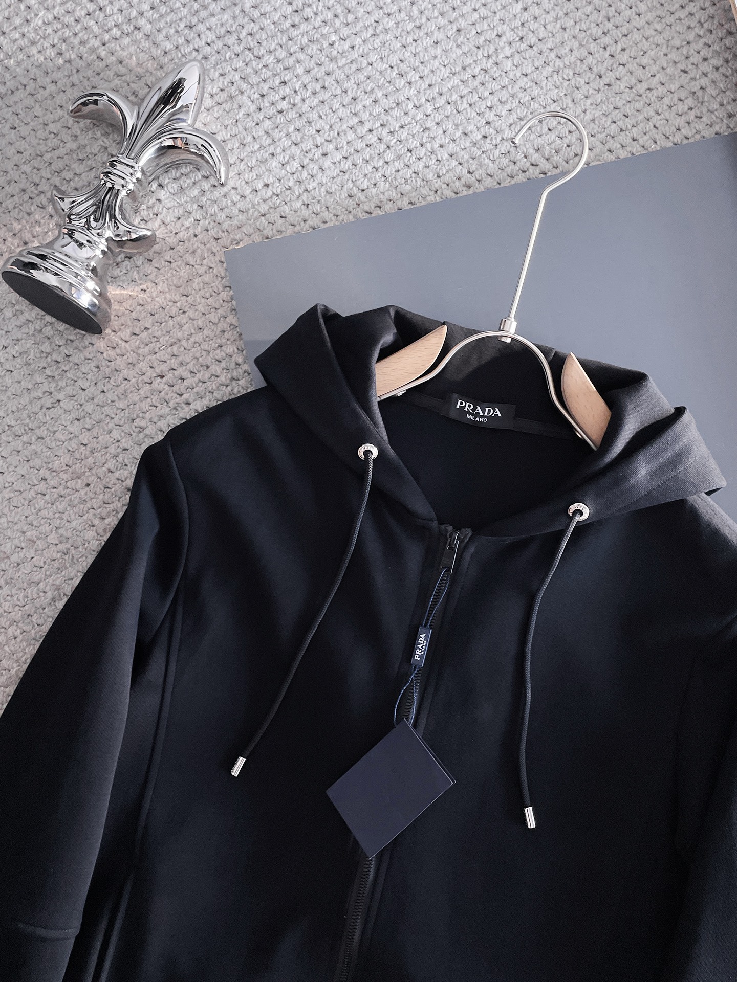 Prada top version! Original quality! Complete labels! 2025 autumn/winter imported, perfect lining, comfortable, fine workmanship, high-end custom fabric, zippered cardigan set. Luxury boutique style. Sizes M-XXXL.