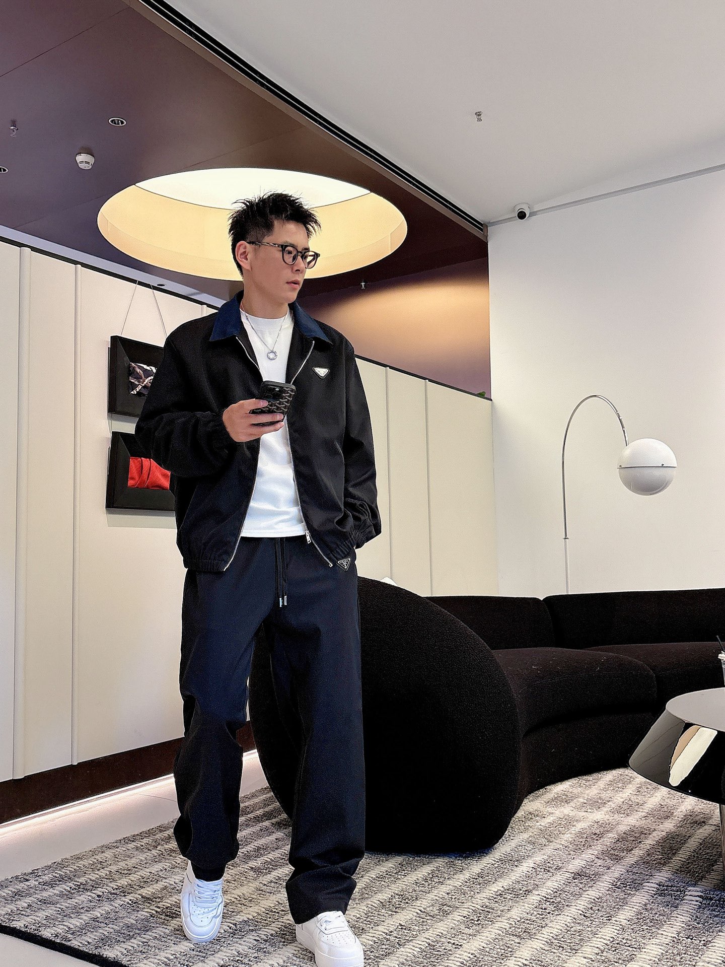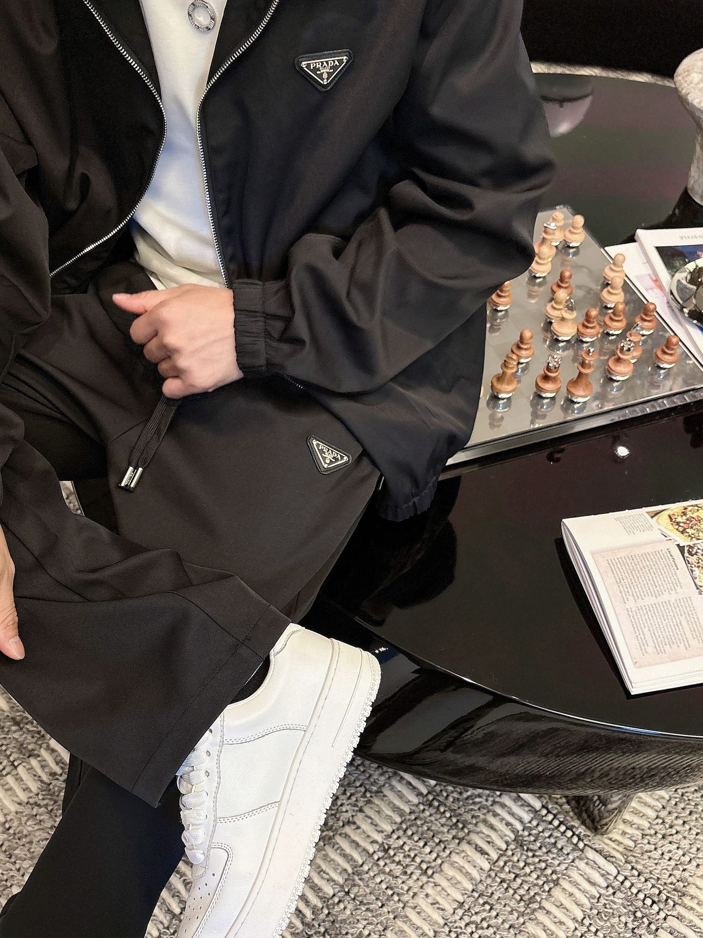 Prada casual suit. 2025 autumn/winter imported high-end拼接suit, custom hardware, multi-zipper/pocket design. M-3XL sizes.