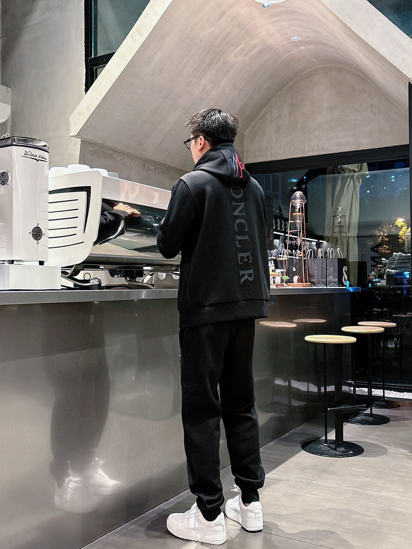 Moncler 2025 early autumn casual set. New black designer suit with classic logo, tailored fit. Sizes M to XXXL. Urban style, premium fabric.