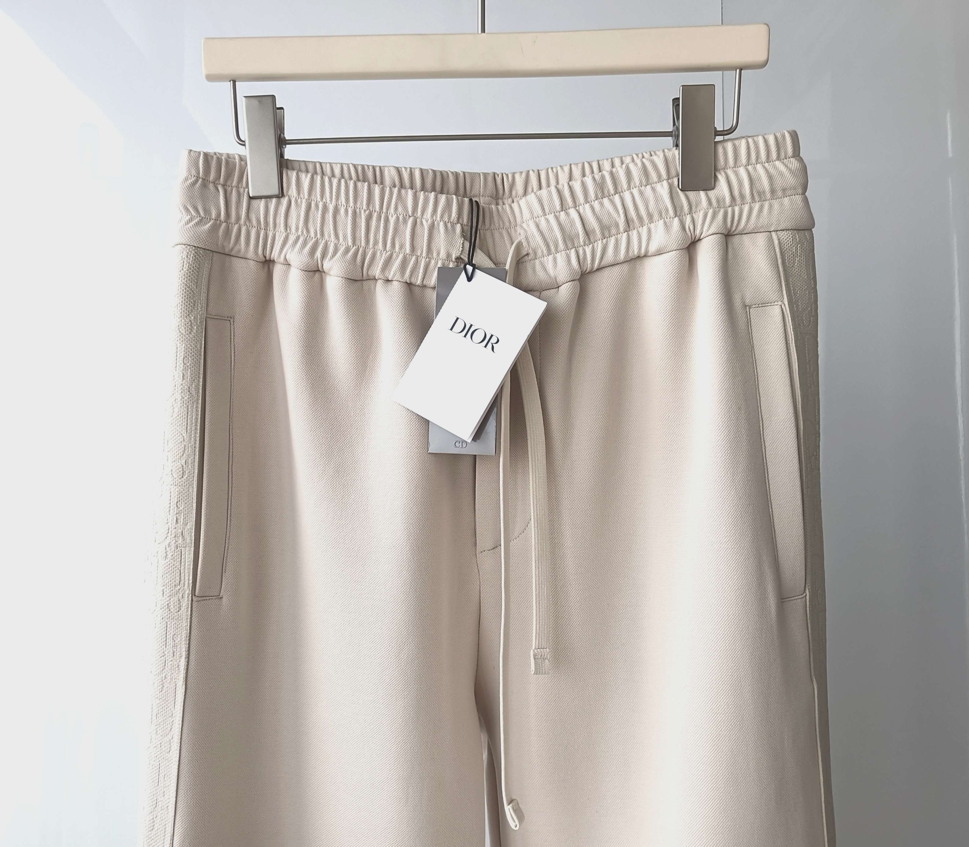 CD Dior new sports casual set. Zippered stand-collar top with custom logo tape and hardware. Loose fit, versatile beige. Sizes S/M/L/XL.