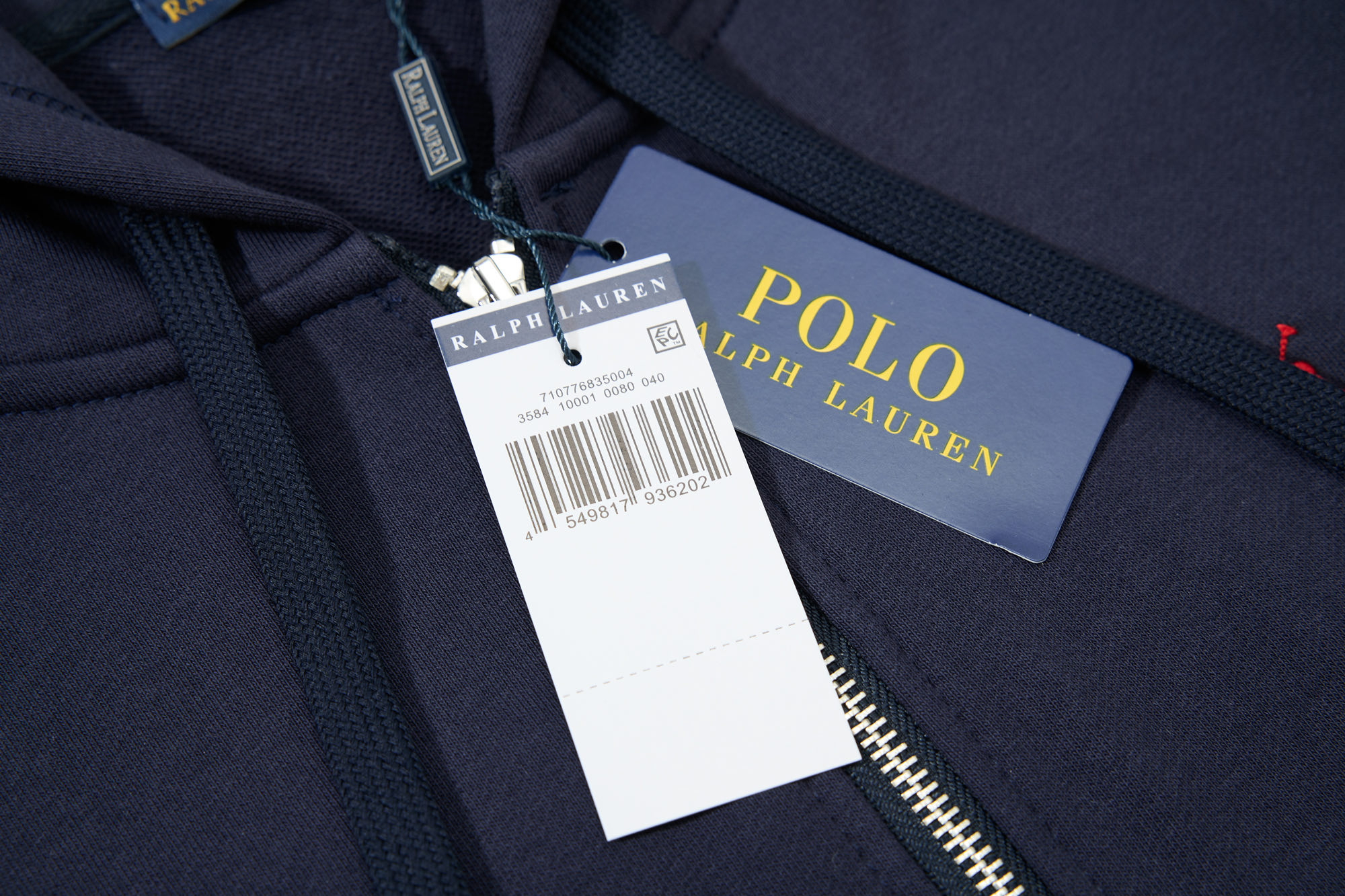 Ralph Lauren embroidered pony hoodie. Features zip-up, minimalist design, soft fabric. Versatile for autumn/winter. Sizes S-XL.