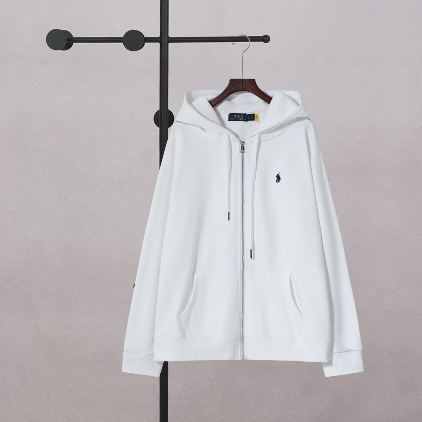 Ralph Lauren embroidered pony zip-up hoodie. White, sizes S-XL. Soft fabric, minimalist design, versatile for autumn/winter.