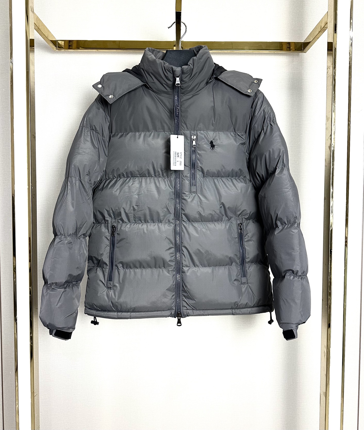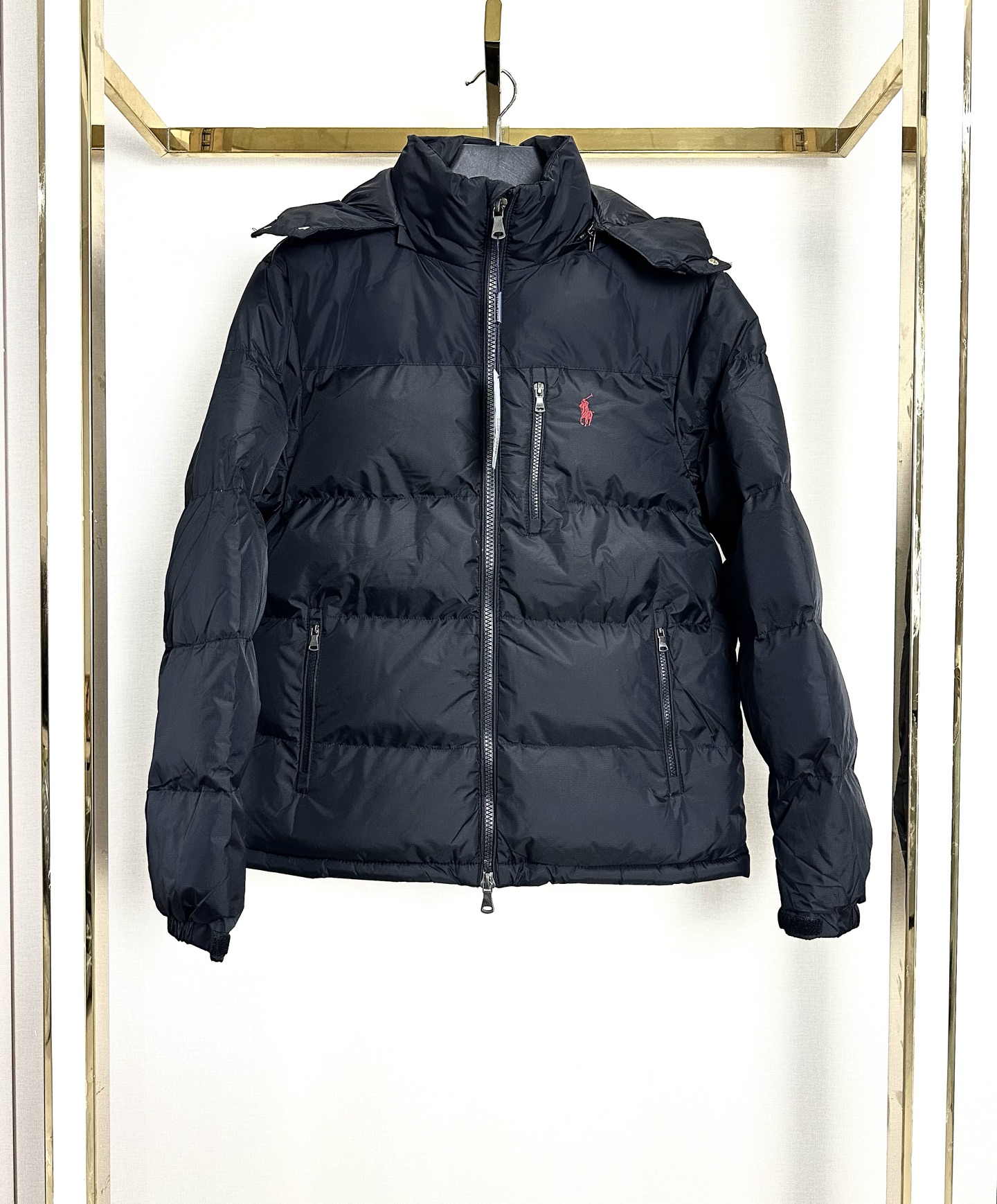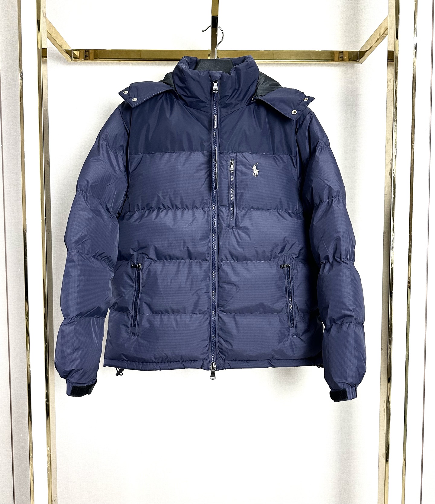 Ralph Lauren vintage color-block hooded zip-up cotton jacket. Colors: black, silver-gray, navy, army green. Sizes: M to 2XL.