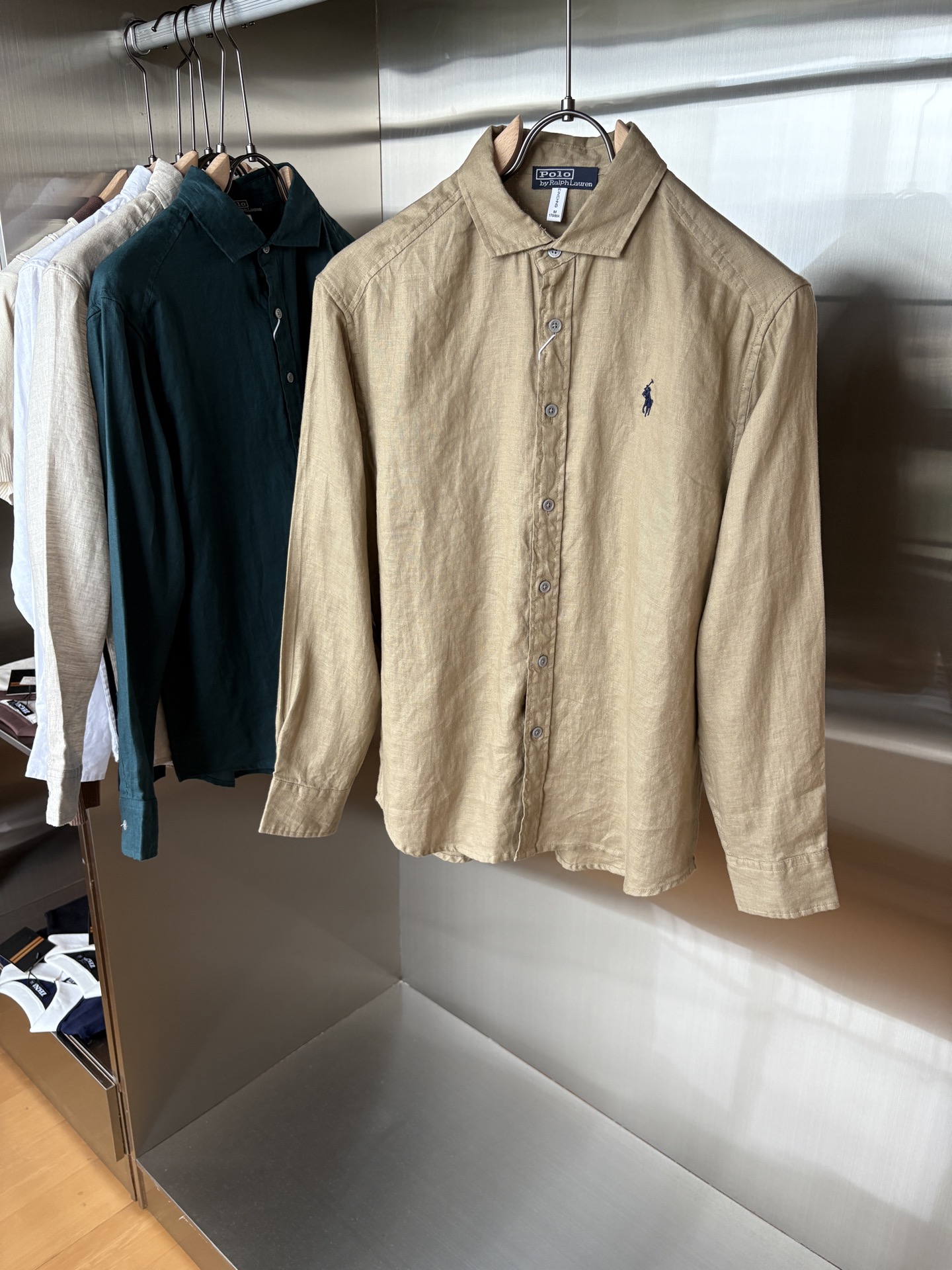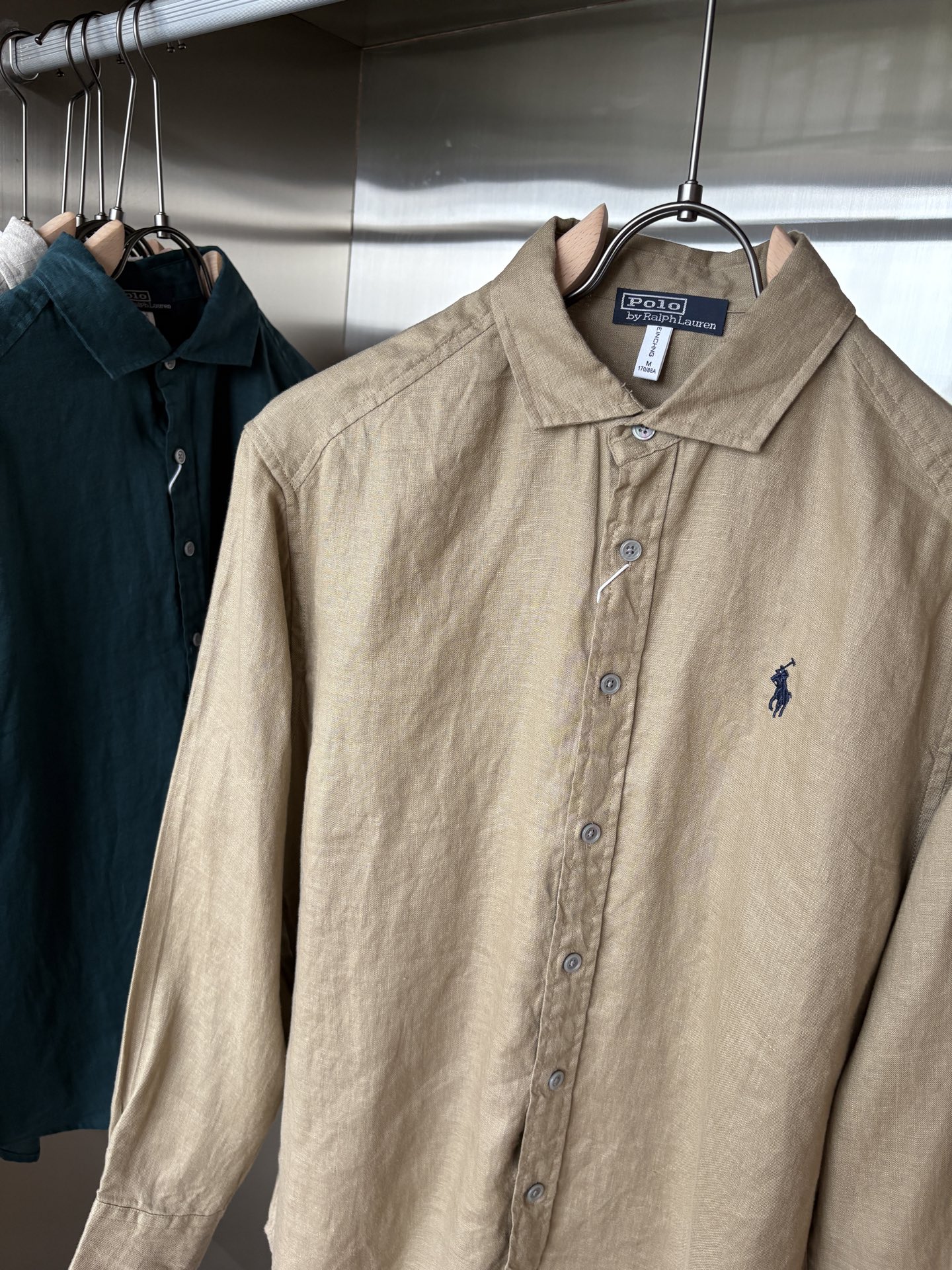 Ralph Lauren 2025 summer linen shirt. Colors: white, natural, khaki, green, blue. Sizes: M-3XL. Comfortable & versatile.