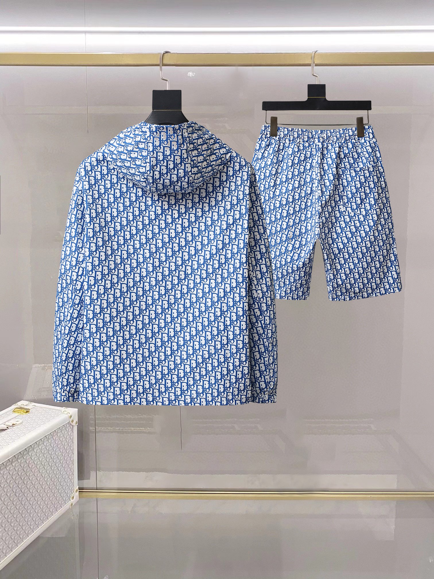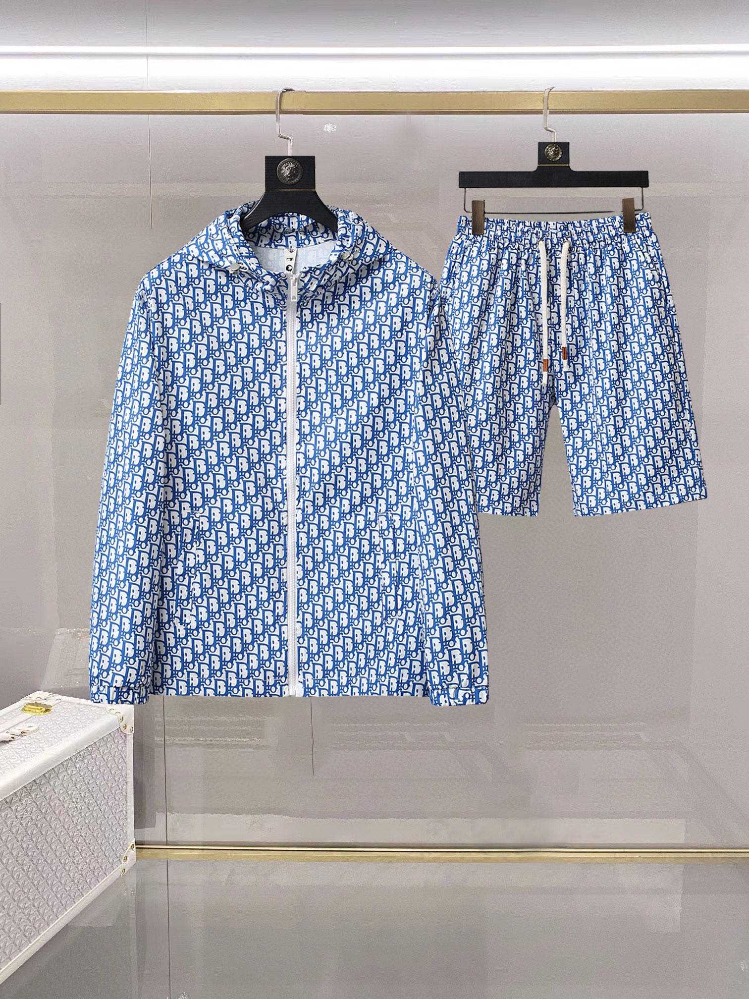 Dior 2025 summer shorts set with sun protection. Lightweight, breathable fabric. Custom high-density material, retains shape after washing. Sizes M-XXXL. Provide height/weight when ordering.