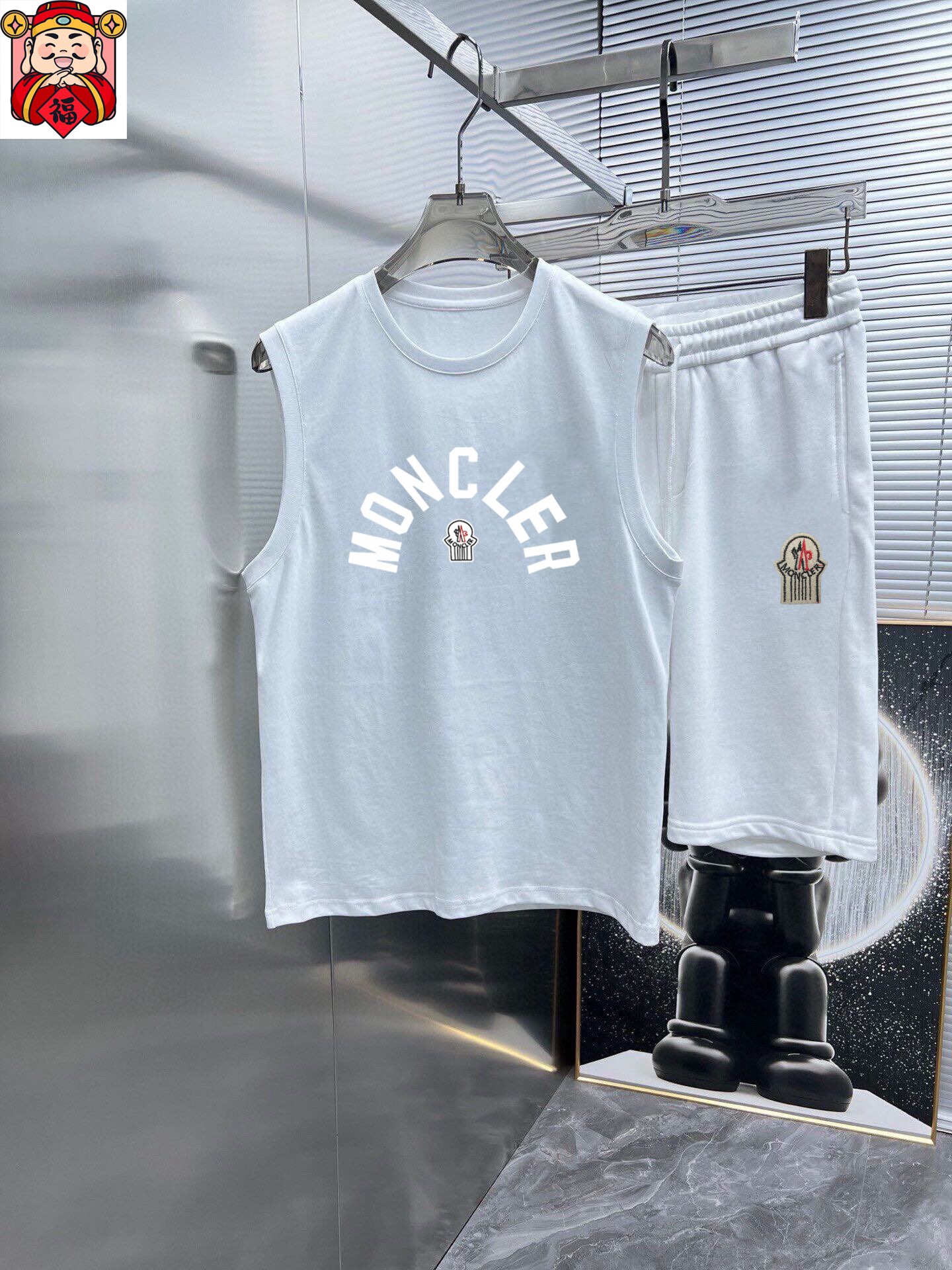 MONCLER 2025 Spring/Summer vest set. Classic minimalist design, customizable mercerized cotton fabric, comfortable and breathable. Features iconic logo, luxurious craftsmanship. Sizes M-3XL.