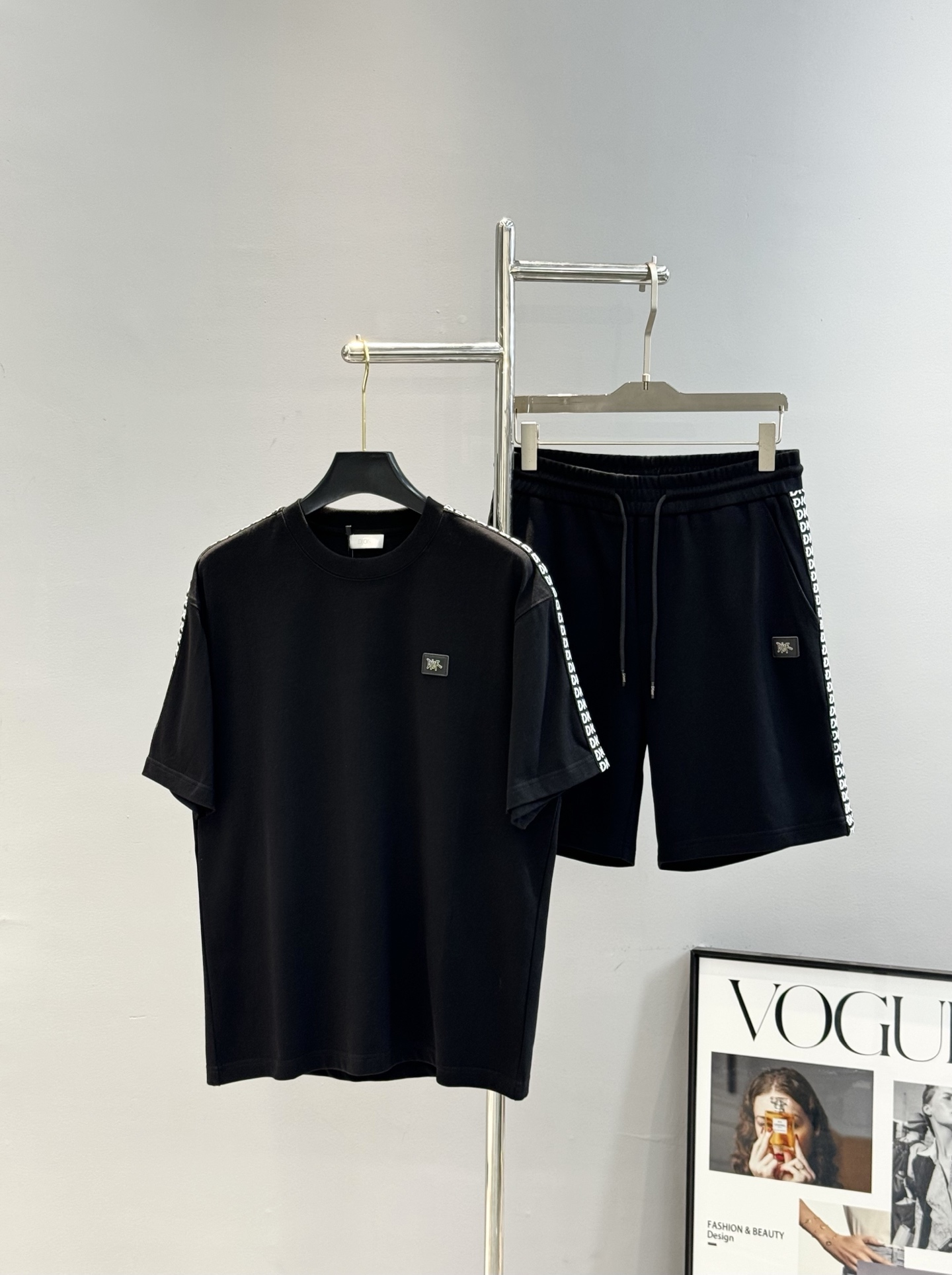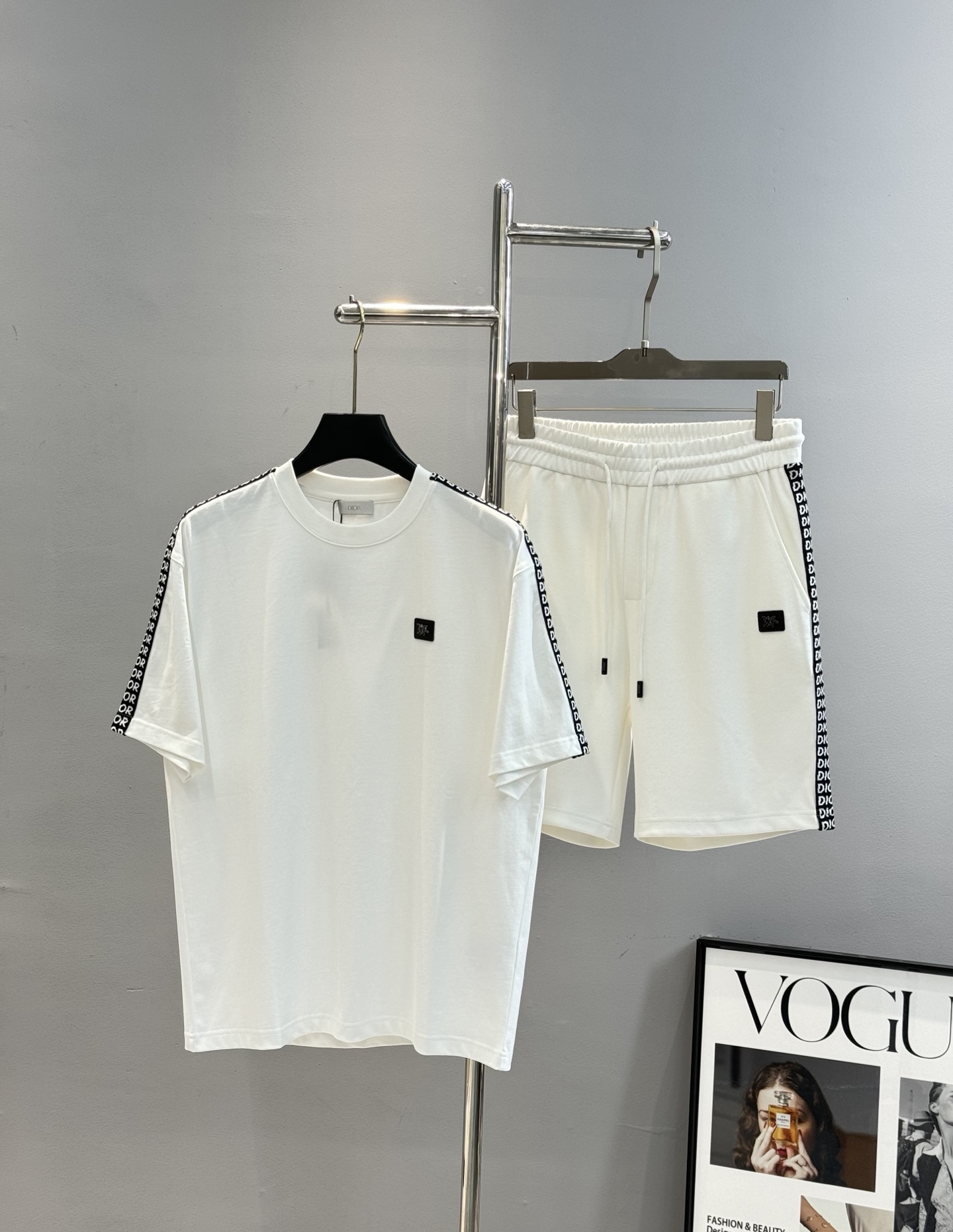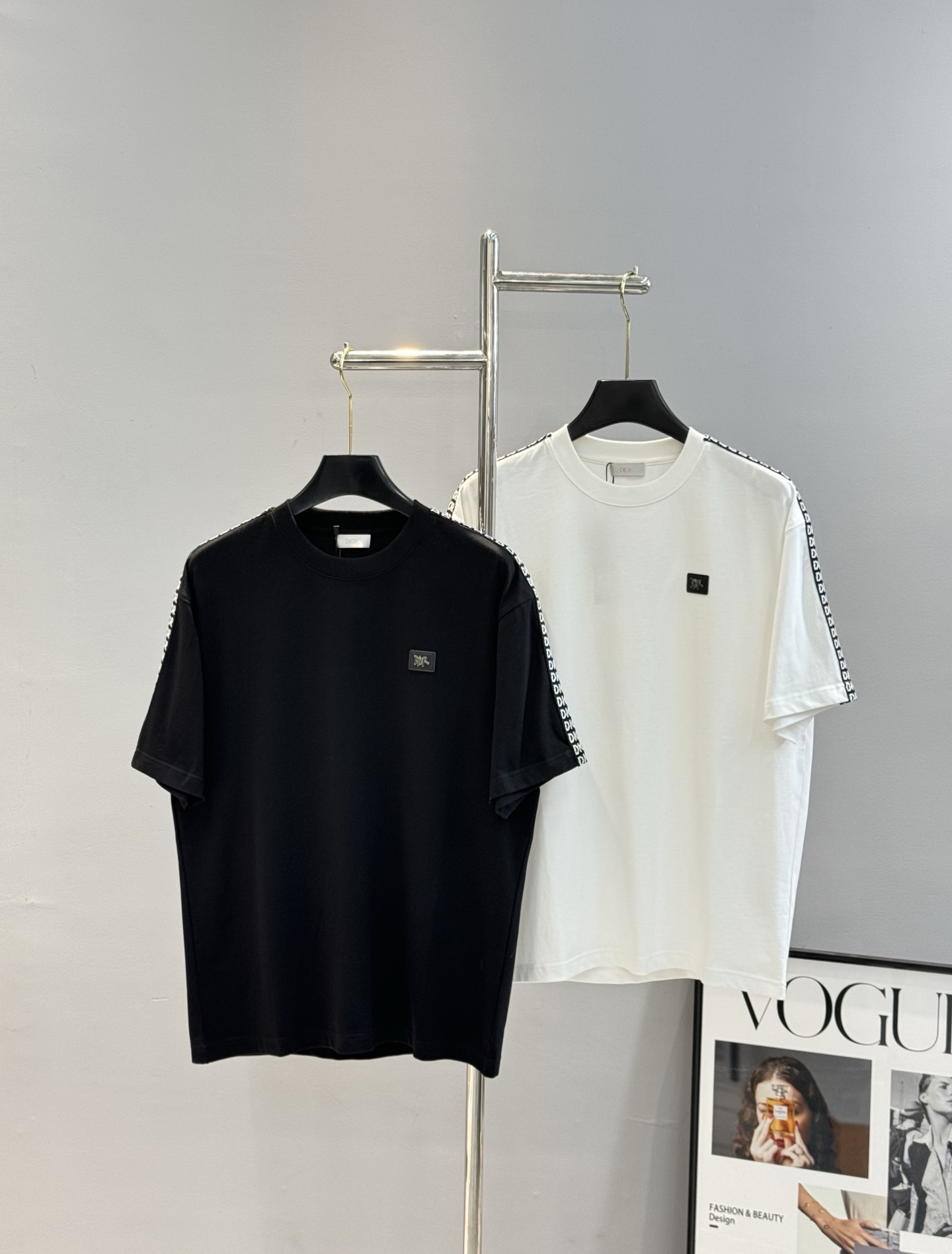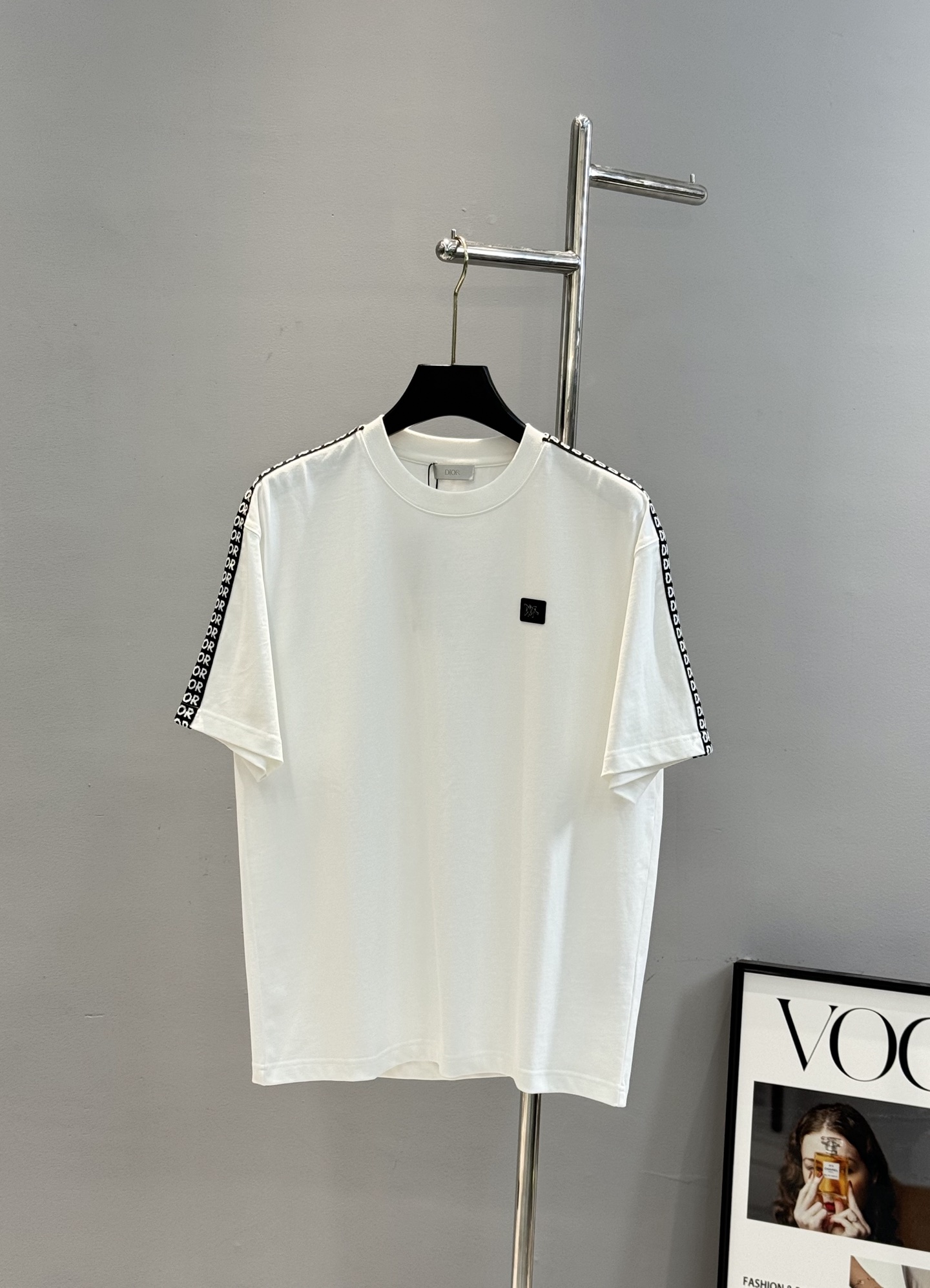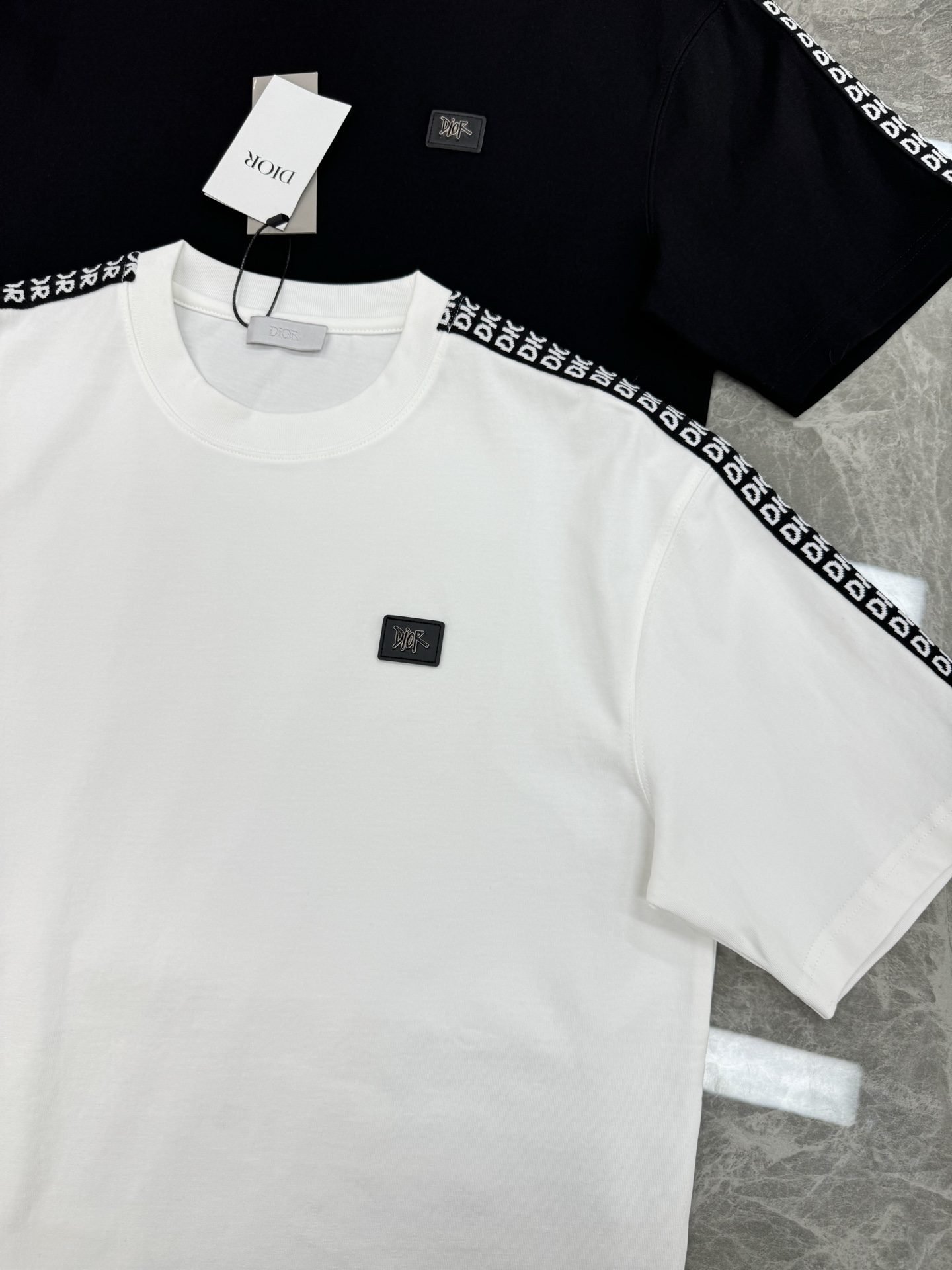 Dior 25s T-shirt. 2025 sports set, unisex. Retro stripe design, premium cotton. Colors: black, white. Sizes: S-3XL.